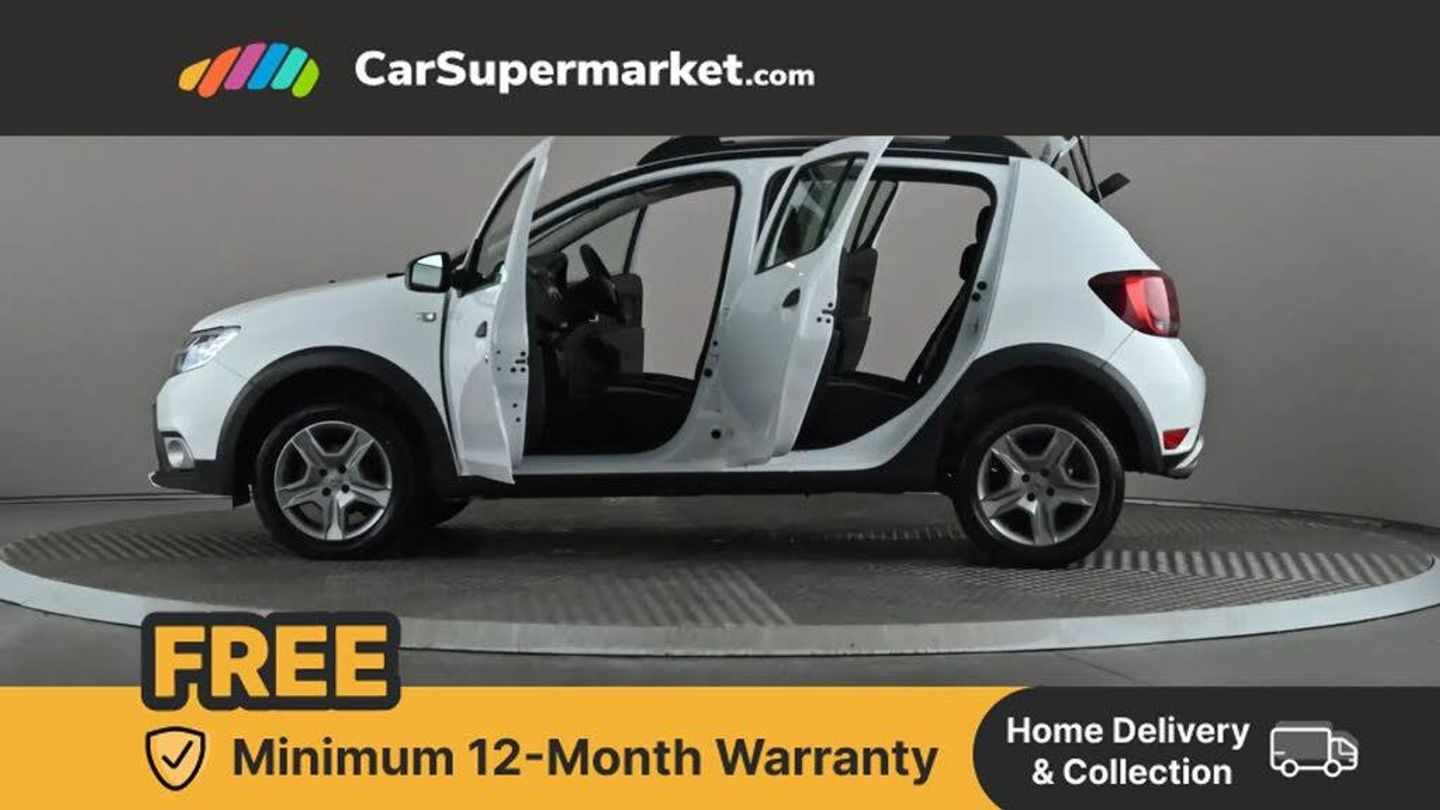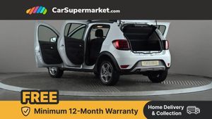Bluetooth system,Eco mode,PAS,Rev counter,Stop/start system,Raised ride height,Aux input,DAB/FM/AM radio with fingertip controls and 4 speakers,USB connection for MP3 players,3 speed windscreen wipers,Black door handles,Black side sills,Body colour bumpers,Chrome front grille,Double optic headlights with chrome surround,Electric front windows + drivers one touch,Fog lamp embellisher,Front fog lights,Grey door mirrors,Heated rear window,High level third rear brake light,LED daytime running lights,Manual adjustable rear windows,Manually adjustable door mirrors,Rear wash/wipe,Satin chrome fog light surround,Satin chrome roof bars,Satin chrome scuff plates,Satin chrome skid plate,Stepway logo on front door panel,Tinted windows,Wheelarch extensions,12V power point for rear passengers,12V socket by gear lever,3 rear height adjustable headrests,60/40 split folding rear seat,Boot light,Cloth upholstery,Driver's seat height adjustment,Front courtesy lights,Front passenger grab handle,Front seat back map pockets,Gear shift indicator,Headlights left on audible and visual warning,Heating/ventilation unit with 4 speed fan,Height adjustable front headrests,Height adjustable steering wheel,Isofix child seat mounting points on outer rear seats,Manual air conditioning,Passenger sunvisor with vanity mirror,Rear grab handles,Satin Chrome door handles,Two tone door panels dark carbon/light grey,3x3 point rear seatbelts,ABS+EBA,Child locks on rear doors,Door open warning,Driver's airbag,ESC with ASR and Hill start assist,Front seatbelt unfastened audible+visual warnings,Front side airbags,Height adjustable front seatbelts,Passenger airbag with deactivation function,Tyre pressure monitor,Automatic door locking,Remote central locking,Thatcham approved engine immobiliser,Satin chrome air vent surround,Satin chrome centre console surround,Satin chrome instrument dial surrounds,16" Stepway steel wheels with alloy look trims,Emergency Spare Wheel,Glacier White,Stepway Cloth - Dark Carbon