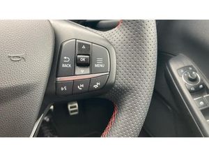 Air Conditioning, Climate Control, Metallic Paint, Cruise Control, Satellite Navigation, Alloy Wheels, Heated Seats, DAB Radio, Bluetooth, Panoramic Roof, Parking Sensors, Stop Start, Heated Front Windscreen, Low Mileage, USB, Keyless Entry-Push Button Start, Apple-Android Play, Rear Camera, Electric Opening Tailgate, Auto Lights, Lane Keeping Assist& Rain Sensors, ST Line front and rear floor mats, Quickclear heated windscreen, Power front/rear windows with global close, Rear wiper, Rear privacy glass, Rain sensing wipers, Electronic stability control (ESC) and ABS, Red brake calipers, Post collision braking, Sports suspension, Twist beam rear suspension, Selectable drive modes, Pre collision assist with autonomous emergency braking, Front and rear parking sensors, Power assist steering, Lane keeping aid with lane departure warning, Rear view camera, Ford easy fuel, Ford SYNC 3 with 8" TFT LCD touchscreen, App Link, andriod auto/apple carPlay