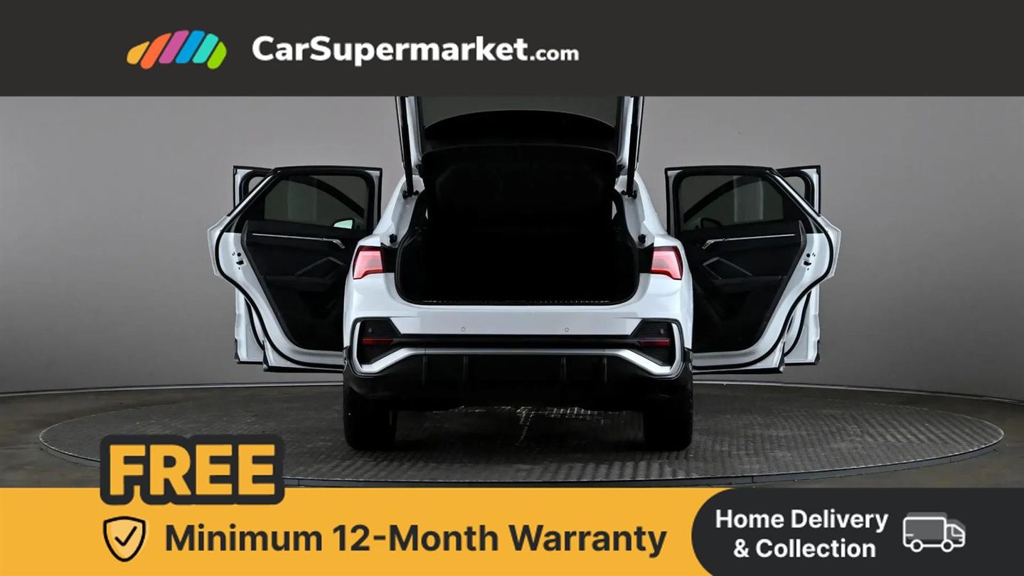 Audi connect safety and service (e-call),Audi drive select,Audi lane departure warning,Audi side assist,Audi smartphone interface,Audi Virtual Cockpit - 10.25" display,Bluetooth interface,Camera based traffic sign recognition,Cruise control + speed limiter,MMI Navigation Plus with high resolution 10.1 inch touchscreen colour display,Power operated tailgate,Progressive steering,Rear parking sensors,Service interval indicator,Start stop system with recuperation,Voice control system with natural language interaction,Sports suspension,1 x USB type C and 1 USB type A charging points,6 passive loudspeakers,DAB digital radio module,Acoustic windscreen,Aluminium window trim,Auto dimming frameless rear view mirror,Diffuser grille in grained matt black,Diffuser trim in selenite silver,Electrically folding, adjustable and heated door mirrors with integrated LED side indicators and kerb view function for passenger side,Front and rear electric windows,Front fog lights,Front side air inlets in selenite silver,Front underbody protection in manhattan grey paint finish,Grille surround in aluminium silver matt,High gloss black finish B and C pillars,LED headlights with LED daytime running lights and dynamic rear indicator,LED rear lights,Privacy glass dark tinted rear and rear-side windows (from B-pillar backwards),Radiator grille in titanium black with inlay in matt aluminium silver,Rain and light sensors,Rear underbody protection in matt black,S line badges on front wings,Side skirt insert in matt Platinium grey,12V socket in rear centre console,40:20:40 folding with manual adjustment for 60:40 forwards/backwards position and backrest angle,Adjustable rear seat bench/backrest with centre armrest and cupholder,Black cloth headlining,Dual zone climate control,Front and rear headrests,Front and rear roof module including reading lights,Front centre armrest,Glove compartment lighting,Illuminated door sill trims with S logo,ISOFIX child seat mounting and Top Tether with front passenger airbag deactivation,Luggage compartment light,Manual front seats with height adjustment,Perforated leather gearknob,Stainless steel luggage compartment sill finisher,Stainless steel pedals,Non smoking pack - Q3,3x3 point rear seatbelts,6 airbags - Driver, front passenger, curtain and side windows,Audi pre-sense front with pedestrain and cyclist recognition,Electrically operated child locks on rear doors,Electromechanical parking brake,Electronic stabilisation control including ABS, ASR and EDL,Hill descent control,Hill hold assist,Pre sense basic,Seatbelt monitoring,Tyre pressure warning,Warning triangle and first aid kit,Anti theft alarm,Anti theft wheel bolts,Remote central locking,Dark matt brushed aluminium inlay,Detail dashboard around MMI touch colour display in glass look, black with surround in aluminium look,Leatherette door armrest