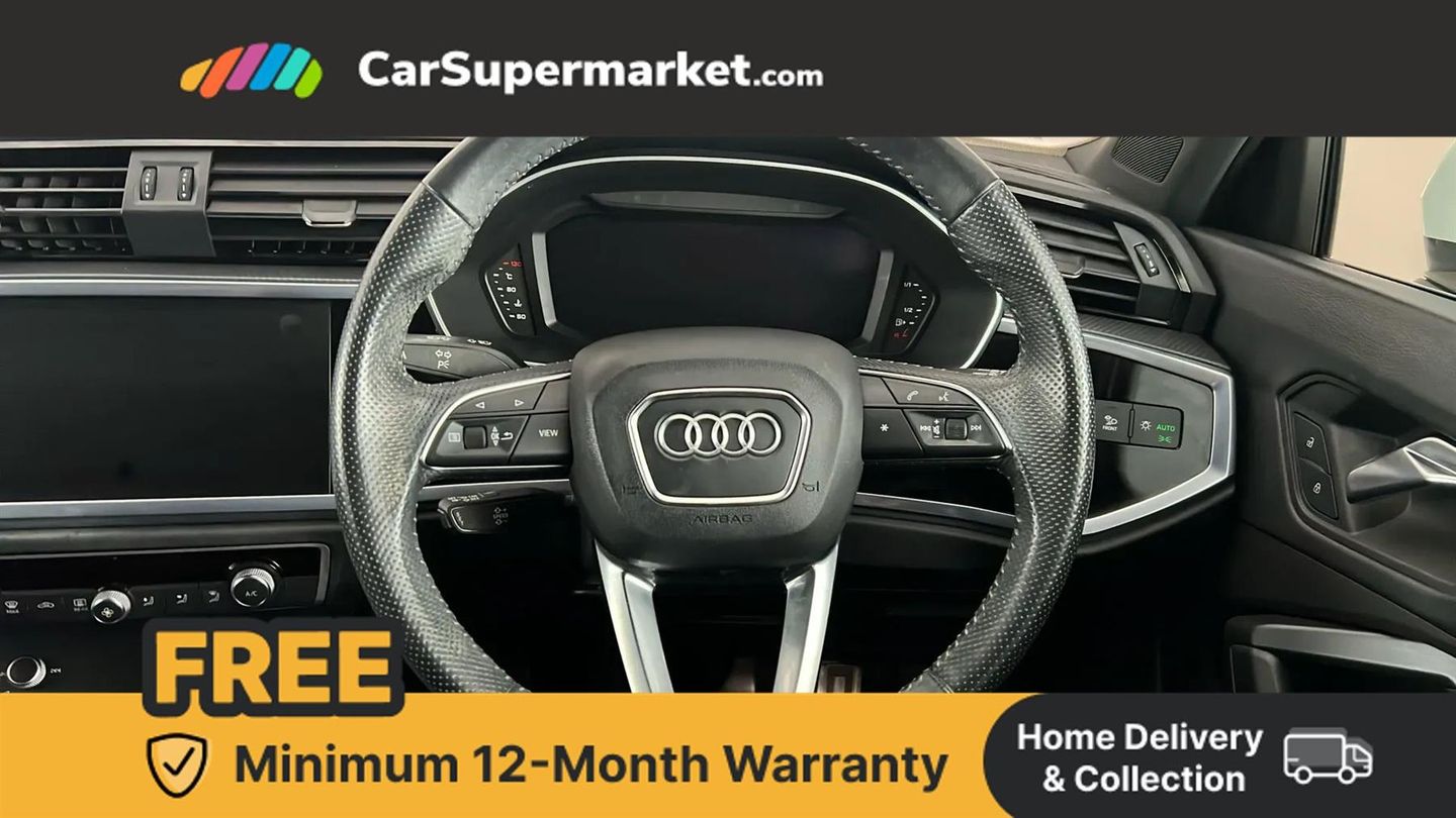 Lane Departure Warning, Apple CarPlay/Android Auto, Audi Virtual Cockpit, Bluetooth, Traffic Sign Recognition, Cruise Control, Sat Nav, Parking Sensors, Digital Radio, Privacy Glass;This 2020 Audi Q3 TFSI S line with its last service completed at 47,775 miles on 28th August 2025, and benefits from a clear vehicle history check. This Euro 6 compliant 1.5 litre petrol model has had only one owner since new and comes with an MOT valid until July 2026. Notable features include a Bluetooth interface for seamless connectivity, Audi Side Assist for enhanced blind spot monitoring, rear parking sensors to aid manoeuvring, and striking LED headlights with dynamic rear indicators. The Audi Q3 TFSI S line offers a compelling blend of performance and practicality. Its acceleration from 0 to 62mph in just 9.5 seconds demonstrates its responsive nature, while the large boot space provides ample room for luggage or shopping, making it a versatile choice for everyday use. These attributes, combined with its comprehensive service record and single owner provenance, position this Q3 as a superior option within its class.