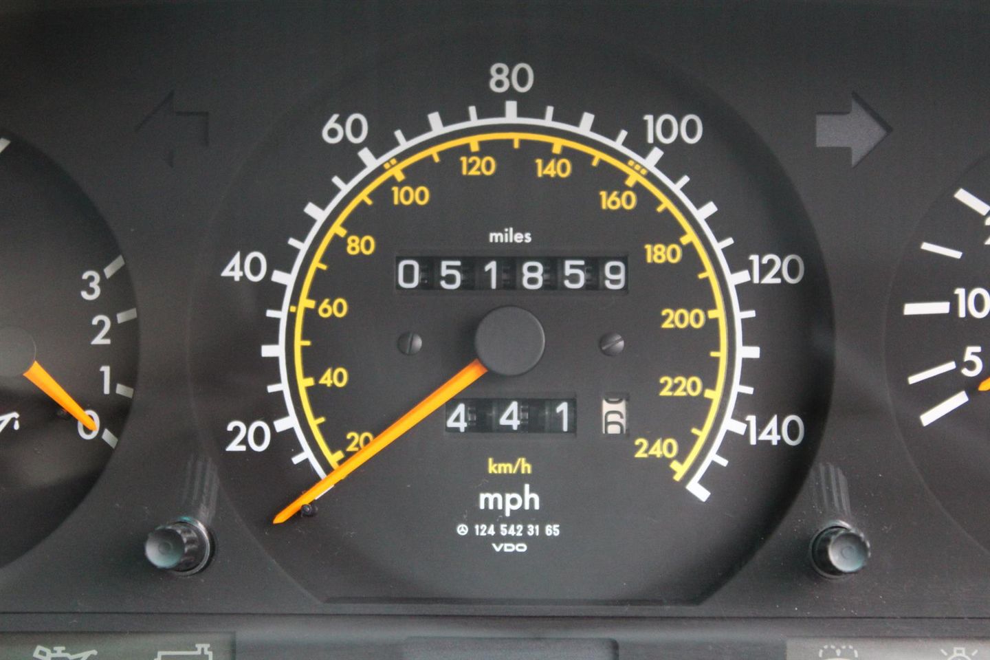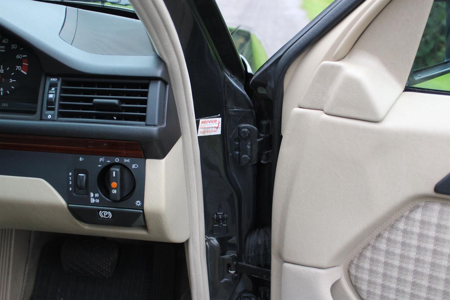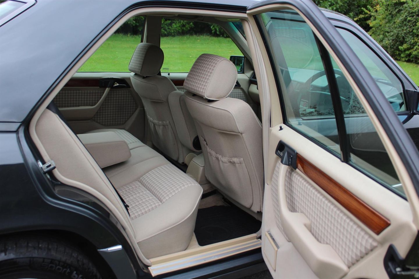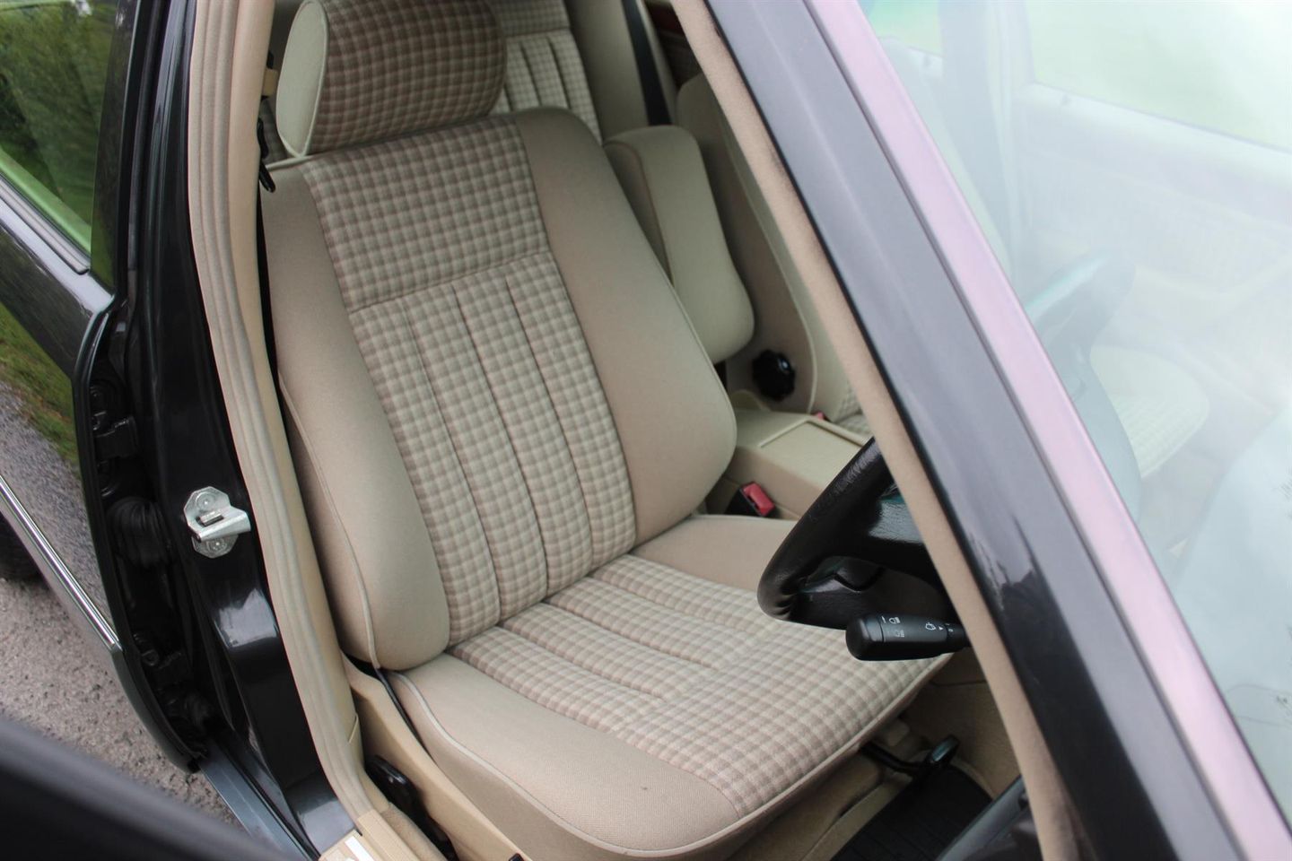 This example was registered 2nd November 1994 at Mercedes Benz in Edgeware London, and was finished in Black pearl metallic (paint code 199). The interior combination chosen was a cream cloth with checked inlays and wood trim.