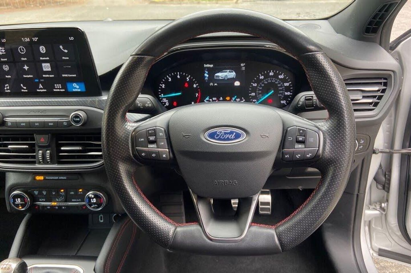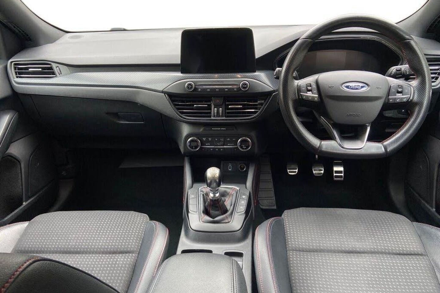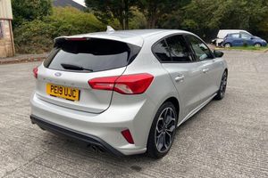 18in Alloy Wheels - 5x2 Spoke - Matt Black - Machined Finish, Airbags - Driver and Front Passenger, Airbags - Front Side Impact, Airbags - Front and Rear Side Curtain, Alloy Finish Pedals, Automatic Dimming Rear View Mirror, Body Colour Bumpers, Cruise Control with Speed Limiter, DEATC - Dual-Zone Electronic Automatic Temperature Control, Dark Headliner, Door Handles - Body Colour, Door Mirrors - Electrically-operated - Heated - Power-Foldable - Body Colour Housings - Side Indicators - Puddle Lights, ESC - Electronic Stability Control, Electric Parking Brake, Flat Bottomed Steering Wheel with Red Stitching, Ford Easy Fuel System, Ford SYNC3 DAB Navigation System, FordPass Connect, Front Passenger Airbag Deactivation Switch, Front Seat - Drivers Manual Lumbar Support Adjustment, Front Seats - Driver and Passenger Heated Seats, Front and Rear Floor Mats with Red Stitching, Front and Rear Seatbelt Minder, Gear Knob - Aluminium, Halogen Reflector Headlights, Headlights - Automatic On-Off, Instrument Cluster - 4.2in Colour TFT Display, Keyless Start with Ford Power Start Button, LED Daytime Running Lights, LED Front Fog Lights with Cornering Function, Lane Keeping Aid with Lane Departure Warning, Large Rear Spoiler - Body Colour with Centre High Mounted Stop Light, MyKey, Parking Sensor - Front and Rear, Passenger Seat Manual Height and Lumbar Adjust, Polished Twin Tailpipe, Post Collision Braking, Pre-Collision Assist with Autonomous Emergency Braking and Pedestrian-Cyclist Detection, Pre-Collision Assist with Pedestrian Detection, Quickclear Heated Windscreen, Rain Sensitive Windshield Wipers, Rear Centre Headrest, Rear Privacy Glass, Red Brake Calipers, Remote Central Locking and Engine Immobiliser, Selectable Drive Mode, Soft Console Knee Pads with Red Stitching, Spare Wheel - Mini Steel, Sports Tuned Suspension, Steering Wheel - 3-Spoke - Leather Trimmed, Steering Wheel - ST-Line Sports Style - Flat Bottom, Thatcham Category 1 Alarm, Trip Computer, Tyre Pressure Monitoring System, Unique Door and Instrument Panel Inserts, Unique ST-Line Upper and Lower Grille and Full Bodystyling Kit and ST-Line Wing Badges, Windows - Electrically Operated Front and Rear with One Touch Opening and Closing