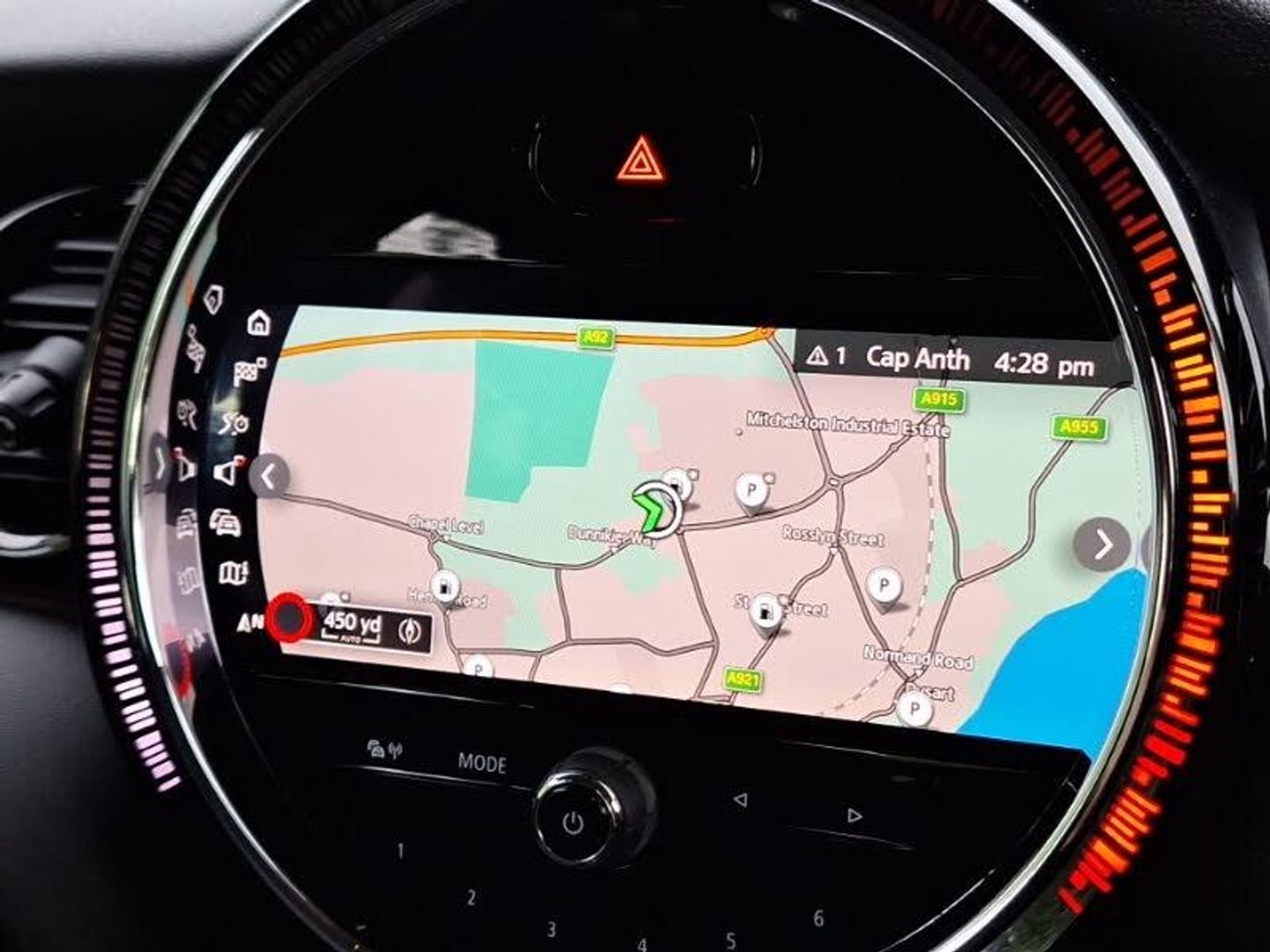 Apple CarPlay, Cruise control with brake assist, Compatible mobile phone bluetooth with audio streaming, Double Vanos system, Performance Control, 8.8" touchscreen with LED ring, FM tuner and DAB digital radio, Automatic headlight activation switch, Heated rear window, Heated windscreen washer jets, LED headlight with closed ring and daytime driving lights, Rear LED lights with union jack design, Sun/heat protection glass, 60/40 split folding rear seat, Ambient lighting, Front and rear isofix with front passenger airbag deactivation, Mechanical seat adjustment - forward/back & backrest for front seats and driver seat height adjust, Multifunction steering wheel, Anti-lock braking system (ABS), DSC - Dynamic Stability Control, Hill start assist, Tyre pressure monitoring system, Alarm system with tilt sensor, monitoring doors, bonnet interior and tailgate, Electronic vehicle immobiliser, Start/stop toggle with keyless go