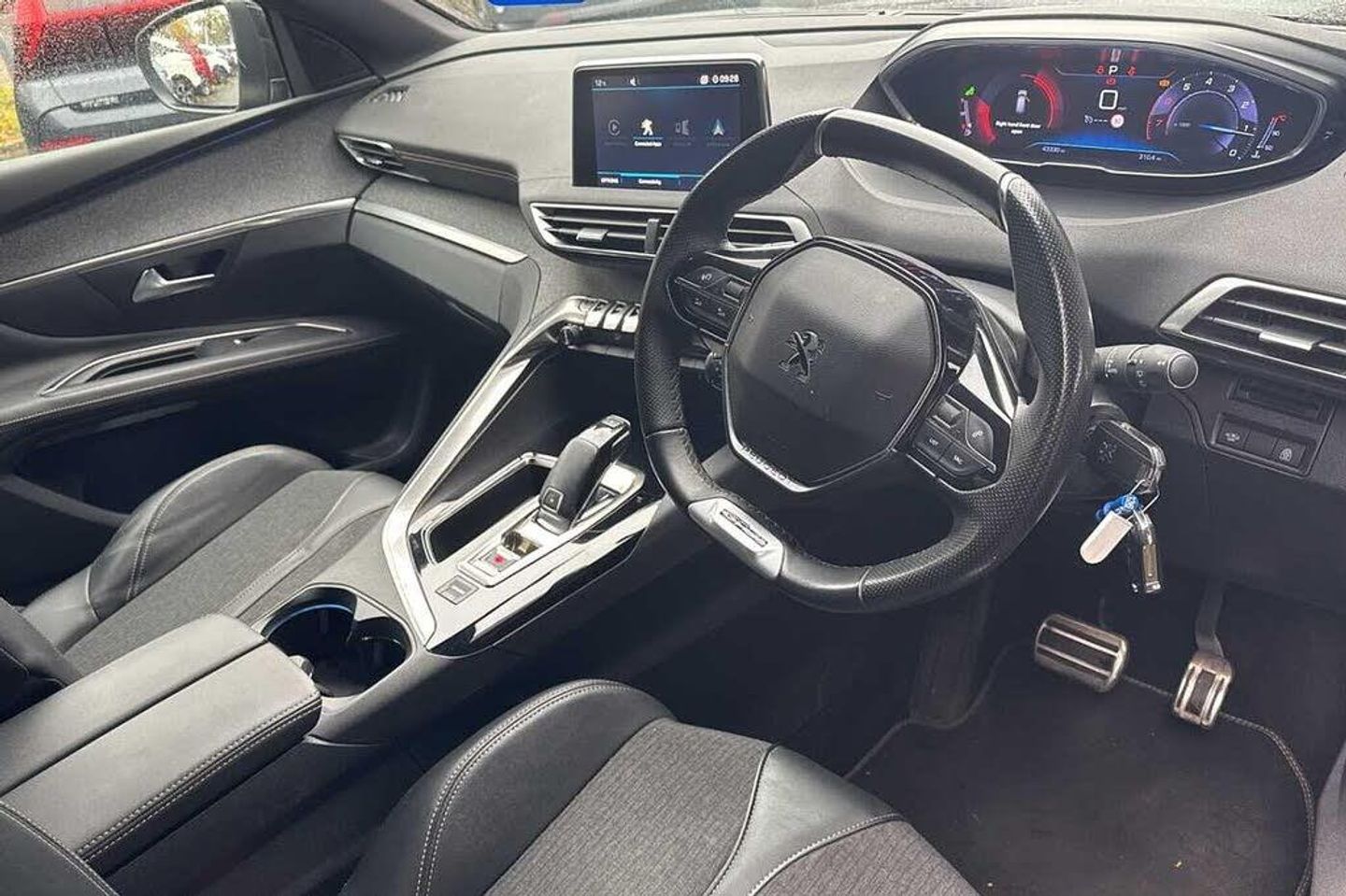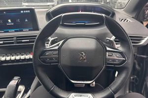 Automatic triggered rear windscreen wiper in reverse gear, Dark tinted rear side windows + tailgate window, Front windscreen wiper with magic wash cleaning system, Gloss black windscreen surround, Heated rear windscreen with integrated antenna, One touch electric front/rear windows with pinch protection, Dynamic stability control and electronic anti-skid system, Aluminium longitudinal roof bars, Black and chrome front wing trim, Black bumper protection plate, Body colour door handles, Body colour rear spoiler with stainless steel edging trim, Body coloured bumpers, Body protectors (bottom of front and rear bumpers + wheel arches + protection at bottom of doors) in black, Chrome bumper inserts, Chrome radiator grille and surround, Chrome rear bumper facia, Chrome side window trim, Gloss black finish B and C pillar, Gloss black rear cluster connecting strip, GT Line emblem in satin copper, Lion grey front bumper scuff plate, Radiator grille in chrome edge trim with chequered design and black 'PEUGEOT' lettering, Sports front bumper, Stainless steel roof arches, Twin exhaust tailpipe, 2 X Rear number plate lights, Automatic hazard light activation upon heavy brake application, Chrome front fog light trim, Door mirror mounted LED Peugeot lion approach lights, Full LED headlights with LED fog lights with static cornering function, sports front bumper and grille, Headlights left on audible warning, LED daytime running lights, LED sequential scrolling front indicators, LED side indicator lights integrated into door mirrors, Rear LED Peugeot signature 'Claw Effect' lights, Anti-lock braking system with electronic braking distribution and emergency braking assistance, Auto city emergency braking, Electric parking brake, ESP with ASR, Front ventilated disc brakes and rear disc brakes, Hill start assist, Front and rear parking sensors, Lane departure warning system, Speed limit recognition and recommendation, Electric operated/heated door mirrors, Nera black door mirrors, Power folding door mirrors with blind spot detection indicator and auto dipping function in reverse gear, 3x Rear three-point retractable seatbelts with force limiters in the outer rear seats, Adaptive driver and front passenger airbags with passenger airbag deactivation function, Driver and front passenger side airbags, Driver SMART airbag, Electric child locking functionality on rear windows and doors, Front and rear curtain airbags, Front optimised safety headrests and 3 x rear retractable headrests with height adjustable, Front passenger SMART airbag with deactivate switch, Front three point retractable seatbelts with pre tensioners and force limiters, Height adjustable front seatbelts, Tyre pressure sensor, Mistral floor mats with Aikinite contrast stitching, Dual zone automatic climate control, Rear centre console ventilation system, 12V Sockets in dashboard, rear cabin and load area, 2 cupholders in front centre console, 2x Rear coat hooks, 4 Grab handles retractable and damped, 4 Lashing eyes in boot, Aikinite stitching in armrest, gear lever and dashboard facia, Automatic gear lever in satin chrome, Centre front armrest with butterfly wing opening and illuminated storage compartment, Electric power steering with reach and rake adjustable steering column, Fixing rings 4 in load compartment, Flocked front door pocket interior with blue ambient lighting, Flocked glovebox interior, Fold flat front passenger seat with picnic table, Gear shift indicator, Mistral full grain perforated leather steering wheel with aikinite stitch detail and satin chrome 'GT Line' emblem, Rear armrest with ski flap and two cup holders, Roof lining - Mistral black, Satin chrome dashboard trim, Satin chrome digital instrument panel and touchscreen trim, Satin chrome front door panel recess trim, Satin chrome interior door handles, Satin chrome scorpion's tail and toggle switch trim, Stainless Steel Scuff Plates, Two position boot floor, 2 rear reading spotlights, Blue ambient lighting for