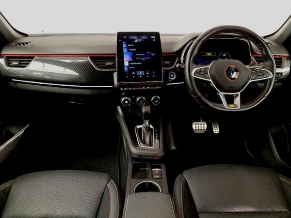 EASY LINK 9.3" portrait touchscreen with navigation, Google search and traffic information, Smartphone integration compatible with Apple CarPlay and Android Auto, Blind spot warning, Automatic climate control with combined filter, humidity sensor and AQS, Bluetooth system, Eco mode, Front and rear parking sensors, Lane departure warning, Lane keep assist, Multi-sense - 3 driving modes and 8 ambient lighting, Rear cross traffic alert, Rear view camera, Traffic sign recognition with over speed prevention, Wireless phone charger, DAB radio, Automatic headlights, Automatic windscreen wipers with rain sensor, Extra tinted rear windows and tailgate, Full LED headlights, R.S. Line badges on front wing and hatch door, Side mirrors adjustable electrically, electrically foldable, with defrosting and temperature sensor, automatically foldable at vehicle closure, Rain sensor, ISOFIX child seat fixing points on rear outermost seats, Parking Pack - Hands-free parking & flank protection - Arkana, Winter pack - Arkana, Hill start assist, 18" Silverstone diamond alloy wheels with red inserts