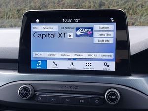 Bluetooth system, Digital clock, Easy fuel capless refuelling system, Eco mode, Ford SYNC 3 nav system with DAB radio, 8" colour touch screen, voice control, app link, Apple car play/Android auto and 4.2" TFT coloured cluster, Selectable drive modes with slippery and trail mode, Lane keeping aid with lane departure warning, Aux input, 'Quickclear' heated windscreen/heated washer jets, LED daytime running lamp, Electrically operated and heated door mirrors with side indicators, Cloth upholstery with blue stitching, Electronic parking brake, Hill start assist, Front side airbags, Pre collision assist with autonomous emergency braking and pedestrian/cyclist detection, Keyless start with 'Ford Power' starter button, Remote central locking & engine immobiliser