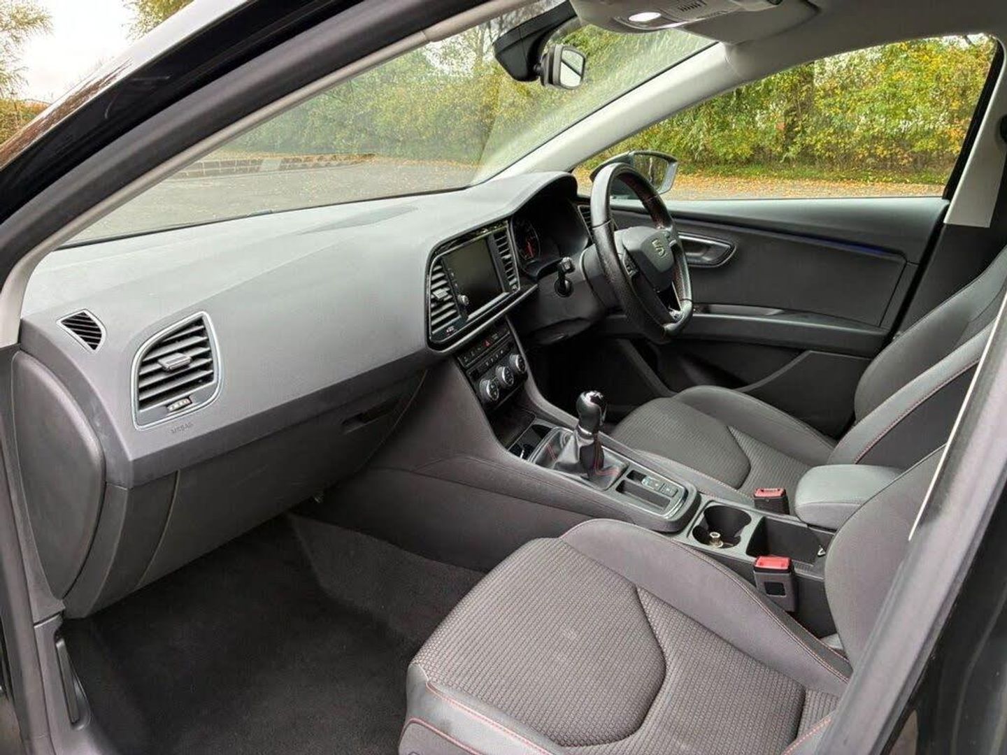 Techny Cloth - Black, Midnight Black, 12V Power Supply in Centre Console, 17in Alloy Wheels - Dynamic 30-2, 7 Airbags, ABS and Traction Control System - TCS - Electronic Stability Control - ESC - and Electronic Differential Lock System - XDS, Alarm - Volumetric, Armrest - Front with Storage Compartment, Body-Coloured Door Mirrors with Integrated LED Indicators, Bumpers - Exclusive FR Front and Rear, Convenience Pack Plus, Cruise Control, Dark Tinted Rear Windows, Digital Clock, Driver and Passenger Seat Height Adjustment, Driver and Passenger Sunvisor with Covered and Illuminated Mirrors, Drivers Seat Lumbar Adjustment, Dual Zone Climate Control, Electric Parking Brake Including Autohold Function, Electrically Adjustable Folding and Heated Door Mirrors, Electro-Mechanical Progressive Power Steering, Emergency Tyre Repair Kit, Front Assist with Pedestrian Protection, Front Seat Back Storage Pockets, Front Sports Seats, Front and Rear Electric Windows, Front and Rear Parking Sensors, Full LED Headlights, Gearshift Indicator, ISOFIX Points in Outer Rear Seats with Top Tether Anchorage Points, Illuminated Aluminium Front Door Sill with Trim Logo, Instrument Lighting with Brightness Control, LED Interior Illumination Pack, Leather Gear Knob, Lights Left On Warning Buzzer, Low Fuel Warning Light, Media System Plus, Multi Coloured Ambient Lighting, Multi-Collision Braking System, Navigation System, Outside Temperature Gauge, RPM Counter, Radiator Grille Frame in Chrome, Radiator Grille in Black, SEAT Drive Profile, SEAT Full Link Smartphone Integration - Mirror Link - Apple CarPlay - Google Android Auto, Seatbelt Reminder - Front, Seats - Passenger Lumbar Adjustment, Sports Suspension, Steering Wheel - Flat-Bottomed Perforated Leather with Red Stitching and FR Logo, Storage Box Under Drivers Seat, Trip Computer, Two Height-Adjustable Front and Rear Headrests, Tyre Pressure Monitoring System, Visual Twin Exhaust Pipes