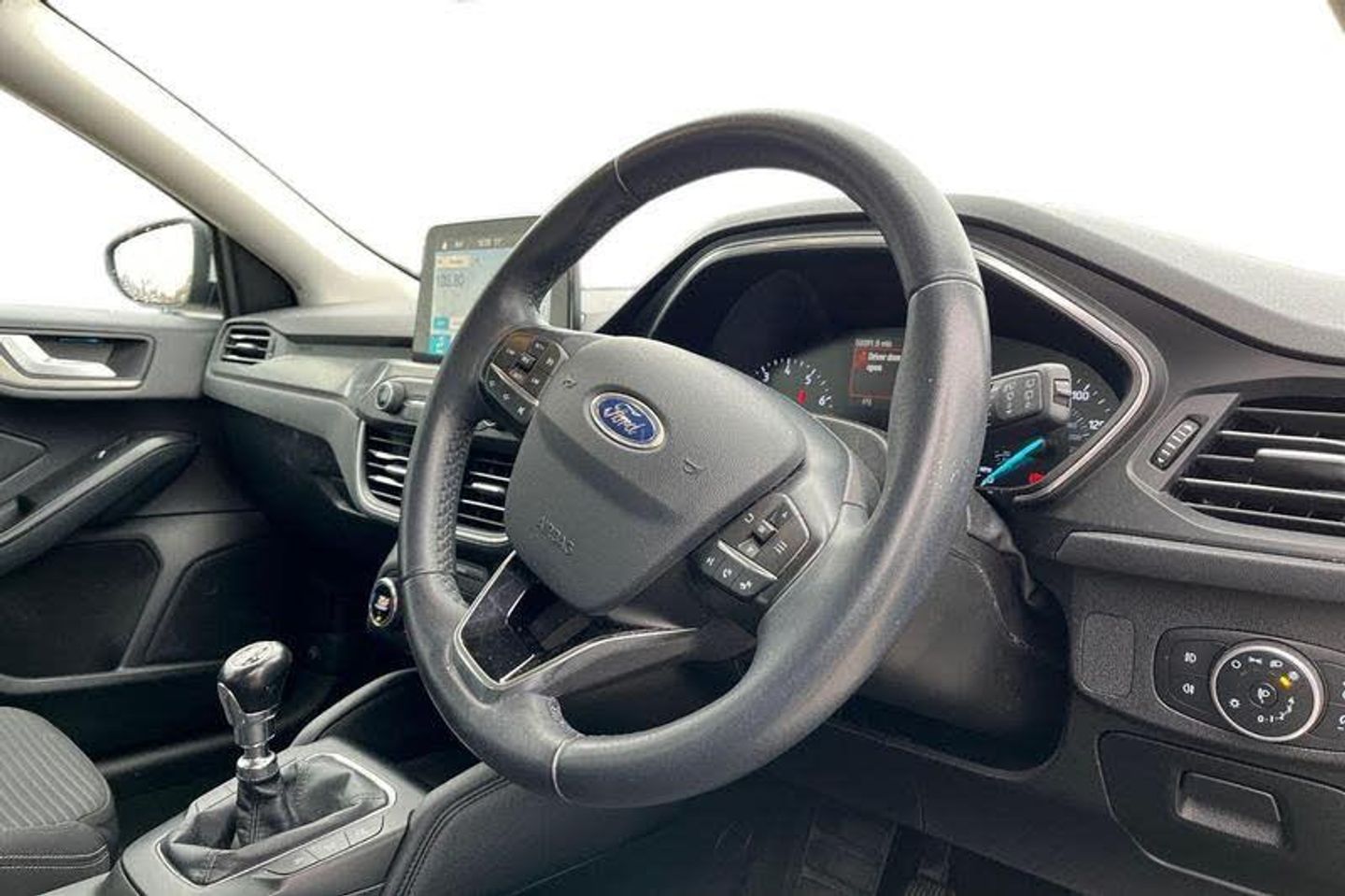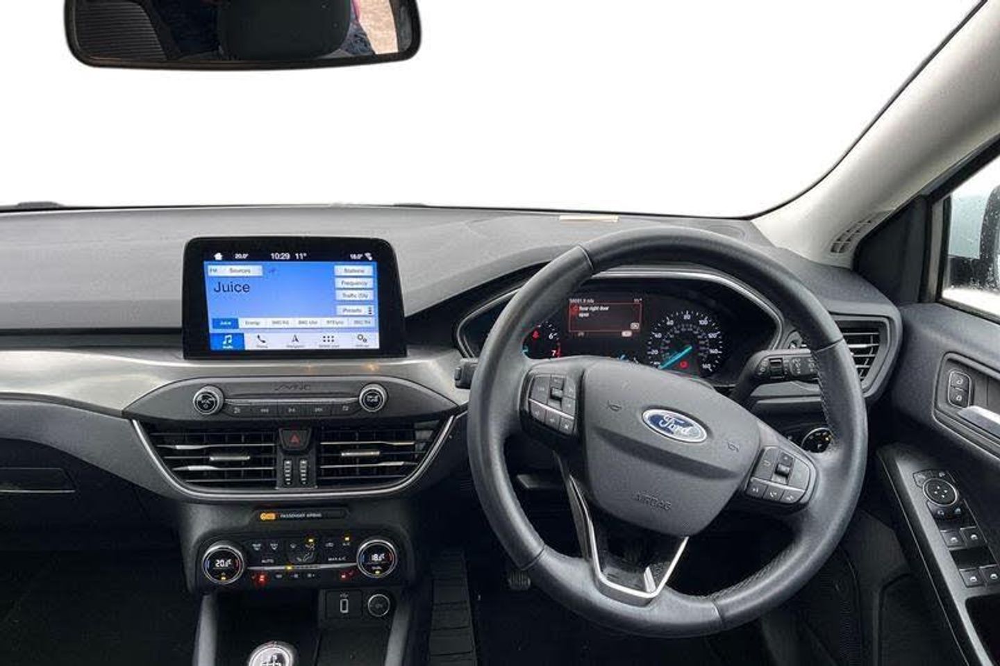 Bluetooth system, Digital clock, Easy fuel capless refuelling system, Eco mode, Ford pass connect, Ford SYNC 3 nav system with DAB radio, 8 colour touch screen, voice control, app link, Apple car play/Android auto and 4.2 TFT coloured cluster, Front and rear parking sensors, Intelligent speed assist, Lane keeping aid with lane departure warning, PAS, Selectable drive mode, Trip computer, 'Quickclear' heated windscreen/heated washer jets, Auto dimming rear view mirror, Auto headlamps (on/off), Automatic rain sensing wipers, Body coloured bumpers, Body coloured door handles, Body coloured electrically operated and heated door mirrors with side indicators, Electrically operated front and rear windows with one touch opening and closing, Front fog lamps with cornering function, Front variable intermittent wipers with electric wash, Halogen reflector headlamps, Heated rear window, LED daytime running lamp, LED rear lamps, Power folding door mirrors with puddle lights, Tailgate wash/wipe, Upper grille with chrome surround and horizontal bars, 3 spoke leather trimmed steering wheel with integrated audio controls, 60/40 split back and cushion rear seats with 2 height adjustable headrests, Ambient lighting, Centre console with sliding front armrest, Cloth upholstery, Dual zone electronic air temperature control, Front/rear floor mats, Heated front seats, Height adjustable front headrests, Isofix child seat preparation, Leather gear knob, Reach + rake adjustable steering column, Rear centre headrest, ABS+Electronic Brake force Distribution, Auto hold function, Driver airbag, Electronic parking brake, Electronic stability control, Front and rear seatbelt reminder, Front inertia reel height adjustable seatbelts with pre-tensioners, Front passenger airbag, Front side airbags, Hill start assist, Passenger airbag deactivate switch, Post collision braking, Pre collision assist with autonomous emergency braking and pedestrian/cyclist detection, Side curtain airbags, Three rear inertia reel lap/diagonal seatbelts, Tyre pressure monitoring system
