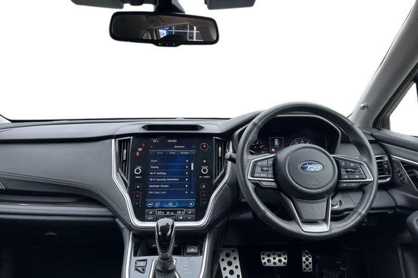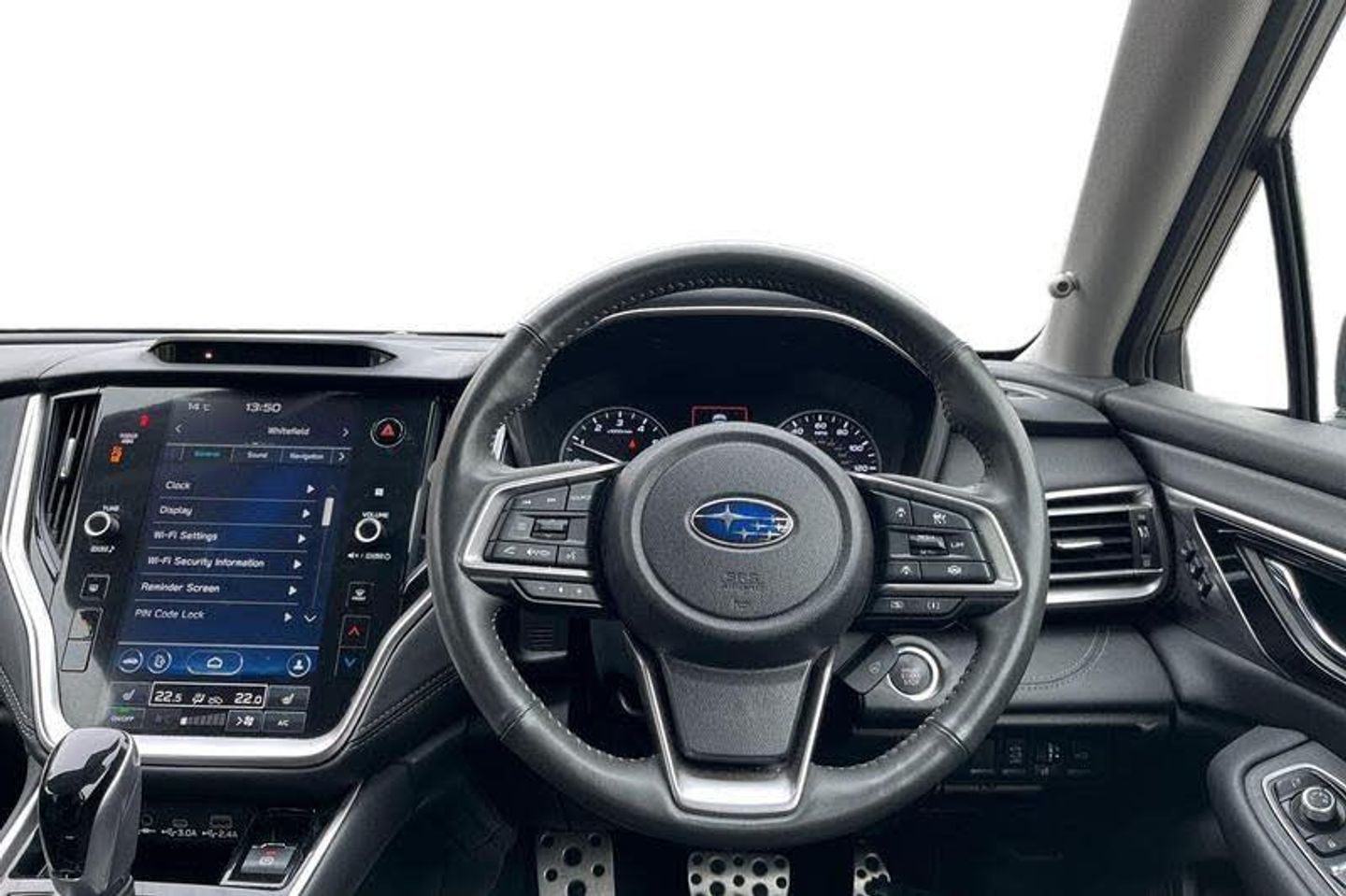 Digital reversing camera with washer jet for lens, e-Call (emergency call), Eye sight assist monitor, Front and side Multi view monitor, Hands free power tailgate, PAS, Pin Code Access, Rear parking sensors, Rev counter, Satellite Navigation, SI-Drive (Subaru Intelligent Drive), Stop/start system, Tonneau cover with pop up function, Trip computer, Voice recognition, Wireless Apple CarPlay/Android Auto, X-Mode (2 modes) and hill descent control, Adaptive driving beam, Auto dimming rear view mirror, Auto power folding door mirrors on ignition, Automatic headlights, Automatic wipers, Dipping passenger door mirror on reverse gear, Headlights activated by wipers, Heated door mirrors, LED daytime running lights, LED front fog lights, LED headlights with auto leveliser, Pop up headlamp washers, Power sliding and tilt adjustable sunroof, Power windows with one touch function on all 4 windows, Privacy glass, Rear side wing doors, Rear wiper, Roof rail with silver built in cross bars, Roof spoiler, Satin chrome door mirrors with built-in LED indicators, Shark fin antenna, Steering responsive headlights, Third brake light, Wheel arch extensions, Windscreen wiper de-icer, 12V DC power socket in boot space, 12V DC power socket in row 1, 3 seat bench in 2nd row, 60/40 split folding rear seat, 8 way power adjustable drivers seat with lumbar support and memory function, 8 way power adjustable passenger seat, Aluminium pedals, Boot under floor storage, Centre console box, Door pockets with bottle holder, Driver and front passenger fatigue reducing seats, Dual zone automatic air conditioning system with anti-dust filter, Front and rear LED map lights, Front cupholders, Heated front seats, Heated rear seats, Heated steering wheel, Illuminated driver/passenger vanity mirror, Illuminated USB charging ports in lower dashboard area, ISOFIX adapted child seat anchors (with Tether Anchors) on both outer rear seats, Nappa leather seat trim, Paddle shift controls, Rear air vents, Rear centre armrest with 2 cupholders, Rear headrests, Rear seat release in boot space, Reclining rear seats, Single front passenger seat, Smooth leather wrapped steering wheel, Type C charging port, 3x3 point rear seatbelts, ABS + EBD + EBA, Active front headrests, Active torque vectoring, Auto hold function, BAS (Brake Assist System), Driver and passenger airbags, Driver and passenger seatbelts with warning light, Drivers knee airbag, Electronic parking brake, Front and rear curtain airbags, Front passenger seat cushion airbag, Front seatbelt pretensioners + load limiters, Front side airbags, Height adjustable front seatbelts, Rear child proof door locks, Reverse automatic braking, Safety pedal system, Seatbelt indicators for all seats, Tyre pressure monitor
