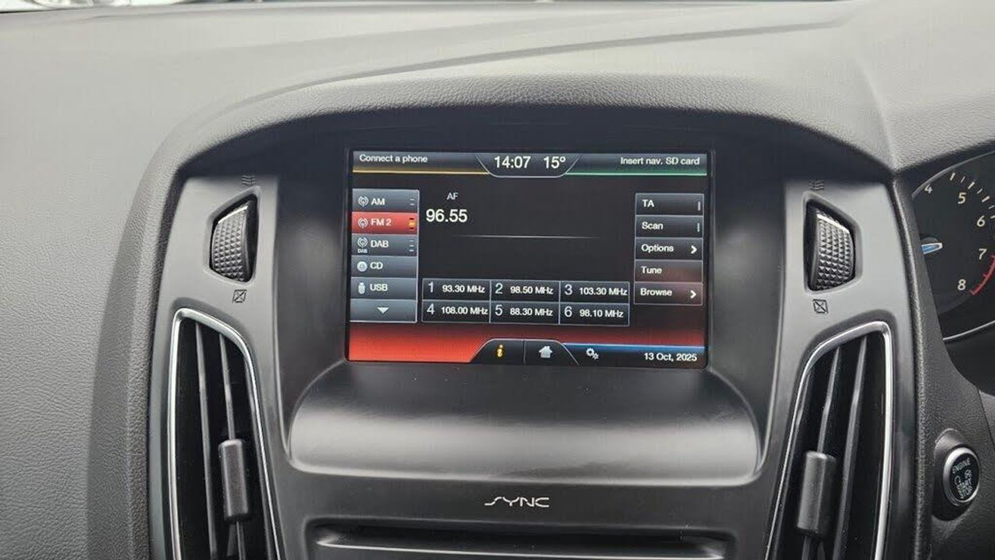 Moondust Silver, 12V Power Socket - Front, 17in Alloy Wheels - 5x2 Spoke, 4.2in TFT Display, 8in Touchscreen Colour Display, ABS - Anti-lock Braking System, AUX Connection, Air Conditioning - Manual, Airbag - Front Passenger, Airbags - Curtain, Airbags - Curtain Rear, Airbags - Side Impact, Anti-Submarining Seat Bases, Black Headlight Bezel, Bluetooth Handsfree Phone System, Body Colour Bumpers, Body Colour Exterior Mirrors, Body Colour Side Skirts, Body Coloured Front Styling Kit with Centre Aero Foil, Centre Console - additional 12V power socket, Chrome Finish on Upper Door Line, Colour TFT Instrument Cluster Display, Door Handles - Body Colour, Door Mirrors - Electrically Operated and Heated, Door Mirrors with Integrated Indicators, Drivers Airbag, EBA - Emergency Brake Assist, EBD - Electronic Brakeforce Distribution, ESP - Electronic Stability Programme, Electric Windows - Front with One Touch Lowering Drivers, Emergency Assistance, Emergency Brake Warning, Floor Mats - Carpet - Front, Ford AM-FM CD Audio System, Ford DAB Audio System, Ford Easy-Fuel Capless Refuelling System, Ford Eco Mode - Driver Information System, Front Fog Lights, Front Seat Belts with Pre-Tensioners, Fuel Computer, Handbrake Cover - Leather, Headlights - Halogen, Heated Front Windscreen, Heated Washer Jets, Height-Adjustable Mounts on Front Seat Belts, Hill Start Assist, IPS - Intelligent Protection System, ISOFIX - Child Seat Attachments, Interior Door Lever - Chrome Finish, Keyless Start, LED Daytime Running Lights, Large Rear Spoiler, Locking Wheel Nuts, Mini Steel Spare Wheel, MyKey, Pedals - Collapsible, Pedals - Sports, Pollen Filter, Power Steering, Premium Centre Console, Premium Centre Console - Sliding Armrest, Rear Auxiliary Power Socket - 12V, Rear Bumper with Integral Body Coloured Diffuser and Honeycomb Mesh in High-Gloss Black, Rear Spoiler - Body Colour, Remote Central Locking, Seats - 60-40 Rear Split Back, Seats - Drivers Height Adjustment, Seats - Drivers Lumbar Support, Speakers - x6, Sports Style Front Seats - Inidividual Red Stitching, Steering Column - Collapsible, Steering Column - Rake and Reach Adjustment, Steering Wheel - 3 Spoke - Leather Trimmed, Steering Wheel - Audio Controls, Suspension - Sports, TVC - Torque Vectoring Control, Thatcham Category 1 Alarm, Traction Control - TC, Tyre Pressure Monitoring System, USB Connection, Upper and Lower Grille - High Gloss Black Honeycomb Design, Voice Control - Audio