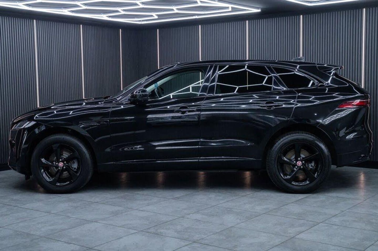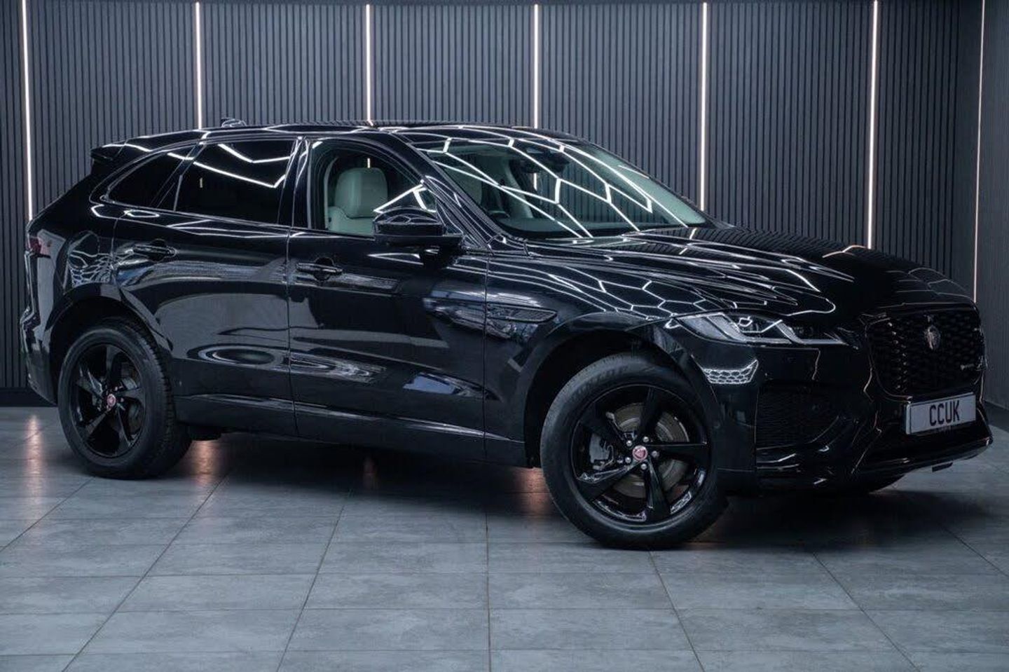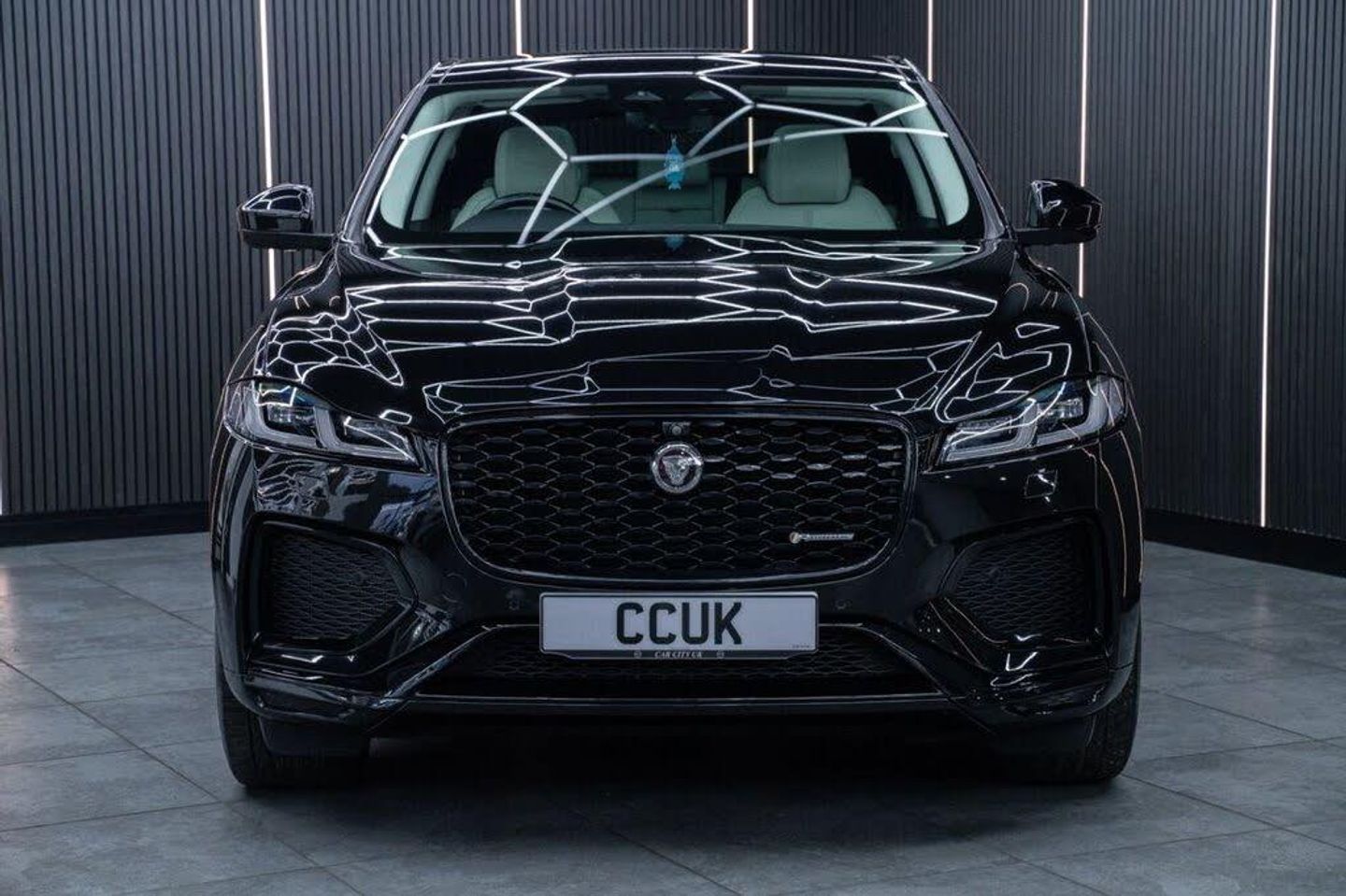 Santorini Black, Fixed Panoramic Roof, Black Exterior Pack, Privacy Glass, 19in Alloy Wheels - 5 Spoke - Style 5103 - Gloss Black with Contrast Turned Diamond Finish, 11.4in Touchscreen, 12-Way Heated Electric Front Seats with 2-Way Manual Headrests, 19in Alloy Wheels - 5 Spoke Style 5037 - Gloss Black, 2-Zone Climate Control, 3 Rear Headrests, 3-Flash Lane Change Indicators, 355mm Front and 325mm Rear Brakes, 3D Surround Camera, 40-20-40 Folding Rear Seats with Centre Armrest, ABS - Anti-locking Braking System, ASPC - All Surface Progress Control, Air Distribution Speed, Airbags - Front Side, Airbags - Full Length Side Window Curtain, Analogue Dials with Central TFT Display, Android Auto, Apple CarPlay, Approach Illumination, Auto-Dimming Interior Rear View Mirror, Automatic Headlights, Bluetooth Connectivity, Bluetooth Streaming, Body Coloured Roof, Brake Pad Wear Indicator, Cabin Lighting, Centre Console with Armrest, Centre Console with Side Storage, Cruise Control with Speed Limiter, Digital Audio Broadcast - DAB - Radio, Driver Condition Monitor, Dynamic Stability Control - DSC, Dynamic Volume Control, EBA - Emergency Brake Assist, ECO Driving Style Assistant, EPAS - Electric Power Assisted Steering, EPB - Electronic Parking Brake, Ebony Morzine Headlining, Electric Windows - Front and Rear with One-Touch Open-Close and Anti-Trap, Emergency Braking, Engine Spin Aluminium Trim Finisher, F-PACE Badge, Front Airbags with Passenger Seat Occupant Detector, Front Door Storage Space, Front and Rear Parking Aid, Glovebox Finisher with Jaguar Script, Green Tinted Glass, Heated - Electric - Power Fold Door Mirrors with Approach Lights and Auto-Dimming Driver Side, Heated Front Windscreen, Heated Rear Window, Heated Steering Wheel, Hill Launch Assist, Hook or Hooks in Loadspace, ISOFIX Rear, Interior Front Door Handles with Separate Locking Switches, Jaguar Script and Leaper, Jaguar Tyre Repair System, JaguarDrive Control, LED Tail Lights, Lane Keep Assist, Lockable Glovebox, Luggage Tie Downs in Loadspace, Manually Adjustable Steering Column, Metal Loadspace Scuff Plate, Metal Treadplates with R-Dynamic Branding, Mist Sensing, Online Pack with Data Plan, Open Differential with Torque Vectoring by Braking, Outside Temperature Gauge, Overhead Lighting Console, Overhead Stowage for Sunglasses, Passive Front Head Restraints, Pivi Pro Connected, Pivi Pro Including Connected Navigation, Power Operated Child Locks, Powered Tailgate - Boot Lid, Premium Carpet Mats, Premium LED Headlights with Signature DRL, Push Button Start, R-Dynamic Badging, R-Dynamic Branded Leather Steering Wheel, R-Dynamic Exterior Pack - Bumper Finishes-Inserts - Grille - Door Cladding, Rain Sensing Windscreen Wipers, Rear Air Vents, Rear Door Storage Space, Rear Fog Lights, Rear Metal Treadplates, Remote, Satin Chrome Gearshift Paddles, Seat Belt Reminder, Secure Tracker (12 Month Subscription From New), Shopping Bag Hook, Sound System, Speed Proportional Steering, Start Up Sequence with Movement - Dials and Lighting, Steering Wheel - Multi-Function, Summer Tyres, Sunvisors with Illuminated Vanity Mirrors, Torque Vectoring by Braking - TVBB, Traffic Sign Recognition with Adaptive Speed Limiter, Trailer Stability Assist, Twin Front Cupholders, Tyre Pressure Monitoring System, Unpainted Brake Calipers, Valet Mode, Variable Intermittent Wipers, Voice Control, iPod Integration