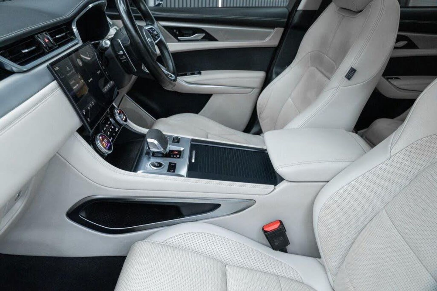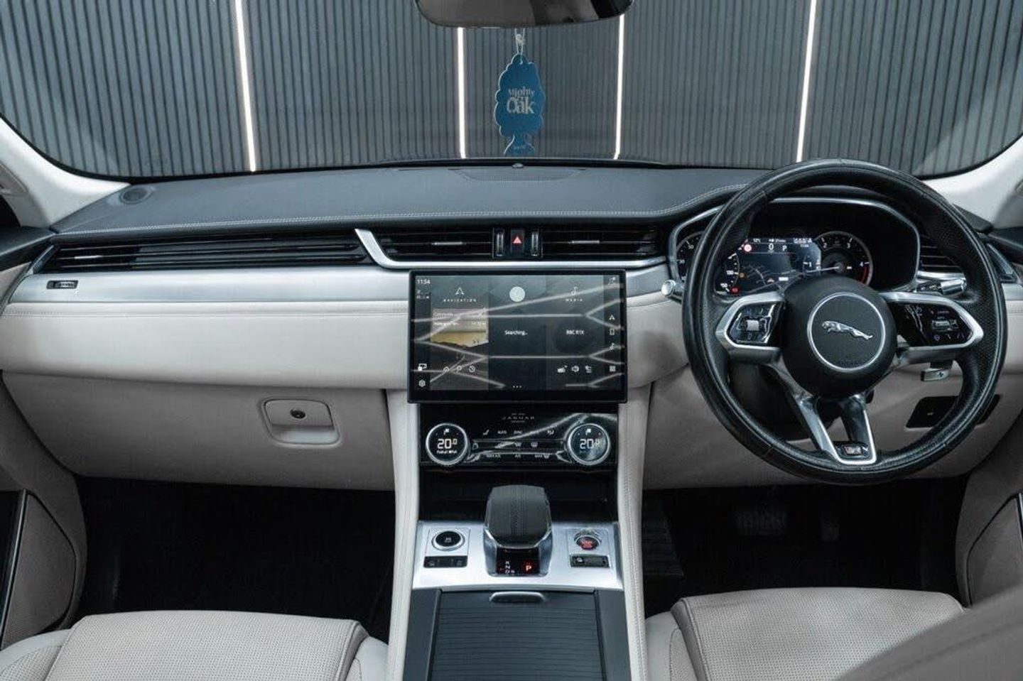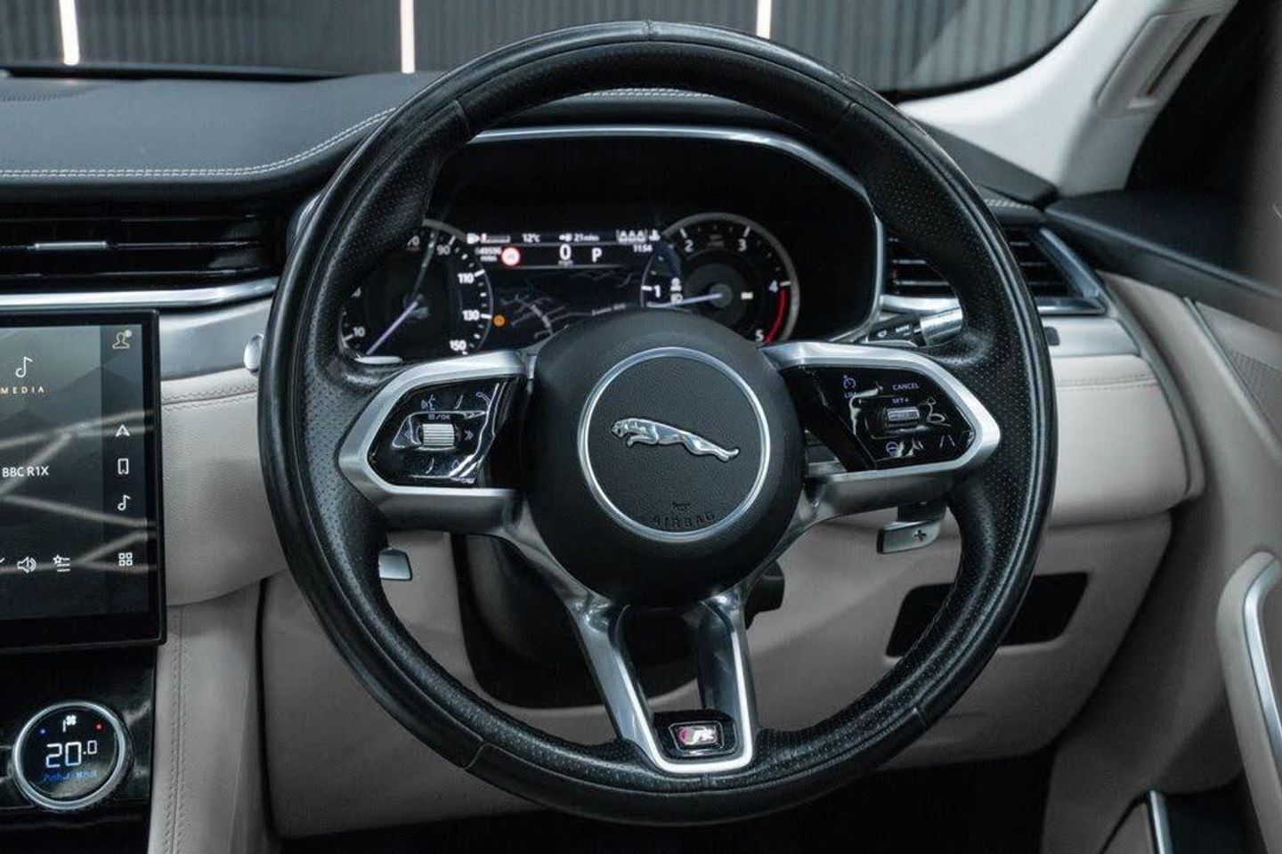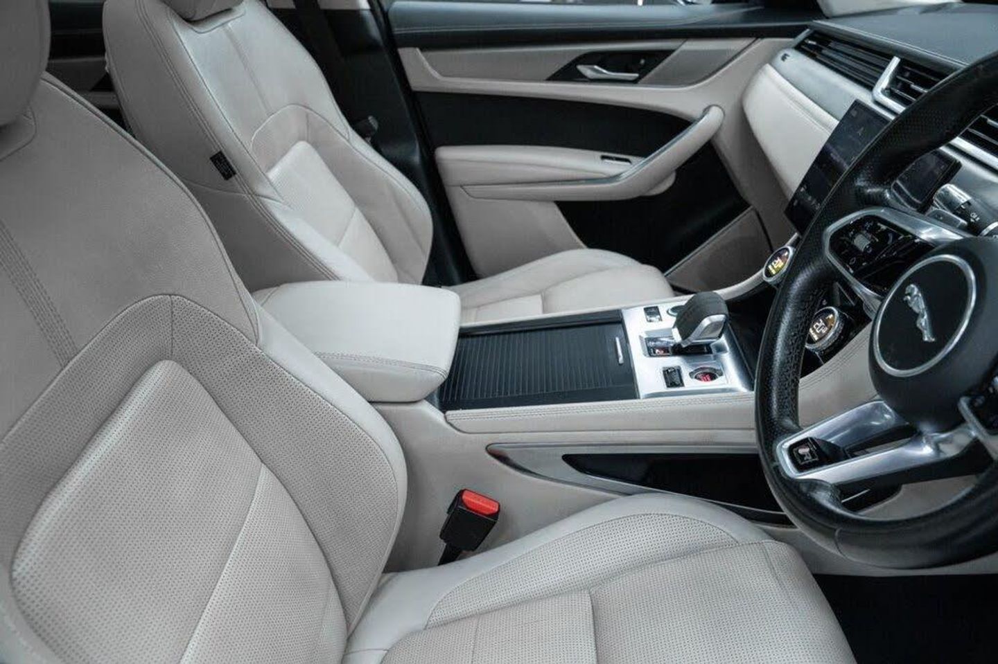 Santorini Black, Fixed Panoramic Roof, Black Exterior Pack, Privacy Glass, 19in Alloy Wheels - 5 Spoke - Style 5103 - Gloss Black with Contrast Turned Diamond Finish, 11.4in Touchscreen, 12-Way Heated Electric Front Seats with 2-Way Manual Headrests, 19in Alloy Wheels - 5 Spoke Style 5037 - Gloss Black, 2-Zone Climate Control, 3 Rear Headrests, 3-Flash Lane Change Indicators, 355mm Front and 325mm Rear Brakes, 3D Surround Camera, 40-20-40 Folding Rear Seats with Centre Armrest, ABS - Anti-locking Braking System, ASPC - All Surface Progress Control, Air Distribution Speed, Airbags - Front Side, Airbags - Full Length Side Window Curtain, Analogue Dials with Central TFT Display, Android Auto, Apple CarPlay, Approach Illumination, Auto-Dimming Interior Rear View Mirror, Automatic Headlights, Bluetooth Connectivity, Bluetooth Streaming, Body Coloured Roof, Brake Pad Wear Indicator, Cabin Lighting, Centre Console with Armrest, Centre Console with Side Storage, Cruise Control with Speed Limiter, Digital Audio Broadcast - DAB - Radio, Driver Condition Monitor, Dynamic Stability Control - DSC, Dynamic Volume Control, EBA - Emergency Brake Assist, ECO Driving Style Assistant, EPAS - Electric Power Assisted Steering, EPB - Electronic Parking Brake, Ebony Morzine Headlining, Electric Windows - Front and Rear with One-Touch Open-Close and Anti-Trap, Emergency Braking, Engine Spin Aluminium Trim Finisher, F-PACE Badge, Front Airbags with Passenger Seat Occupant Detector, Front Door Storage Space, Front and Rear Parking Aid, Glovebox Finisher with Jaguar Script, Green Tinted Glass, Heated - Electric - Power Fold Door Mirrors with Approach Lights and Auto-Dimming Driver Side, Heated Front Windscreen, Heated Rear Window, Heated Steering Wheel, Hill Launch Assist, Hook or Hooks in Loadspace, ISOFIX Rear, Interior Front Door Handles with Separate Locking Switches, Jaguar Script and Leaper, Jaguar Tyre Repair System, JaguarDrive Control, LED Tail Lights, Lane Keep Assist, Lockable Glovebox, Luggage Tie Downs in Loadspace, Manually Adjustable Steering Column, Metal Loadspace Scuff Plate, Metal Treadplates with R-Dynamic Branding, Mist Sensing, Online Pack with Data Plan, Open Differential with Torque Vectoring by Braking, Outside Temperature Gauge, Overhead Lighting Console, Overhead Stowage for Sunglasses, Passive Front Head Restraints, Pivi Pro Connected, Pivi Pro Including Connected Navigation, Power Operated Child Locks, Powered Tailgate - Boot Lid, Premium Carpet Mats, Premium LED Headlights with Signature DRL, Push Button Start, R-Dynamic Badging, R-Dynamic Branded Leather Steering Wheel, R-Dynamic Exterior Pack - Bumper Finishes-Inserts - Grille - Door Cladding, Rain Sensing Windscreen Wipers, Rear Air Vents, Rear Door Storage Space, Rear Fog Lights, Rear Metal Treadplates, Remote, Satin Chrome Gearshift Paddles, Seat Belt Reminder, Secure Tracker (12 Month Subscription From New), Shopping Bag Hook, Sound System, Speed Proportional Steering, Start Up Sequence with Movement - Dials and Lighting, Steering Wheel - Multi-Function, Summer Tyres, Sunvisors with Illuminated Vanity Mirrors, Torque Vectoring by Braking - TVBB, Traffic Sign Recognition with Adaptive Speed Limiter, Trailer Stability Assist, Twin Front Cupholders, Tyre Pressure Monitoring System, Unpainted Brake Calipers, Valet Mode, Variable Intermittent Wipers, Voice Control, iPod Integration