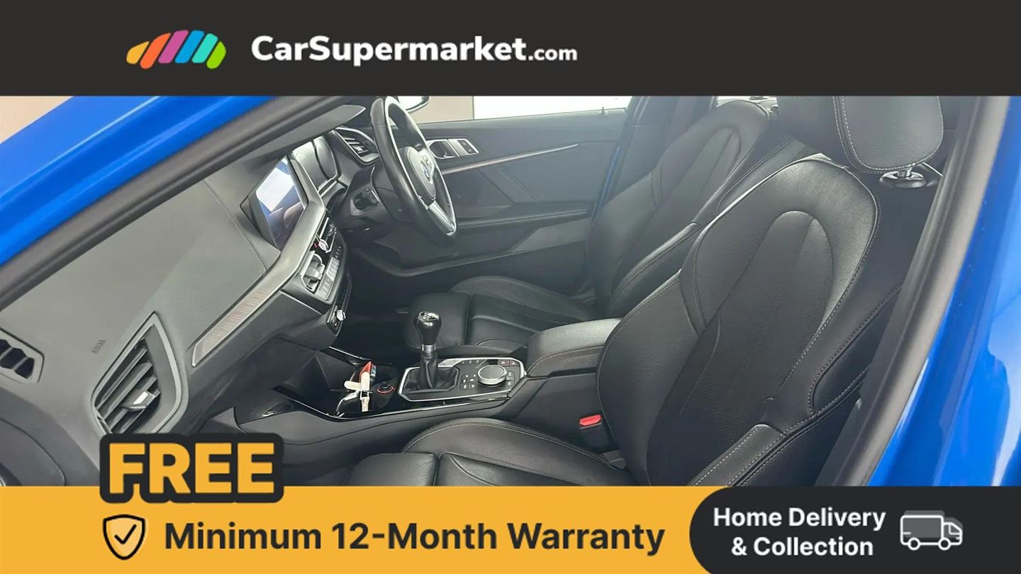 Cruise Control, Lane Departure Warning, Bluetooth, Digital Radio, Satellite Navigation, Leather Upholstery, Heated Seats, Parking Sensors;This 2021 BMW 1 Series 118i M Sport (LCP) benefits from an MOT valid until October 2026, offering peace of mind for the coming years. This Euro 6 compliant model features a 1.5L petrol engine and is presented in the sporty M Sport trim. The vehicle is equipped with distinctive Perforated Dakota Leather upholstery in Black with Grey Highlights, adding a touch of premium comfort. The 118i M Sport is designed for an engaging driving experience, achieving 0-62mph in just 8.9 seconds, demonstrating its responsive acceleration compared to other vehicles in its class. Furthermore, this BMW 1 Series boasts generous boot space, making it a practical choice for everyday use and longer journeys alike.