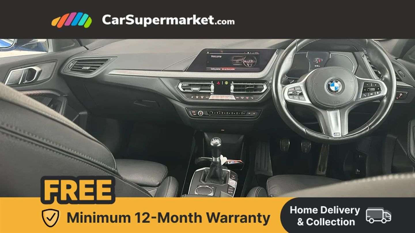 Active guard plus,Attentiveness assist,BMW Online services,BMW Teleservices,Check Control warning system for monitoring of lights and door/luggage compartment open warning,Connected eDrive Services,Cruise control with brake assist,Eco pro mode,Electric power steering with Servotronic steering optimised at all speed ranges,Integrated owners handbook,Lane departure warning system,Oil sensor for level and grade,On board computer,Optimum shift indicator,Personal Profile,Pull away assistant,Speed limiter,6 speed manual transmission,Aluminium lightweight construction,Anti roll bar front and rear,Balancer shaft,Double VANOS,Drive Performance Control,Electronic differential lock,High precision injection,M sports suspension + self levelling,Petrol Particulate Filter,VALVETRONIC engine management,Bluetooth audio streaming,DAB Digital radio,Auto dimming rear view mirror,Automatic headlight beam throw control,Body colour door handles,Body colour mirror caps,Chrome 'M' logo side designation,Chrome exhaust tailpipe in single, round (Exhaust tailpipe, stainless steel - single, round),Chrome kidney grille frame with Satin Aluminium struts,Direction indicator side lights in exterior mirrors,Electric folding and anti dazzle exterior mirrors,Fading support,Follow me home headlights,Front and rear electric windows with open and close fingertip control, anti trap facility and comfort closing,Front door sill finishers in black plastic with BMW designation,Green tinted heat protection glazing,Heated, electrically adjustable exterior mirror aspheric on driver side, convex on passenger side,High gloss shadow line exterior trim,High gloss shadowline window frame, Recess cover mirror frames and B/C pillar embelisher trim,High level third brake light,LED daytime running lights,LED eyebrow turn indicators,LED front fog lights,Lightweight engineering,Matt black air guide grilles,Model designation on right side of tailgate,Nearside reverse light in rear light cluster,Preparation for high beam assistant,Rain sensor including auto headlights activation,Rear fog lights,Rear window wiper,Shark fin antenna,Visible VIN plate,Welcome lighting,Windscreen wipers with integrated washing jets,12V power socket in centre console,2 cupholders in front centre console,3 rear seat head restraints,3 spoke M sports design leather steering wheel finished in nappa leather with specific M badge,Anthracite headlining,Child seat ISOFIX attachment for two outer rear seats and front passenger seat with anchorage points,Conditioned based service,Dakota leather upholstery with perforation and contrast stitching,Driver and front passenger seat heating,Driver side folding compartment in instrument panel,Folding rear clothes hook,Folding rear seats,Four grab handles integrated in roof lining,Front and rear door pockets,Front and rear side armrest integrated into door trim,Front armrest foldable with integrated storage compartment,Front sports seats with electric side bolster adjustment,Gearshift lever with M designation,Glove compartment,Height adjustable front head restraints,Manual adjust steering wheel,Multi-function controls for steering wheel,Rear seat backrest with manual 60:40 split folding with 3 top tether clips integrated on rear of seat panels,Storage compartment in centre console,Sun visors with vanity mirrors and insert tab,Two zone automatic air conditioning,Connected pack professional - 1 Series,Extended Lighting pack - 1 Series,Extended storage pack - 1 Series,Interior lights pack - 1 Series,Luggage compartment pack - 1 Series,M Sport exterior styling aerodynamics pack - 1 Series,2 tone horn,3 point seatbelts on all seats, front pyrotechnic belt tensioners, stopper and belt force limiters, rear coded belt buckles,Airbags - Front driver and passenger, front and rear head, front side, curtain head protection,Anti lock braking system (ABS) with brake assist,BMW emergency call,Brake drying,Braking readiness,City braking function,Crash sensor activating central locking release, hazard warning lights, fuel cut off, interior lighting + activation of safety battery terminal clamp,Driver and front passenger seat belt security check,Dynamic stability control + (DSC+),Dynamic Traction Control - DTC,Electrically operated hand brake,Front and rear disc brakes,Front passenger manual airbag deactivation,Rear child proof door locks,Seatbelt warning,Side impact protection,Tyre pressure monitoring system,Warning triangle and first aid kit,Automatic drive away locking facility,Central locking switch for all doors, fuel filler cap and luggage compartment,Deadlocking function system to all doors,Locking wheel bolts,Remote control with integrated key with High-gloss Black inlay and M designation and 1 button for open/ close lock, window, open luggage compartment,Start/stop button with comfort go keyless engine start and auto start stop deactivation button,Thatcham Cat.1 alarm and immobiliser,Contrast stitching on instrument panel,Reduced rolling resistance tyres