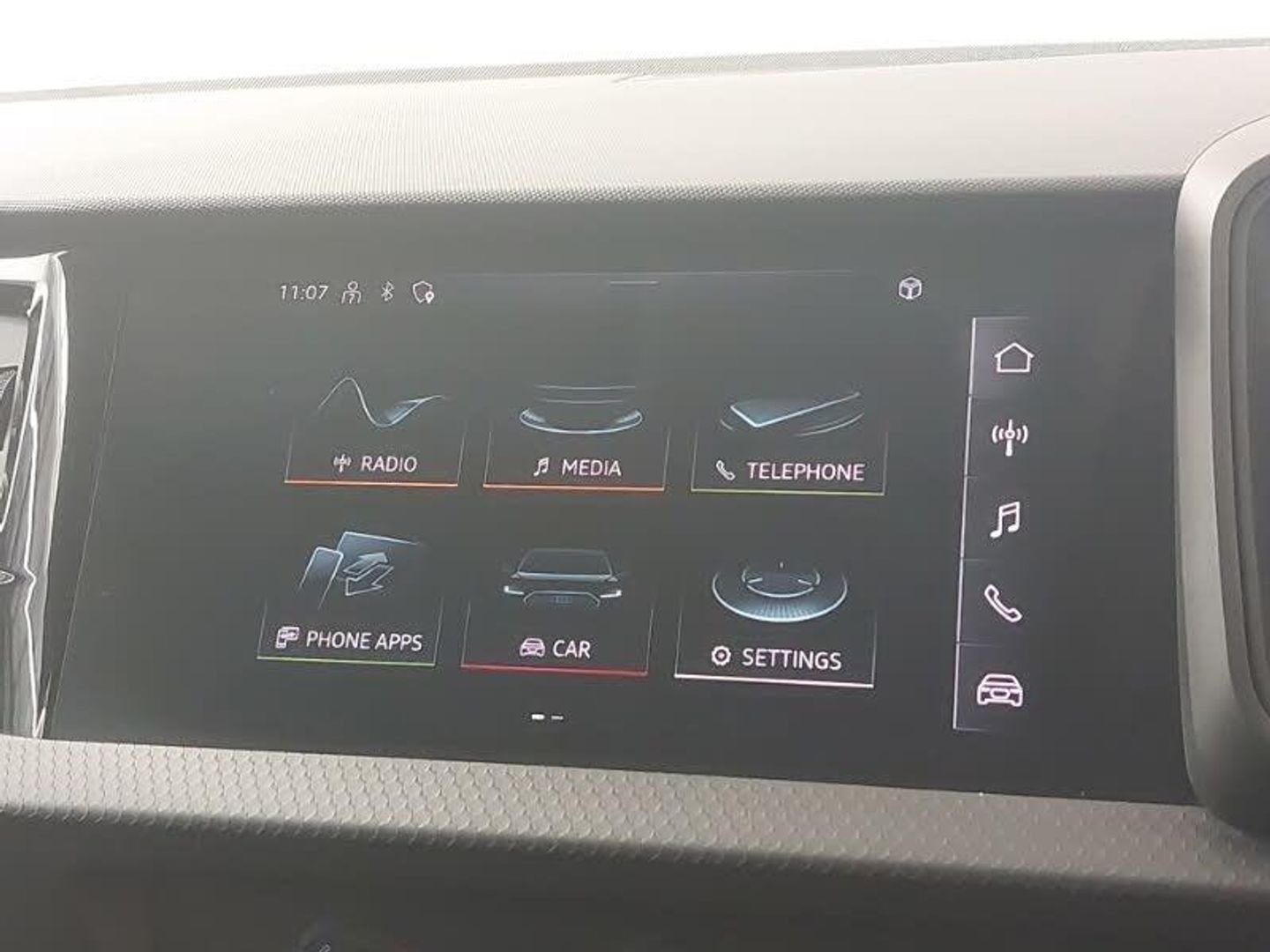 10.25" Digital instrument cluster display classis style instrument dials + speed,odometer,time,outside temperature,telephone menu + fuel level warning, Audi smartphone interface with connect compatible smartphone via USB directly MMI display + Nav,music, third party apps controlled via MMI controller, Bluetooth interface, Speed limiter, Voice control system, Dynamic suspension, DAB Digital radio, MMI radio plus with 8.8" colour MMI display screen and MMI touch, Auto dimming rear view mirror, LED headlights with LED rear lights + dynamic rear indicators + headlight adjustment and high beam, turning light + LED daytime running lights, Heat insulating glass windscreen and side windows, 3 spoke leather multifunction plus steering wheel, 40:60 Split folding rear seat or folded fully, Delta cloth upholstery, ISOFIX child seat mounting for front passenger and outer rear seats including top tether attachment point of outer rear seats, Titanium grey cloth headlining, Luggage compartment pack - A1, Audi pre-sense front with pedestrain and cyclist recognition, Hill hold assist