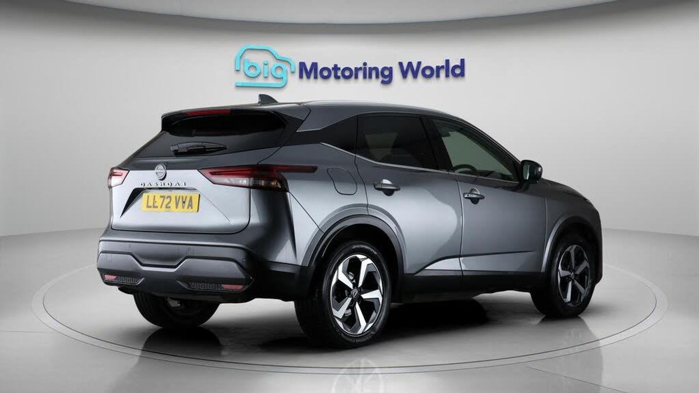 18'' alloy wheels,Satellite Nav-Our Nissan Qashqai is finished in Grey. Specification includes a range of fantastic features including 18'' alloy wheels, Satellite Navigation, Privacy Glass, Rear View Camera, Bluetooth, Blind Spot Assist, Parking Sensors, Ambient Lighting, 2 Zone Climate, Cruise Control Specification information is supplied by CAPHPI and may vary to the actual car. This data does not form any part of a buying contact. Please check specification prior to purchase in-store. The MOT is valid until October 2026, visit bigmotoringworld.co.uk for more photos, a 360 tour, service history and a free HPI report.Were BIG on peace of mind and this Grey Nissan Qashqai has completed our comprehensive 200 point inspection and passed all checks. Its ready for you to drive away with immediate collection in-store. We include a 90-day warranty as standard plus an option to extend for up to 3 years.Reserve this car exclusively for you, safely and securely at bigmotoringworld.co.uk, with a fully refundable £99 deposit. Test drive before you buy, with no commitment, no hassle and a completely haggle free experience. Still searching and want to see thousands more cars? We are BIG on choice with over 8000 cars to choose from.Visit our award winning web site bigmotoringworld.co.uk.Were Big Motoring World and were BIG on what matters to you.