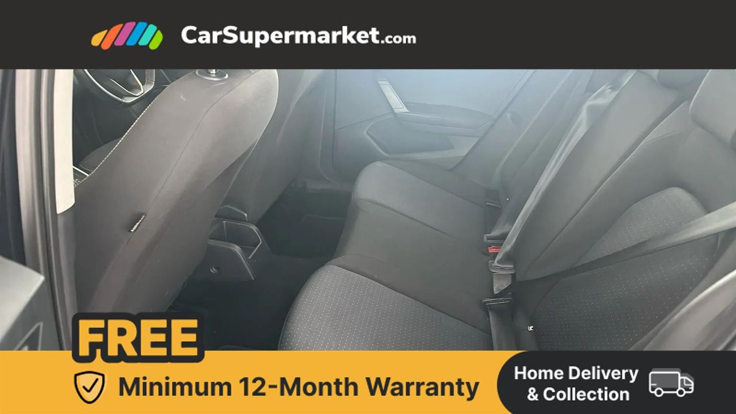 'Lights On' Reminder warning buzzer,8" Digital cockpit,Cruise control and speed limiter,Digital clock,E-call,Electric speed sensitive power steering,Full Link Smartphone Integration with Mirror Link, Apple Car Play, Google Android Auto with USB Type C cable for Apple and Android compatibility,Lane keeping system,Low fuel warning light,Outside temperature display,Rear parking sensor,RPM counter,Seat connect with safety, service, remote and online,Trip computer,Wireless phone charger,9.2" colour touchscreen with navigation system, voice control and USB port (type c),Bluetooth interface for hands free and audio streaming,DAB digital radio and AM/FM radio,Steering wheel mounted audio controls,Anti theft roof antenna,Automatic activation of hazard warning lights,Black roof rails and window surrounds,Body coloured bumpers,Body coloured door handle inserts,Body coloured door mirrors,Dimming rear view mirror,ECO LED automatic headlights and LED daytime running lights,Electric adjustable door mirrors,Electric front/rear windows,Hidden exhaust pipe,Licence plate lights,Protective side mouldings,Rain sensing wipers,Rear fog lights,Rear side wing doors,Rear spoiler,Rear window wash/wipe,Third brake light,Visible VIN plate,Windshield wiper with intermittent control and potentiometer,2 cupholders,3 seat bench in 2nd row,60/40 split folding rear seat,Air conditioning,Cloth upholstery,Double boot floor,Driver sunvisor with covered mirror + card holder,Dust/pollen filter,Front courtesy light with front reading lights,Gear shift indicator,Grey interior roof,Height adjustable front seats,Height/reach adjustable steering column,Illuminated boot,Instrument lighting with brightness control,ISOFIX points in outer rear seats with top tether anchorage points,Leather steering wheel/gear knob/handbrake,Passenger sunvisor with vanity mirror,Single front passenger seat,Two front and three rear height adjustable headrests,Interior chrome pack - Arona,3 point seatbelts on all rear seats,ABS,Active front headrests,Child locks on rear doors,Driver and front passenger airbags with front passenger airbag de activation, front side and curtain airbags,Electronic stability control,Emergency Brake Assist (EBA) and front assist,Front and rear seatbelt reminder,Hill hold control,Multi-Collision braking,Tiredness recognition system,Traction control,Tyre pressure monitoring system,Electronic engine immobiliser,Locking wheel bolts,Remote central locking + deadlocks,Titan black dashboard,17" Dynamic machined alloy wheels