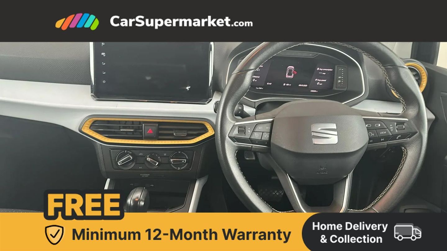 Digital Cockpit, Cruise Control, Android Auto, Apple CarPlay, Wireless Phone Charging, Sat Nav, Bluetooth, Digital Radio, 17" Alloy Wheels;This 2023 SEAT Arona TSI SE Technology is a standout choice, having been owned by just one person and boasting exceptionally low mileage for its age at only 19,592 miles. A recent service was completed on 8th October 2025 at 19,592 miles. Inside, you'll find convenient features like a wireless phone charger and air conditioning, while the Eco LED automatic headlights and LED daytime running lights ensure excellent visibility.