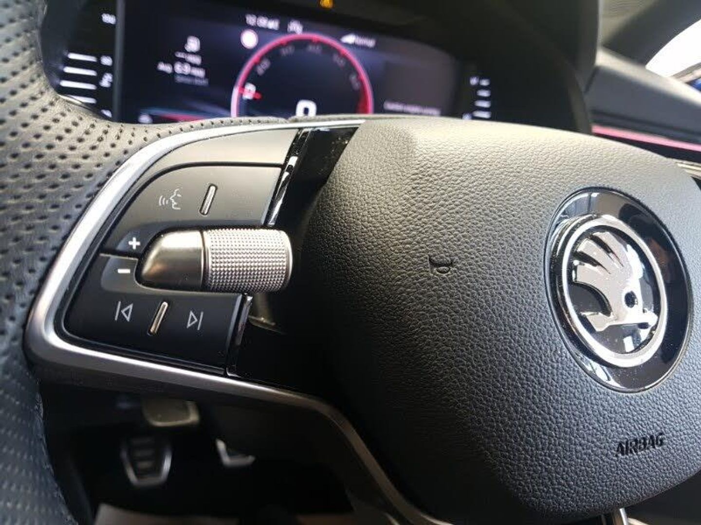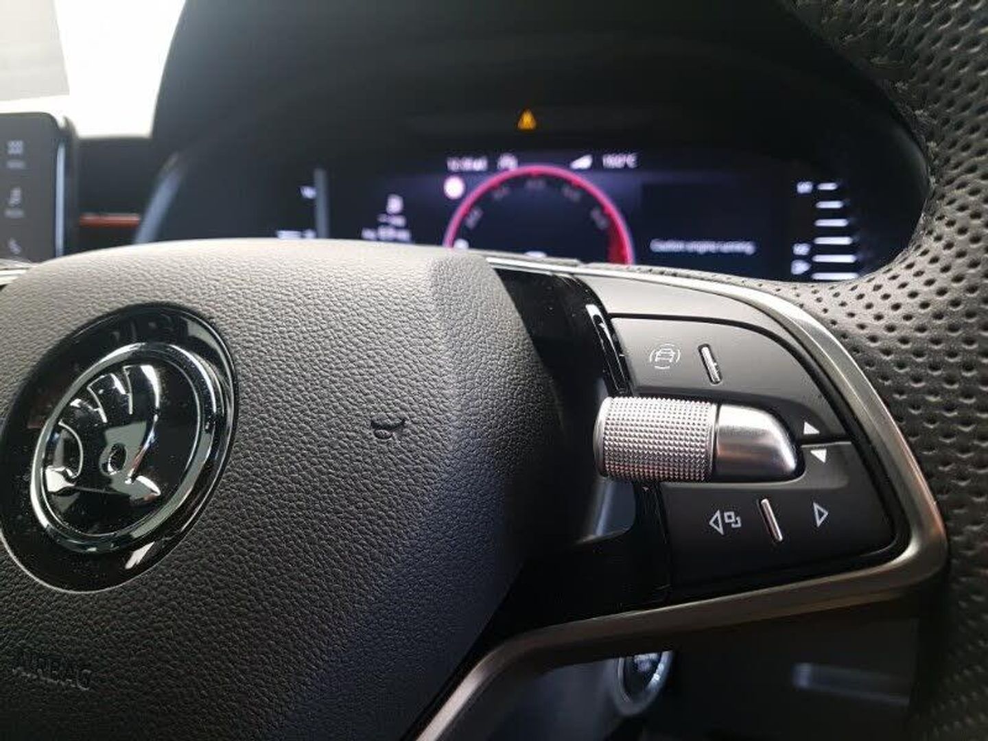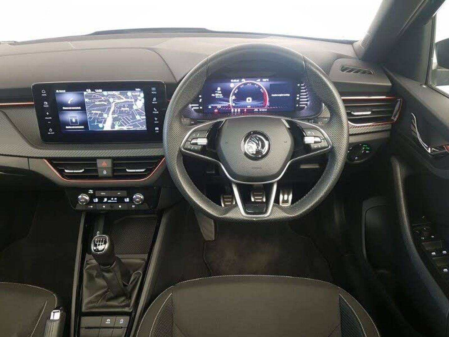Apple CarPlay, Android Auto, Fixed panoramic sunroof with black roof rails, 18" Ursa black diamond cut alloy wheels, 9.2" Skoda navigation display, Virtual cockpit with 10.25" display, Wireless smartlink, Rear parking sensors, Bluetooth system, DAB Digital radio, Automatic headlights, Ambient lighting in white/red