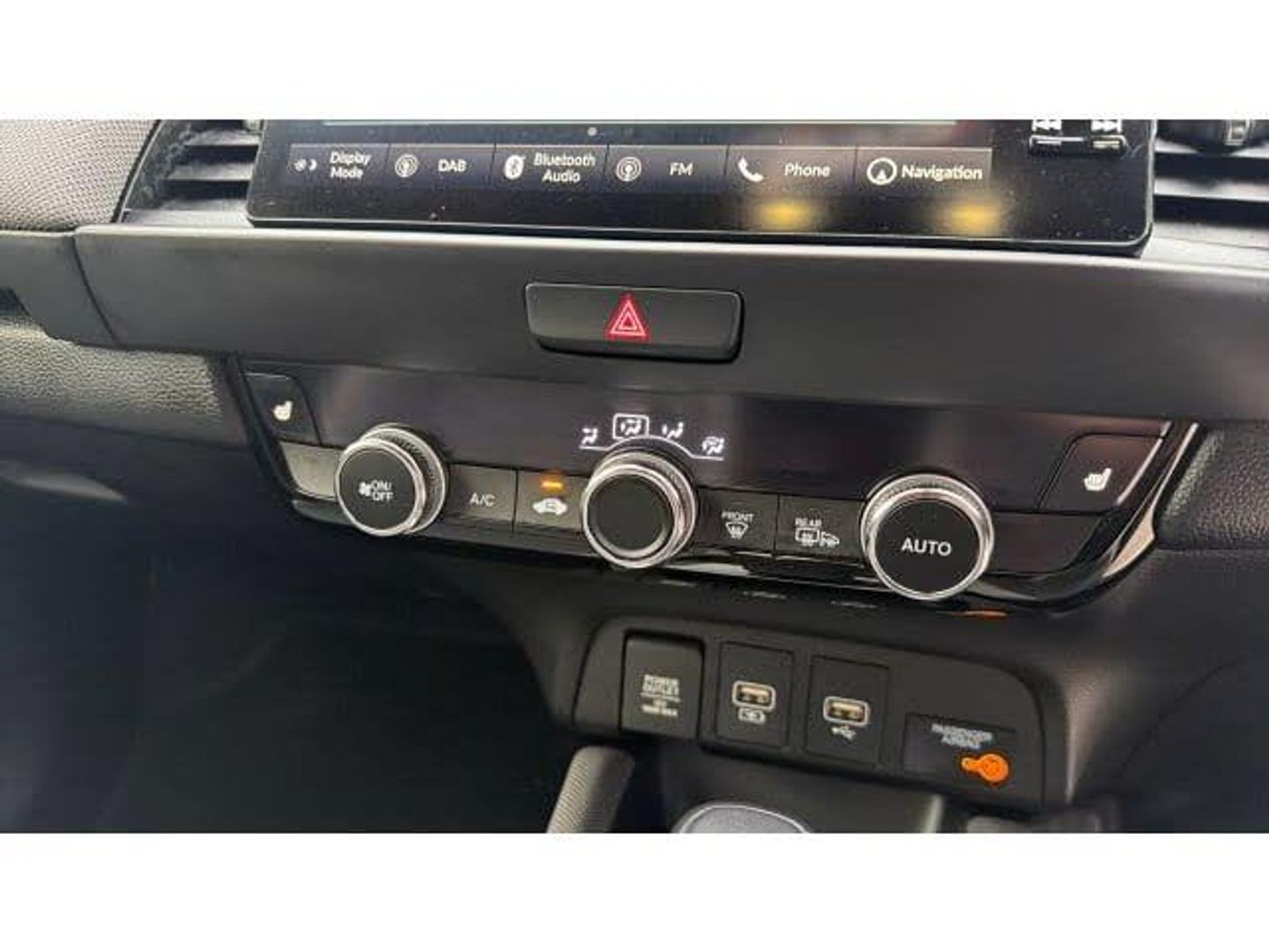 Privacy glass, Front and rear electric windows, Auto wipers, Rear wiper, Brake assist function, Hill start assist, Collision mitigation braking system, Emergency stop signalling system, Anti-lock Braking System (ABS), Electric parking brake, Brake hold function, Vehicle stability assist, Bluetooth hands free telephone connection, Wireless apple carplay, Adaptive cruise control, Paddle shift controls, Lane departure warning system, Lane keep assist system, Front and rear parking sensors, Forward collision warning, Traffic sign recognition, Road departure mitigation, Idle stop, Low speed following, Intelligent speed limiter, Adjustable speed limiter, Agile handling assist, Multi-information display, Econ mode, eCall emergency call system, Honda CONNECT with GARMIN Navigation + 9" touchscreen, AM/FM/DAB/Apple Carplay and android auto, Heated door mirrors, Aspheric door mirrors, Electric adjustable door mirrors, Electrically folding door mirrors