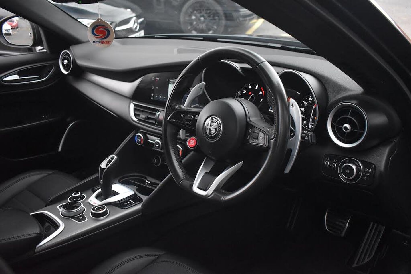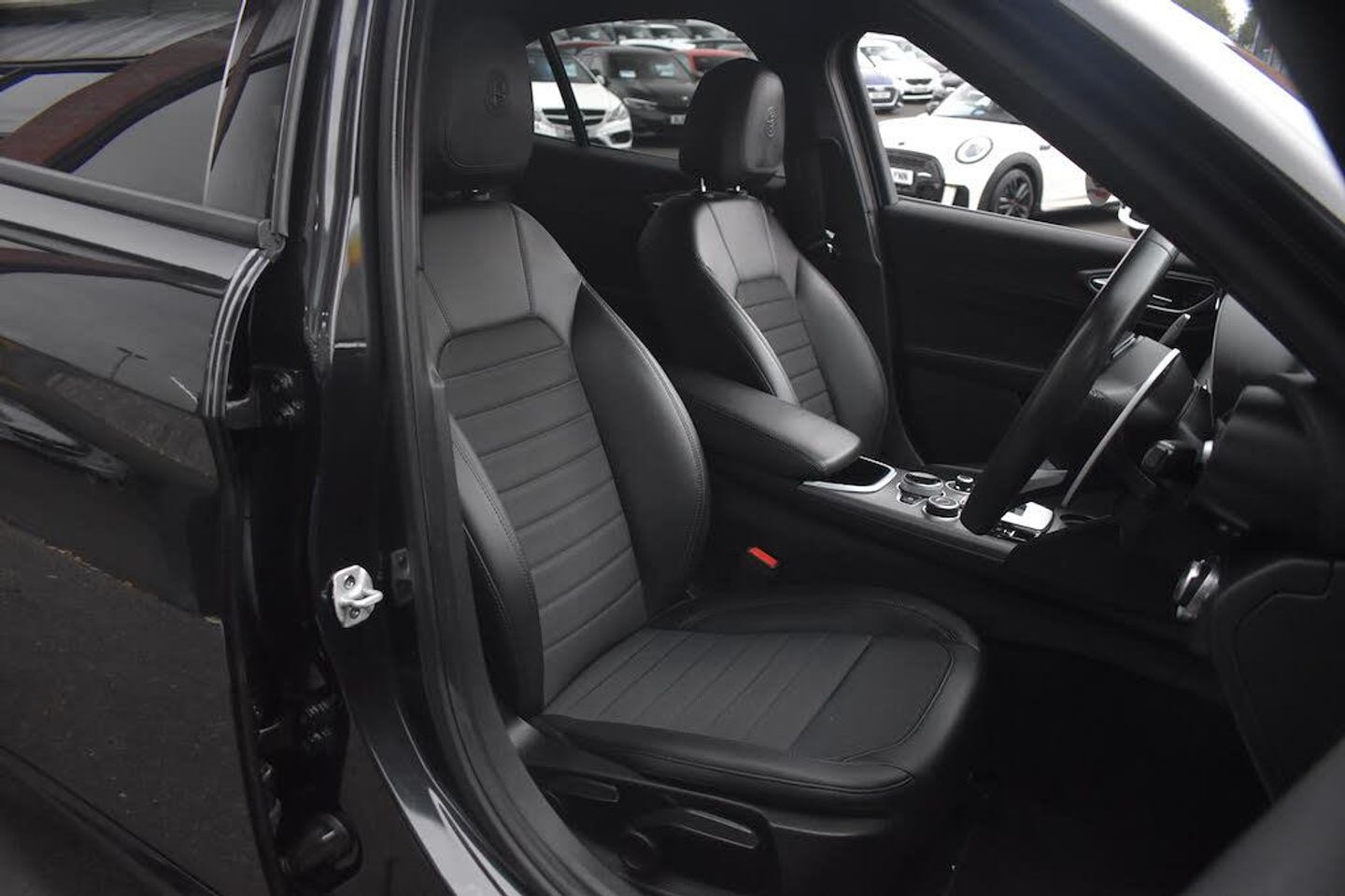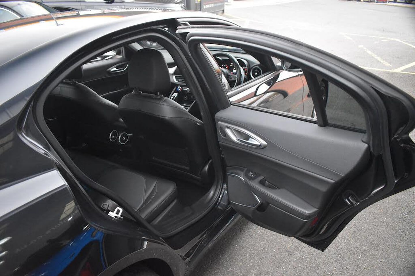 12v Power Outlet,40-20-40 Split Folding Rear Seats,7in Colour TFT Instrument Cluster,ABS - Anti Lock Braking System,AQS - Air Quality System,Active Cruise Control,Additional Soundproofing,Airbags - Driver,Airbags - Passenger,Alarm System with Bonnet and Intrusion Protection,Alfa Connect 3D Nav 8.8in Multi-Touch Infotainment System,Alfa Connect Box,Alfa Connect Services,Aluminium Interior Inserts,Aluminium Shift Paddles on Steering Column,Aluminium Sports Pedals and Footrest,Apple CarPlay and Android Auto,Automatic High Beam System,Autonomous Emergency Braking - AEB,Badge - Sprint,Belly Pan,Bi-Xenon Headlights - 25W,Bumpers - Sports Front,Climate Control,Connectivity - USB & Aux-in Armrest Ports,DAB Radio,DNA Unlatched,Dark Finish Exhaust Finisher,Dark Finish Giulia Badge,Dark Finish V Grille,Dark Tinted Rear Windows,Driver Seat - 6-Way Manual,Driver Side Sun Vision with Mirror,Dual Exhaust,Dusk Sensor,Electric Windows - Front,Electrically Adjustable and Power Folding Door Mirrors,Electrochromic Rear View Mirror,European Maps,Exterior Door Handle Courtesy Lights,Fix and Go Puncture Repair Kit,Floor Mats,Front Airbag Deactivation on Passenger Side,Front Courtesy Map Lamps,Front and Rear Parking Sensors,Functional LED Lighting,Head Restraints - Third Rear,Headlamp - Adjustment,Headlining - Dark,Heated Washer Jets,Kick Plates - Aluminium,Lane Departure Warning - LDW,Monochrome Central Wheel Caps,Outside Rearview Mirror - Electrochromic Autodimming,Passenger Seat - 6-Way Manual,Passive Entry,Power Steering,Rain Sensing Wipers,Rear Air Vents,Rear Backup Camera,Rear USB Port,Remote Central Door Locks,Satin Finish Speaker Surround,Seat Belt Reminder,Sports Leather Gear Stick,Sporty Leather Wrapped Steering Wheel,Steering Wheel Controls,TMC - Pro,TPMS - Tyre Pressure Monitoring System,USB - Front Centre Console,Wireless Charging Pad,19in Alloy Wheels - Petal Design - Dark,Brake Calipers - Red,Vulcano Black,Faux Leather and Cloth - Black