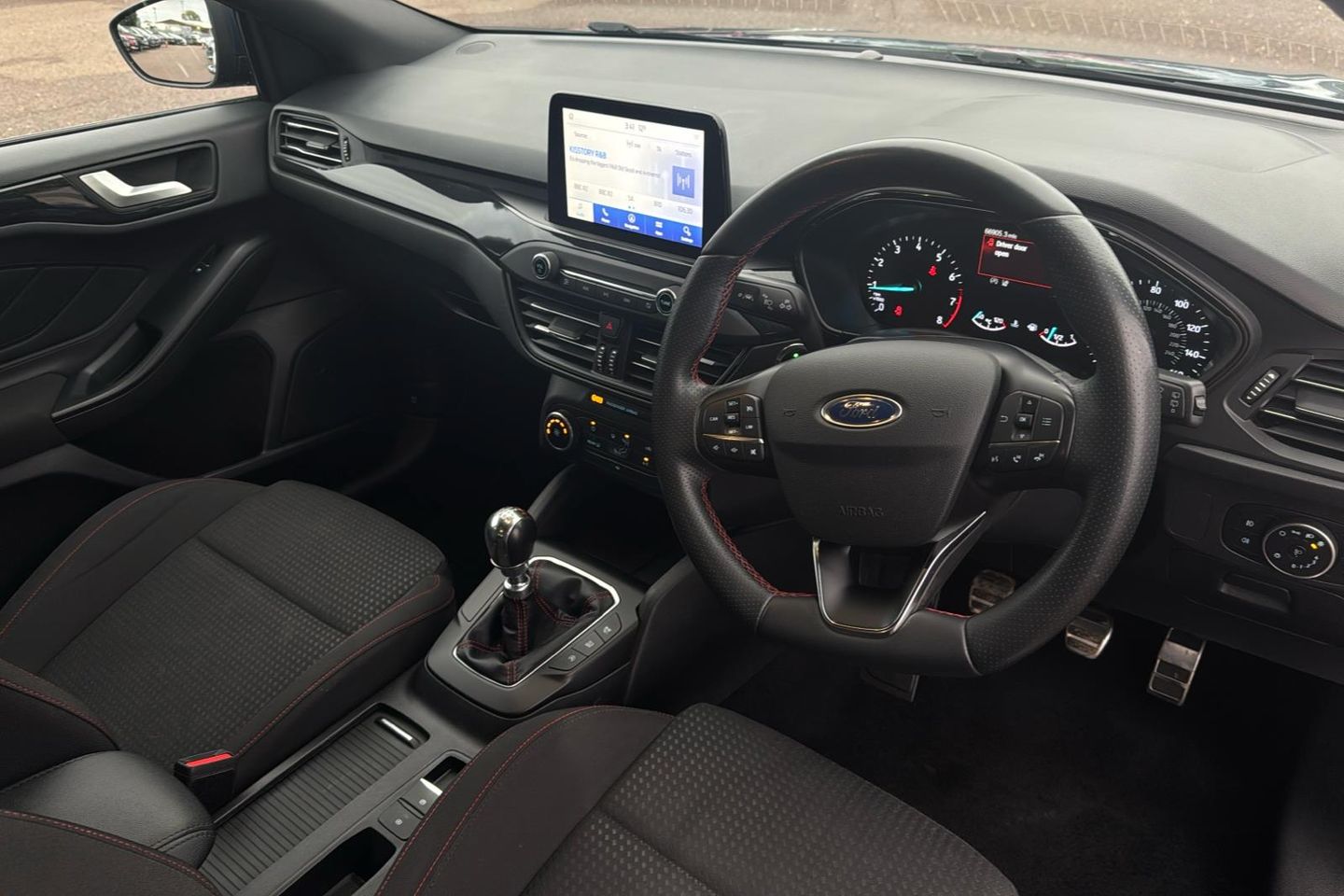 17in Alloy Wheels - 5x2-Spoke - Rock Metallic ABS - Anti-lock Braking System Acoustic Laminated Windscreen Airbags - Driver and Front Passenger Airbags - Front Side Impact Airbags - Front and Rear Side Curtain Alarm - Thatcham Category 1 with Volume Sensing and Perimeter Alloy Finish Pedals Black Finish on Upper Door Line Centre Console - Premium with Sliding Armrest - Cupholder with Sliding Cover - 12V Front Power Point Child Proof Rear Door Locks Cruise Control with Speed Limiter Dark Headliner Door Handles - Body Colour Door Mirrors - Heated - Electric - Integrated Side Indicators - Body Coloured ESC - Electronic Stability Control Electric Parking Brake Emergency Assistance Flat Bottomed Steering Wheel with Red Stitching Floor Mats - Front Velour Fog Light Bezel - Unique ST-Line Ford Easy Fuel System Ford SYNC with 8in TFT Touchscreen FordPass Connect Front Bumper - Unique ST-Line - Body Colour Upper - Body Colour Extension Front Lower Grille - Black Mesh Front Passenger Airbag Deactivation Switch Front Passenger Seat - Rotary Recliner Front Seat - Drivers Manual Lumbar Support Adjustment Front Seat - Passengers Manual Fore-Aft Adjustment Front Seatback Map Pockets - Driver and Passenger Front Seats - Drivers Manual Rotary Recliner Seat Front Seats - Sports Style V-shape with High Bolster Front Upper Grille - Black Mesh with Black Surround Front and Rear Seatbelt Minder Gearshift Knob - ST-Line Aluminium Halogen Reflector Headlights Headlight Bezel - Black Headlights - Automatic On-Off Hill Start Assist Intelligent Speed Assistance Keyless Start with Ford Power Start Button LED Daytime Running Lights LED Front Fog Lights with Cornering Function Lane Keeping Aid with Lane Departure Warning Large Rear Spoiler - Body Colour with Centre High Mounted Stop Light Load Compartment Area Cover Load Floor Carpet Locking Wheel Nuts Manual Air Conditioning MyKey Overhead Console - Medium Length with Front and Rear LED Courtesy Lights Polished Twin Tailpipe Post Collision Braking Power Steering Pre-Collision Assist with Autonomous Emergency Braking and Pedestrian-Cyclist Detection Quickclear Heated Windscreen Rear Bumper - Unique ST-Line Body Colour with Body Colour Extension Rear Centre Headrest Rear Fog Lamps Rear Seat - 60-40 Split Folding Seats Rear Seat Fixed Cushion Remote Central Locking and Engine Immobiliser ST-Line Badge Scuff Plates - Front Polished Stainless Steel with Etched ST-Line Logo Seats - Drivers Manual Height and Fore-Aft Adjustment Seats - ISOFIX Mounting Provision for Child Seats Selectable Drive Mode Side Skirts - Unique ST-Line Body Colour Spare Wheel - Mini Steel Sports Tuned Suspension Steering Column - Rake and Reach Adjustment Steering Wheel - 3-Spoke - Leather Trimmed Tailgate Wash-Wipe Traction Control - TC Trip Computer Tyre Pressure Monitoring System Unique ST-Line Upper and Lower Grille and Full Bodystyling Kit and ST-Line Wing Badges Windows - Electrically Operated Front and Rear with One Touch Opening and Closing Wipers - Standard with 6 Speed Interval Settings