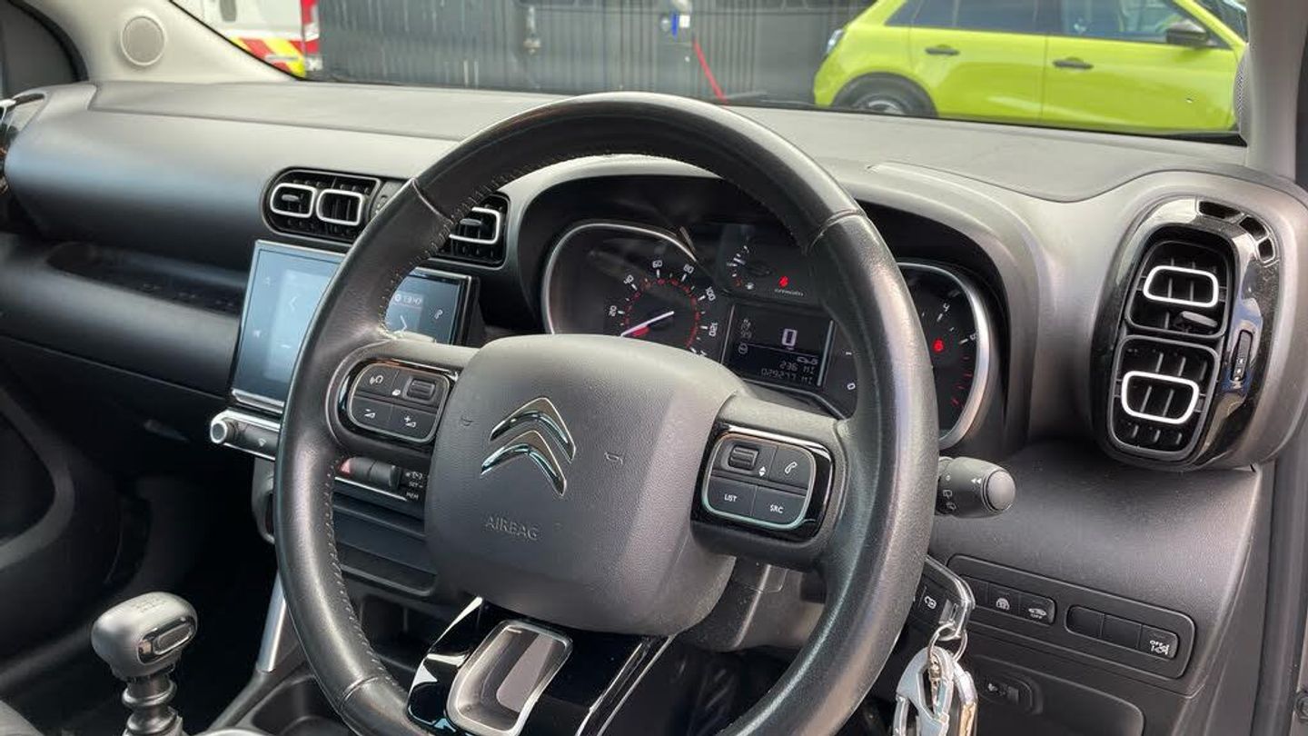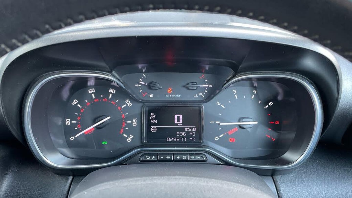 12V Socket - Front, 12V Socket - Rear, Bluetooth Handsfree and Media Streaming with USB Socket and Jack, Citroen Connect DAB Radio with 6 Speakers, Coffee Break Alert, Cruise Control with Speed Limiter, Lane Departure Warning System, Multi-Function On-Board Trip Computer, Rev Counter, Tyre Pressure Monitor, 16in Alloy Wheels - Matrix, Body Colour Painted Door Handles, Dark Tinted Rear Windows, Door Mirrors - Electrically Adjustable-Heated-Folding, Front and Rear Aluminium Effect Bumper Protectors, Front Electric Windows - One Touch with Anti-Pinch, Gloss Black Door Mirrors, Space Saver Spare Wheel, Front Fog Lights with Cornering Function, Halogen Headlights with LED Daytime Running Lights, Headlights - Automatic, Boot Light, Drivers and Passengers Sunvisor with Courtesy Mirror, Floor Console Central Storage with 2 Cup-Holders, Front Courtesy and Reading Lights, Front Door Storage Large Enough for a 1.5L Bottle, Height Adjustable Drivers Seat, Height and Reach Adjustable Steering Wheel, Leather Gear Knob, Manual Air Conditioning, Rear Door Storage Large Enough for a 0.5L Bottle, Seats - 60-40 Split Rear, Steering Wheel - Leather with Satin Chrome Inserts, Steering Wheel Mounted Controls, Black Exterior Colour Pack, Electric Power Steering, Ink Black Roof Bars, Mirror Screen Compatible with Android Auto and Apple CarPlay, Rear Electric Windows - with Anti-Pinch, Touchscreen - Colour 7in, ABS with Electronic Brakeforce Distribution and Emergency Braking Assistance, Alarm, Driver - Front Passenger - Front Lateral and Curtain Airbags, Drivers - Passengers and Rear Seats Unfastened Seat Belt Warning, Electronic Stability Control - ESC, Five Three-Point Inertia Reel Seat Belts, Front Seat Belt Pretensioners, Hill Start Assist, Immobiliser, Manual Child Locks, Outer Rear Seats with ISOFIX Mounting Points Including Top Tether, Remote Central Locking with Deadlocks, Speed Limit Recognition and Recommendation