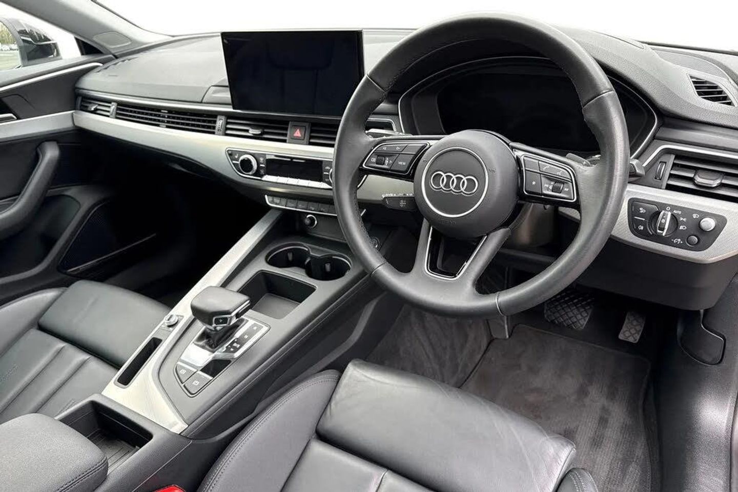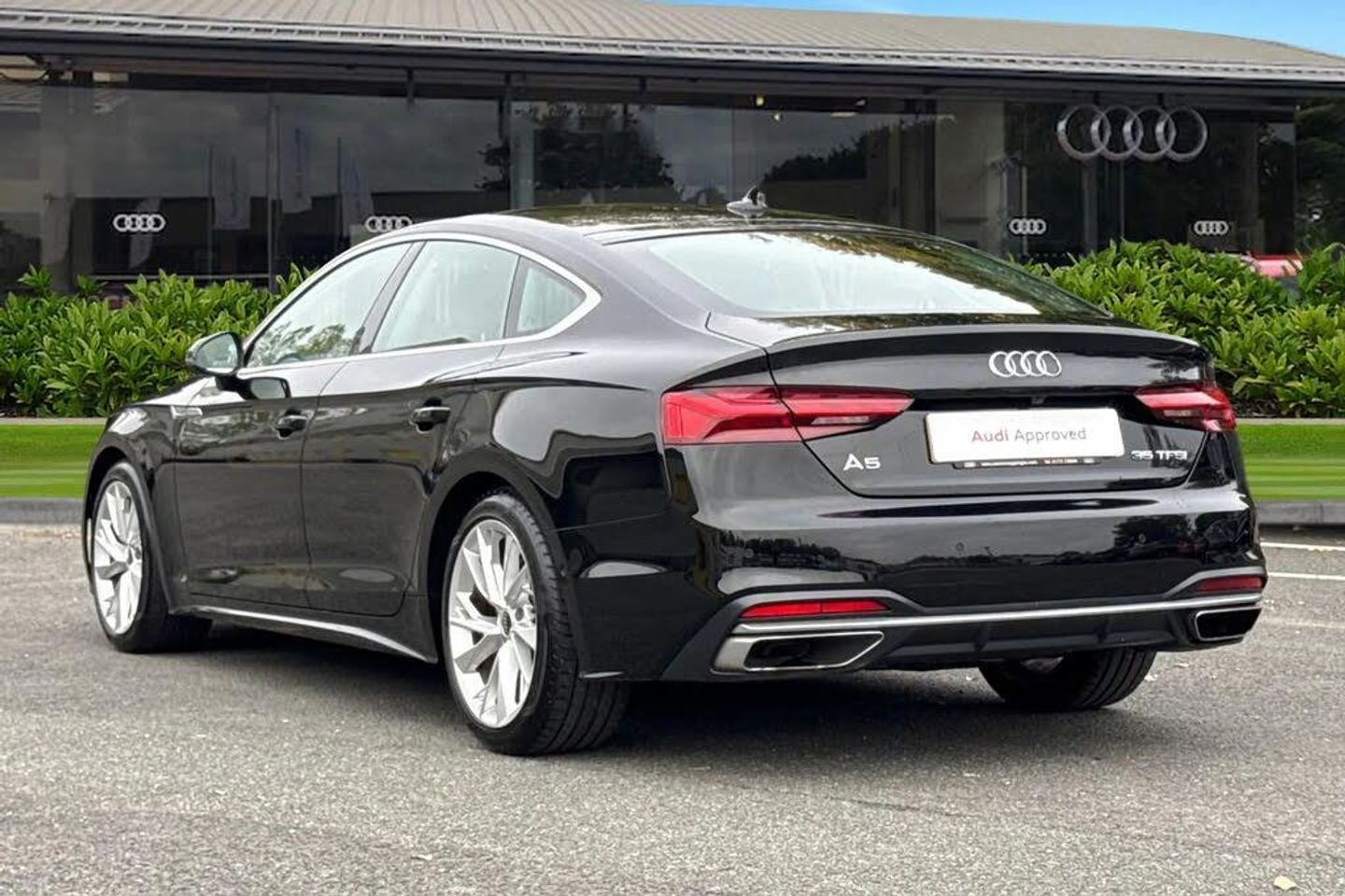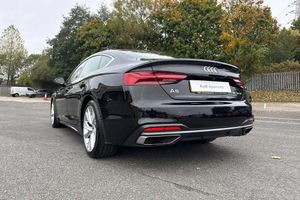 Ambient Lighting, Panoramic / Sunroof, Park Assist;This Approved Used Audi A5 Sport Sportback in Mythos Black combines elegant design, refined performance and cutting-edge technology. Powered by a 2.0-litre TFSI petrol engine paired with the S Tronic automatic gearbox, it offers smooth power delivery and impressive efficiency ? perfect for both long-distance comfort and everyday driving. The sleek exterior stands out with Matrix LED headlights, dynamic rear indicators and 18-inch 5-twin-spoke alloy wheels, creating a bold yet sophisticated look. The Sport body styling, matt aluminium silver detailing and a panoramic glass sunroof add to its premium character, while electrically folding, heated and auto-dimming mirrors with memory enhance practicality. Inside, the cabin exudes Audi quality with leather upholstery, aluminium ellipse silver inlays and extended LED ambient lighting. The front sport seats offer electrical adjustment with driver memory, 4-way lumbar support and heating for maximum comfort. The deluxe 3-zone climate control keeps the cabin perfectly balanced for all occupants. Technology is at the forefront, featuring MMI Navigation Plus with MMI Touch, Audi Virtual Cockpit and a head-up display that projects key information directly onto the windscreen. The Bang & Olufsen 3D sound system delivers outstanding audio clarity, while the Audi Phone Box provides wireless charging and seamless smartphone connectivity. Parking is effortless with 360° cameras, Parking Assist and Parking System Plus, complemented by adva...