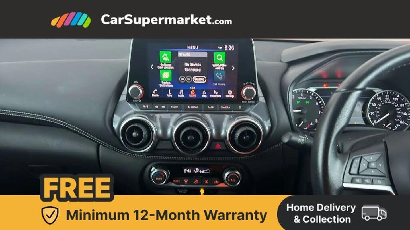 Apple CarPlay, Android Auto, Lane Departure Warning, Sat Nav, Traffic Sign Recognition, Bluetooth, Digital Radio, Privacy Glass, Automatic Climate Control;This 2022 Nissan Juke DIG T N Connecta boasts a single owner and a clear vehicle history, offering peace of mind for its next keeper. With its efficient 1.0 litre Euro 6 petrol engine, this N Connecta model delivers an impressive fuel economy of 47 miles per gallon, making it a cost effective choice. The vehicle has been well maintained, with its last service completed on 23rd May 2025 at 32098 miles, and its MOT remains valid until September 2026. Keyless entry and start are a convenient feature, alongside automatic climate control to ensure a comfortable cabin temperature. Enjoy seamless smartphone integration with Apple CarPlay and Google Android Auto, keeping you connected on the go. The low CO2 emissions further highlight this Juke's appeal as a more environmentally conscious option compared to many similar vehicles. This combination of low ownership, comprehensive service history, and desirable modern features makes this 2022 Nissan Juke a compelling proposition.