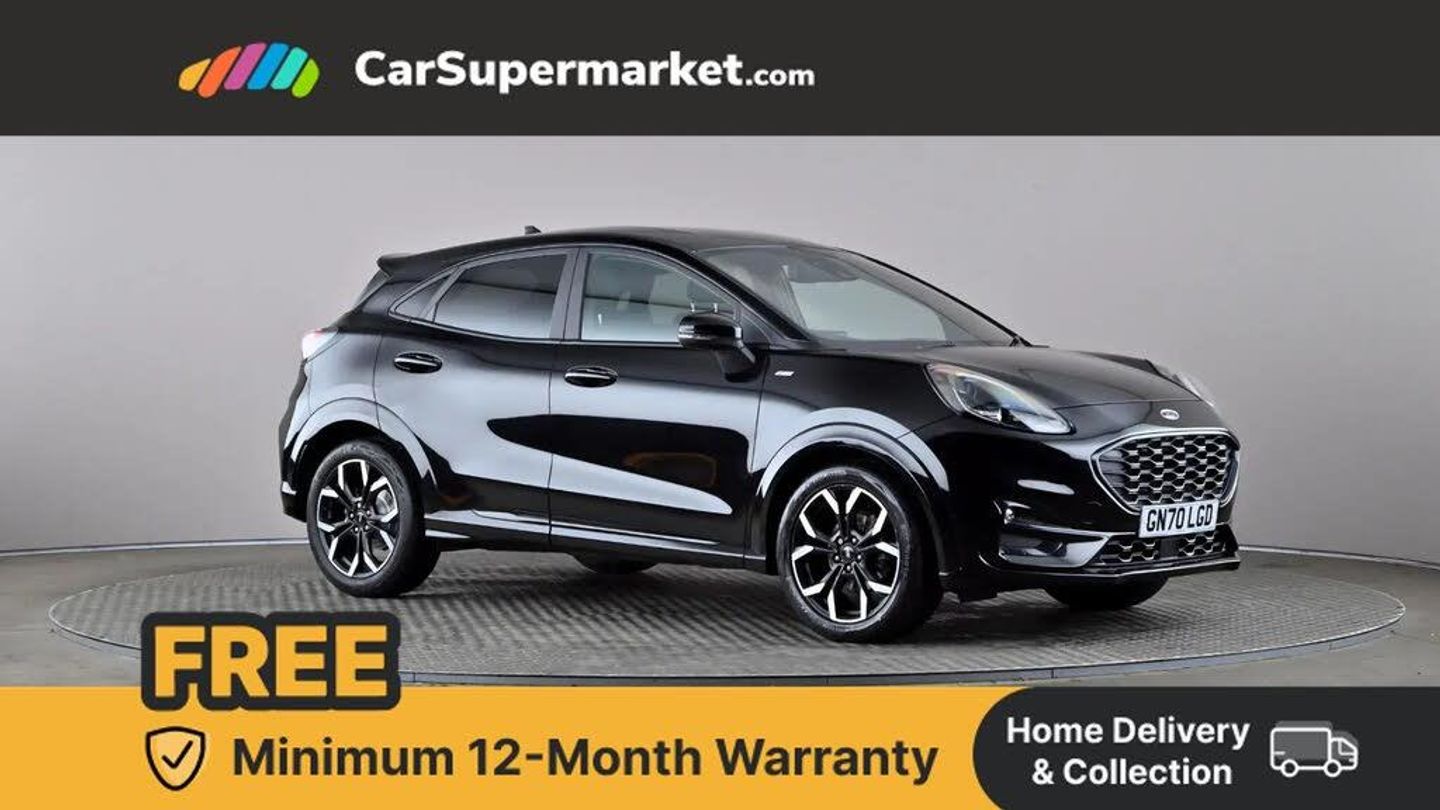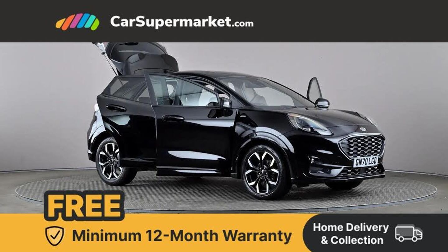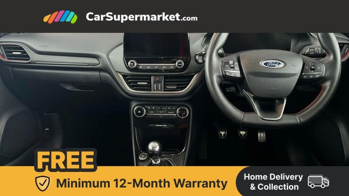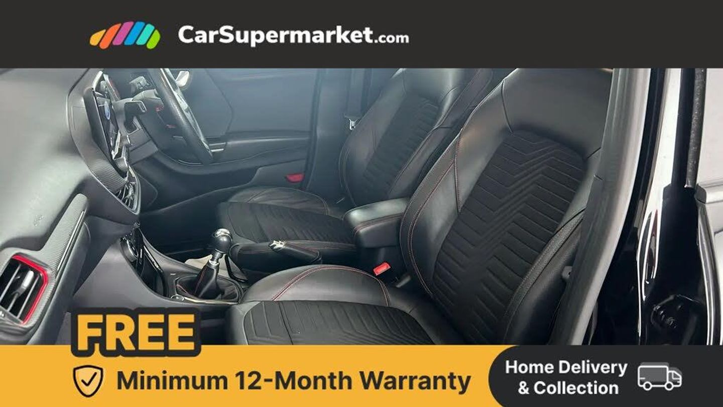 Ford easy fuel,Full digital 12.3" instrument cluster,Lane keeping aid with lane departure warning,Power assist steering,Rear parking sensor,Selectable drive modes(Normal, sport, Eco, trail, slippery),Wireless charging pad,Automatic headlights with rain sensing wipers and auto high beam,Body coloured door mirrors,Front fog lights with cornering lights and LED rear lamps,Power foldable heated door mirrors with puddle lamps,Privacy glass to side rear windows and tailgate glass,Quickclear heated windscreen,Rear wiper,ST-Line body kit with large rear spoiler wth sports suspension,Alloy sports pedals,Casual partial leather upholstery with salerno bolster,Centre console with armrest and stowage,Driver and passenger seat lumbar and height adjust,Ford megabox extended bootspace,Front and rear head restraints,Manual air conditioning,ST-Line flat bottomed sensico leather steering wheel with leather handbrake and aluminium gear knob,B&O Premium Audio system + Ford SYNC 3 navigation pack - Puma,3 rear seatbelts,Electronic stability control (ESC) and hill start assist,Pre-collision assist with autonomous emergency braking, pedestrian/cyclist detection & post-collision braking,Tyre pressure monitoring system (TPMS),Thatcham alarm,Carbon look interior deco spears,Tyre inflation kit