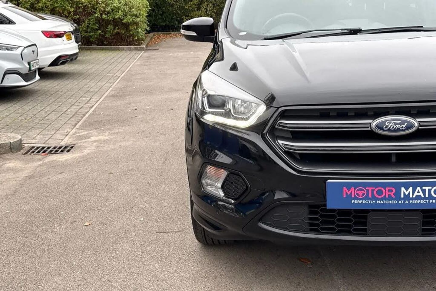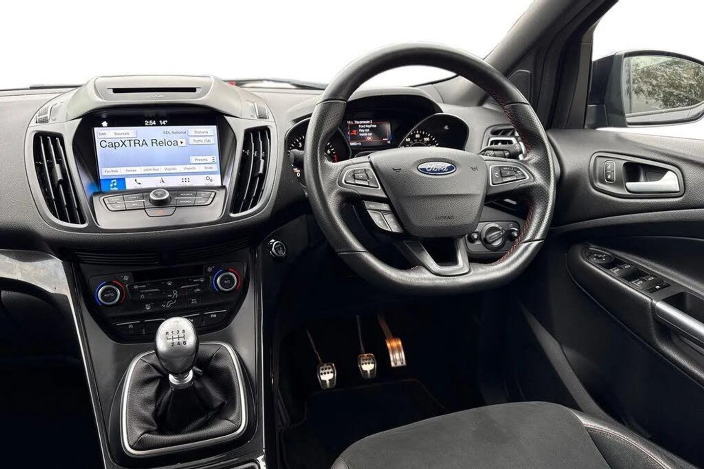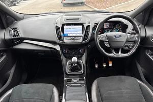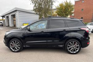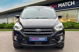 Alloys, Cruise Control, Park Assist, Keyless Entry, Sat Nav, Puddle Lights, Panoramic / Sunroof, Parking Sensor, Isofix, Advanced Safety;This striking 2019 Ford Kuga 1.5T EcoBoost ST-Line Edition in black offers a perfect blend of sportiness and everyday practicality. Powered by a 1.5-litre petrol engine producing 150 PS and paired with a manual transmission, it delivers confident performance with excellent efficiency. The exterior design reflects Ford?s dynamic styling, enhanced by a full ST-Line body kit, black mirror caps, and a large rear spoiler. Automatic halogen headlights with LED daytime running lights ensure clear visibility, while 19-inch Rock Metallic alloy wheels, red brake callipers, and privacy glass add a bold, athletic character. Roof rails provide versatility for weekend adventures, and the panoramic roof brightens the cabin for every journey. Practicality comes naturally to the Kuga, with a spacious and easily accessible boot that suits both family life and travel needs. The 60:40 split-folding rear seats with reclining function make carrying larger items effortless while maintaining excellent passenger comfort. Inside, the ST-Line theme continues with sporty details including a flat-bottomed leather steering wheel with red stitching, alloy pedals, and premium materials. Front seats feature height and lumbar adjustment for maximum support, while rear passengers enjoy generous legroom and a fold-down centre armrest. The SYNC 3 infotainment system brings DAB radio, Bluetooth, mobile app connectivity, and navigation together on an intuitive touchscreen, complemented by convenient voice cont...