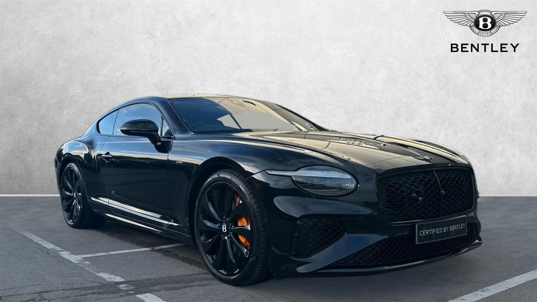 GT Black Edition great specification finished in Onyx Black paint VAT Q. Continental GT Black Edition 4.0 V8 Hybrid including Touring Specification, Panoramic Glass Roof, Bang + Olufsen for Bentley and Dark Chrome Interior Specification VAT Q..