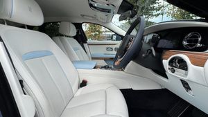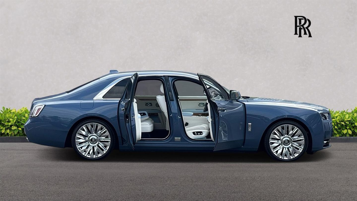 VAT Qualifying Vehicle,Rolls-Royce Bespoke Audio,Starlight/Shooting Star Headliner,Uplit Spirit of Ecstasy,Rear Champagne Cooler & 2 x Champagne Flutes,Picnic Tables,Rear Theatre Configuration,Immersive Seating with Occasional Third Seat,Chrome Plated Visible Exhausts,Illuminated 'GHOST' Treadplates,Illuminated Grille,Front & Rear Massage Seats,Front & Rear Ventilated Seats,22" Fully Polished Alloy Wheels,Illuminated 'GHOST' Fascia,Rear Privacy Glass,Visible VIN Plaque,Tyre Pressure Monitor,Universal Garage Door Opener,Comfort Entry System,Effortless Doors,Heated Passenger Surround,Ambient Air Package,High Beam Assistance,Active Cruise Control with Stop/Go Function,DAB Digital Tuner,Apple Car Play,Personal ESIM,Signature Key in Grace White,Coloured Instrument Dials in Chalcedon Blue,RR Monograms to all Headrests in Charles Blue,Contrast Seat Piping in Charles Blue,Coloured Stitching in Charles Blue,Lambswool Footmats,Veneered Steering Wheel Spokes