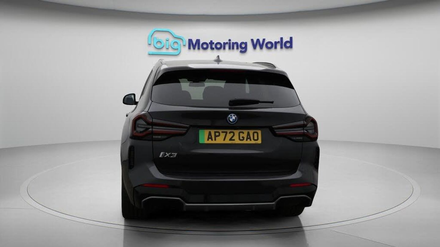 FREE £750 towards your finance-Our BMW iX3 comes with optional extras worth £2,350. Specification includes a range of fantastic features including FREE £750 towards your finance Deposit, Sun Protection Pack, Head up Display, 20'' Alloy Wheels, Leather Seats, Apple CarPlay, Adaptive Cruise Control, Electric Seats, Harman Kardon Speakers, Electric Panoramic Roof Specification information is supplied by CAPHPI and may vary to the actual car. This data does not form any part of a buying contact. Please check specification prior to purchase in-store. The MOT is valid until September 2026, visit bigmotoringworld.co.uk for more photos, a 360 tour, service history and a free HPI report.Were BIG on peace of mind and this Grey BMW iX3 has completed our comprehensive 200 point inspection and passed all checks. Its ready for you to drive away with immediate collection in-store. We include a 90-day warranty as standard plus an option to extend for up to 3 years.Reserve this car exclusively for you, safely and securely at bigmotoringworld.co.uk, with a fully refundable £99 deposit. Test drive before you buy, with no commitment, no hassle and a completely haggle free experience. Still searching and want to see thousands more cars? We are BIG on choice with over 8000 cars to choose from.Visit our award winning web site bigmotoringworld.co.uk.Were Big Motoring World and were BIG on what matters to you.
