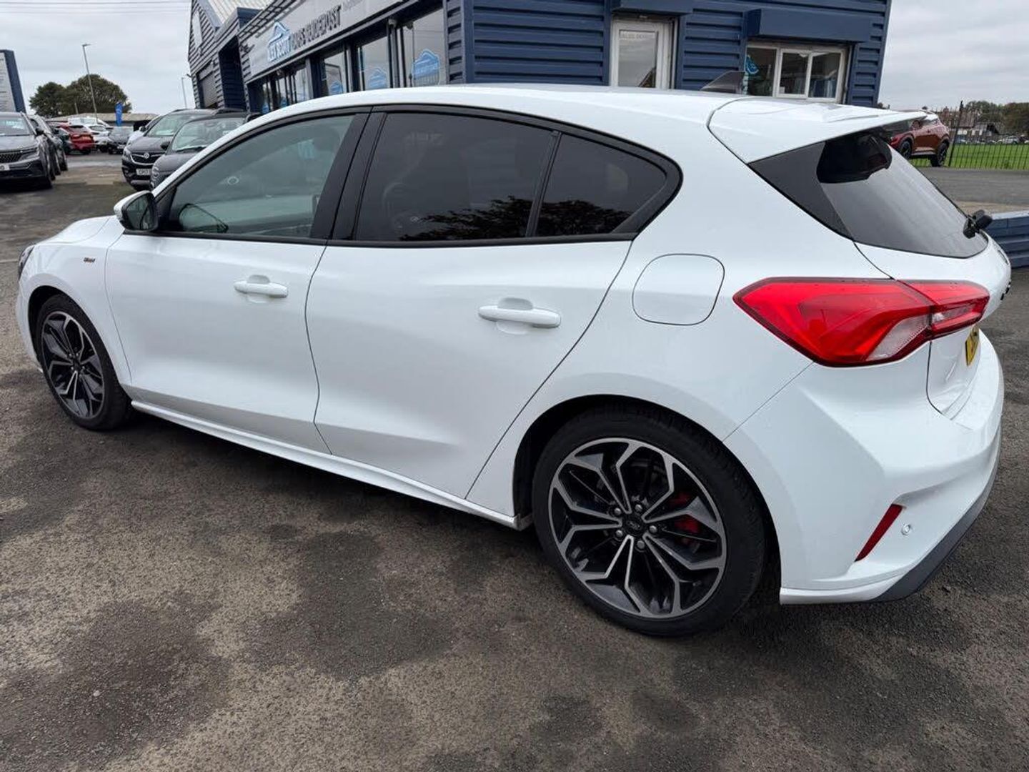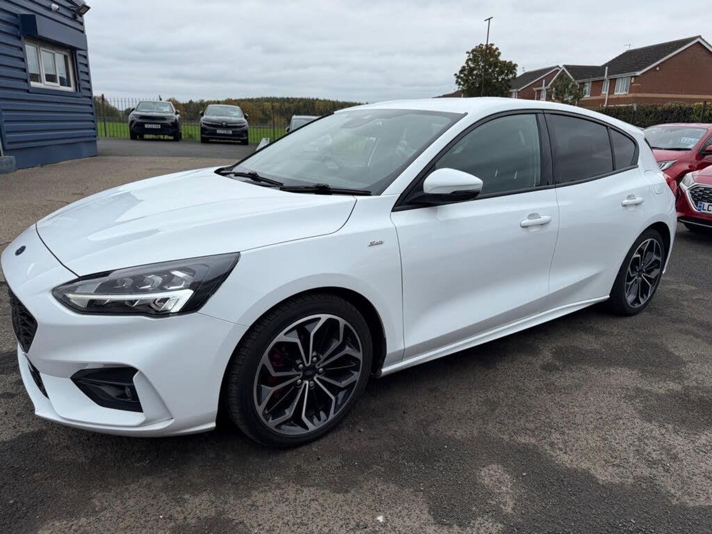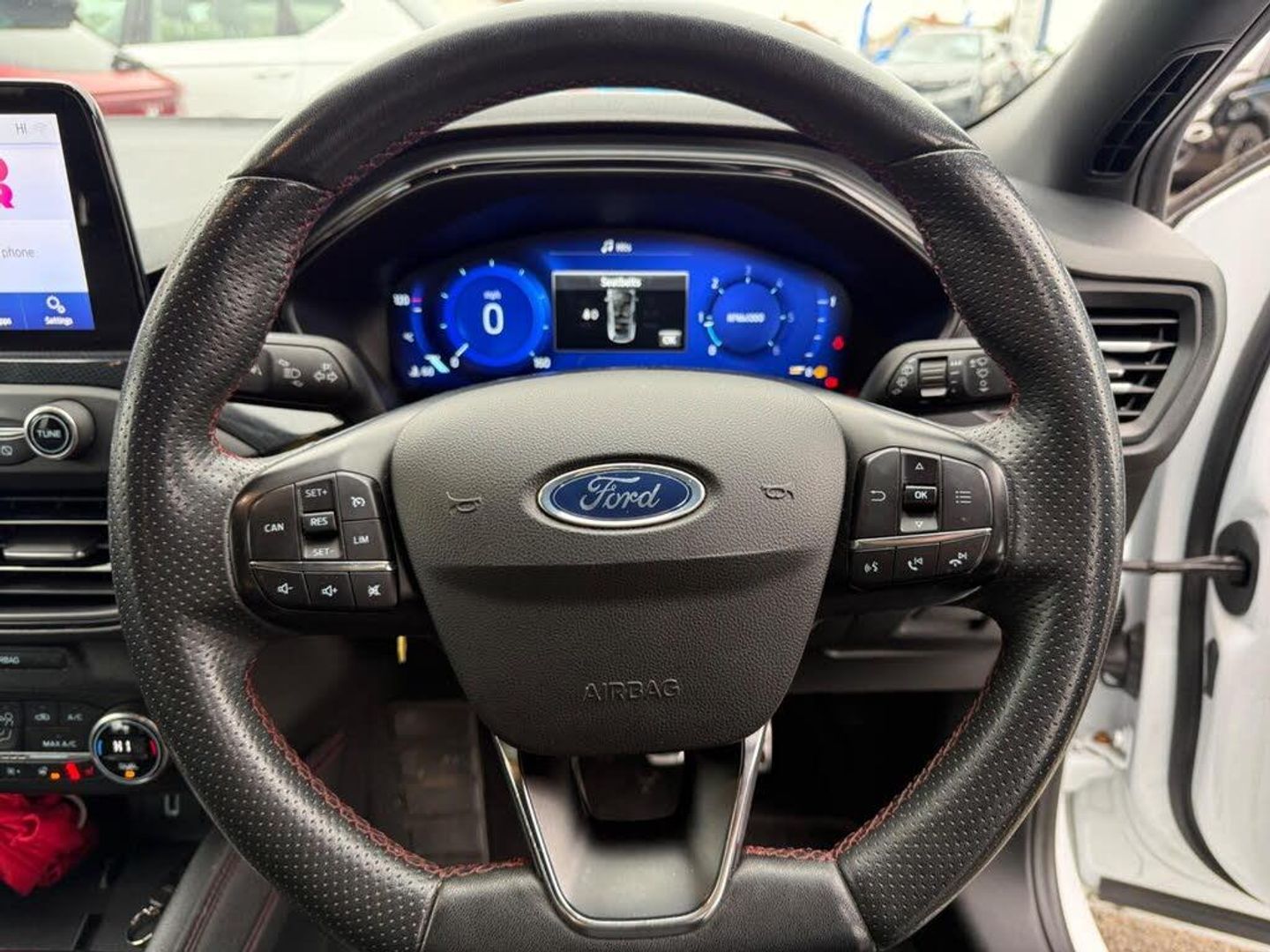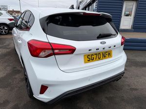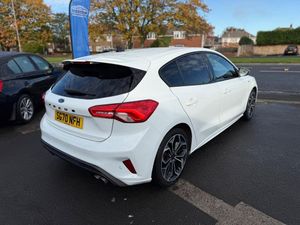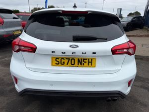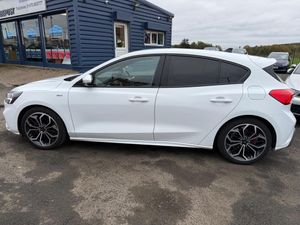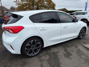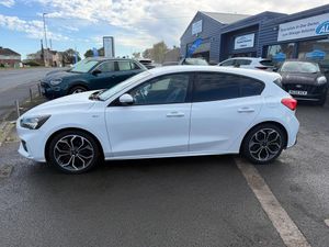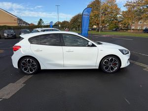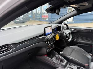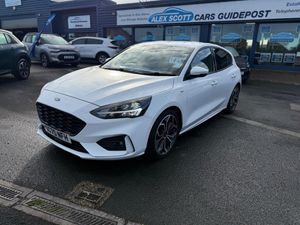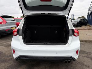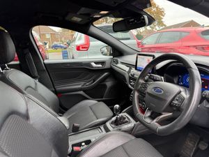 18in Alloy Wheels - 5x2 Spoke - ST-Line Matt Black Machined Black, 4.2in TFT Instrument Cluster Screen, 6-Way Power Adjustment Driver Seat, 8in Touchscreen Colour Display, Airbags - Driver and Front Passenger, Airbags - Front Side Impact, Airbags - Front and Rear Side Curtain, Alloy Finish Pedals, Anti-Lock Braking System - ABS with Electronic Brake Force Distribution - EBD, Automatic Dimming Rear View Mirror, Body Colour Bumpers, Centre Console with Armrest, Courtesy Light - Front and Rear Passengers - Overhead Halogen and Load Compartment, Cruise Control with Speed Limiter, DEATC - Dual-Zone Electronic Automatic Temperature Control, Door Handles - Body Colour, Drivers Seat Lumbar Adjust, EPAS - Electric Power Assisted Steering, Electric Parking Brake, Emergency Brake Warning, Enhanced Electronic Stability Control - ESC with Traction Control - Emergency Brake Assist - EBA - Hill Start Assist - HSA, Ford Easy Fuel - Capless Refuelling System, Ford Eco Mode - Driver Information System, Ford SYNC3 DAB Navigation System, FordPass Connect, Front Passenger Airbag Deactivation Switch, Front Seat - Drivers Manual Height and Fore-Aft Adjustment, Front Seat - Passengers Manual Fore-Aft Adjustment, Front Seats - Sports Style, Front Suspension - Independent with MacPherson Struts and Anti-Roll Bar, Front and Rear Floor Mats with Red Stitching, Front and Rear Seatbelt Minder, Gear Knob - Aluminium, Headlights - Halogen, Headliner - Black Woven, Heated Front Seats, IPS - Intelligent Protection System, Intelligent Speed Assistance, LED Daytime Running Lights, LED Front Fog Lights with Cornering Function, Lane Keeping Aid with Lane Departure Warning, Leather-Trimmed Handbrake, Locking Wheel Nuts, MyKey, Parking Sensor - Front and Rear, Passenger Seat Manual Height and Lumbar Adjust, Polished Twin Tailpipe, Post Collision Braking, Power Folding Door Mirrors with Puddle Lights, Pre-Collision Assist with Autonomous Emergency Braking and Pedestrian-Cyclist Detection, Pre-Collision Assist with Pedestrian Detection, Quickclear Heated Windscreen, Rain Sensitive Windshield Wipers, Rear Centre Headrest, Rear Privacy Glass, Rear Spoiler - Body Colour - Large, Red Brake Calipers, Remote Central Locking and Engine Immobiliser, ST Line Stainless Steel Scuff Plates, Seats - ISOFIX Mounting Provision for Child Seats, Selectable Drive Mode, Soft Console Knee Pads with Red Stitching, Spare Wheel - Mini Steel, Sports Tuned Suspension, Steering Column - Rake and Reach Adjustment, Steering Wheel - 3-Spoke Flat Bottom - Leather Trimmed with Red Stitching, Thatcham Category 1 Alarm, Trip Computer, Tyre Pressure Monitoring System, Unique ST-Line Upper and Lower Grille and Full Bodystyling Kit and ST-Line Wing Badges, Windows - Electrically Operated Front and Rear with One Touch Opening and Closing, Wipers - Standard with 6 Speed Interval Settings