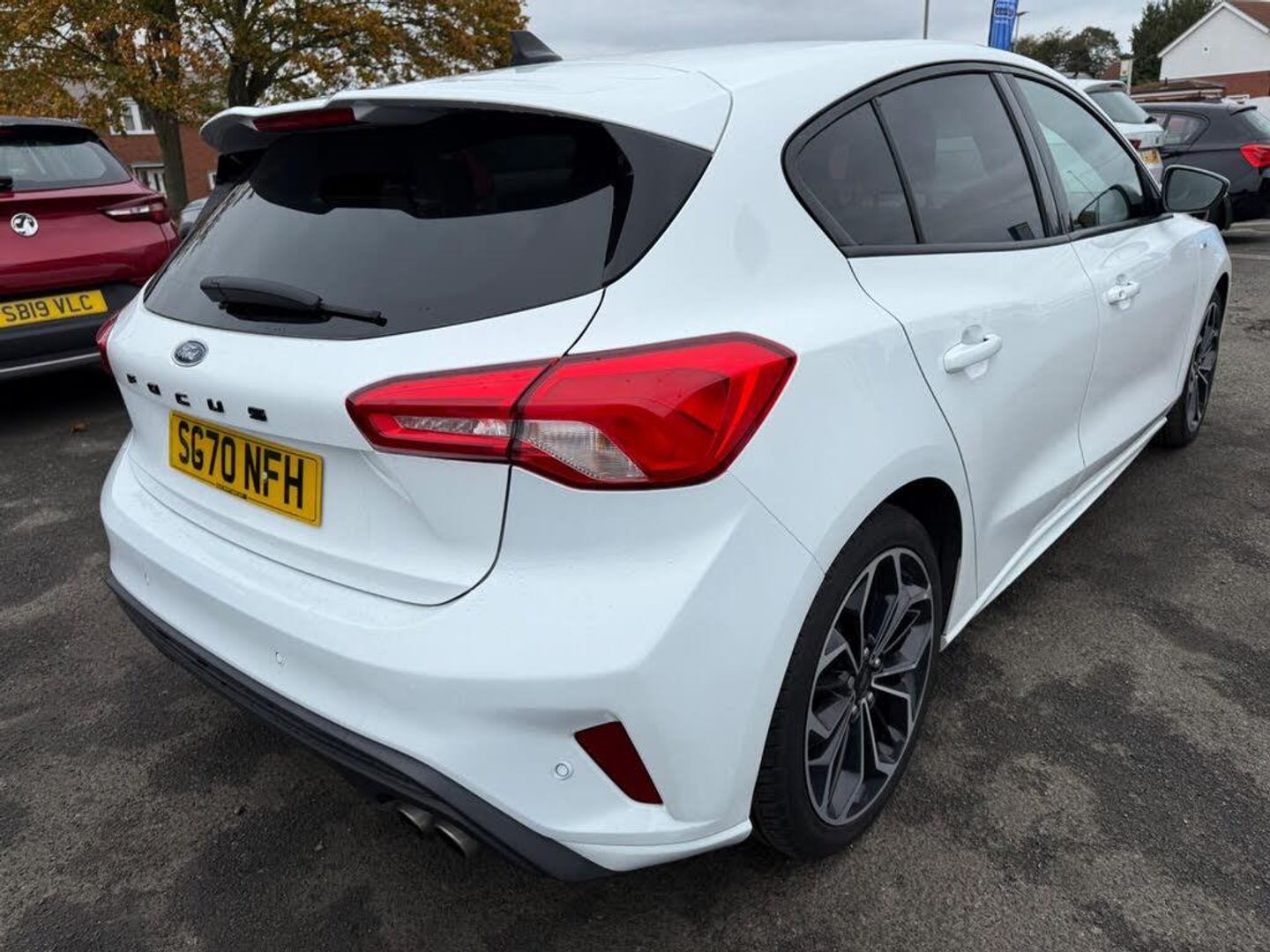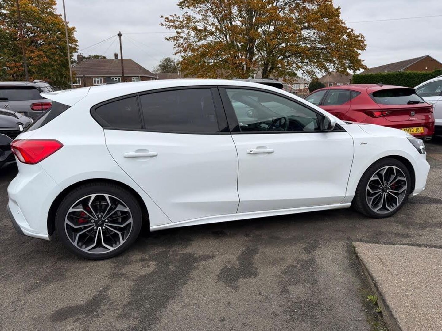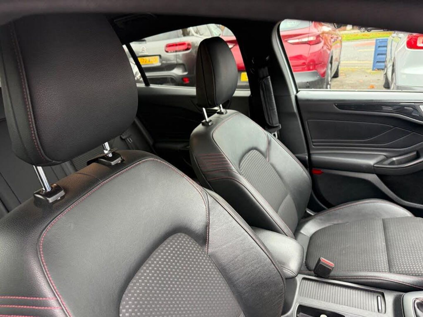 18in Alloy Wheels - 5x2 Spoke - ST-Line Matt Black Machined Black, 4.2in TFT Instrument Cluster Screen, 6-Way Power Adjustment Driver Seat, 8in Touchscreen Colour Display, Airbags - Driver and Front Passenger, Airbags - Front Side Impact, Airbags - Front and Rear Side Curtain, Alloy Finish Pedals, Anti-Lock Braking System - ABS with Electronic Brake Force Distribution - EBD, Automatic Dimming Rear View Mirror, Body Colour Bumpers, Centre Console with Armrest, Courtesy Light - Front and Rear Passengers - Overhead Halogen and Load Compartment, Cruise Control with Speed Limiter, DEATC - Dual-Zone Electronic Automatic Temperature Control, Door Handles - Body Colour, Drivers Seat Lumbar Adjust, EPAS - Electric Power Assisted Steering, Electric Parking Brake, Emergency Brake Warning, Enhanced Electronic Stability Control - ESC with Traction Control - Emergency Brake Assist - EBA - Hill Start Assist - HSA, Ford Easy Fuel - Capless Refuelling System, Ford Eco Mode - Driver Information System, Ford SYNC3 DAB Navigation System, FordPass Connect, Front Passenger Airbag Deactivation Switch, Front Seat - Drivers Manual Height and Fore-Aft Adjustment, Front Seat - Passengers Manual Fore-Aft Adjustment, Front Seats - Sports Style, Front Suspension - Independent with MacPherson Struts and Anti-Roll Bar, Front and Rear Floor Mats with Red Stitching, Front and Rear Seatbelt Minder, Gear Knob - Aluminium, Headlights - Halogen, Headliner - Black Woven, Heated Front Seats, IPS - Intelligent Protection System, Intelligent Speed Assistance, LED Daytime Running Lights, LED Front Fog Lights with Cornering Function, Lane Keeping Aid with Lane Departure Warning, Leather-Trimmed Handbrake, Locking Wheel Nuts, MyKey, Parking Sensor - Front and Rear, Passenger Seat Manual Height and Lumbar Adjust, Polished Twin Tailpipe, Post Collision Braking, Power Folding Door Mirrors with Puddle Lights, Pre-Collision Assist with Autonomous Emergency Braking and Pedestrian-Cyclist Detection, Pre-Collision Assist with Pedestrian Detection, Quickclear Heated Windscreen, Rain Sensitive Windshield Wipers, Rear Centre Headrest, Rear Privacy Glass, Rear Spoiler - Body Colour - Large, Red Brake Calipers, Remote Central Locking and Engine Immobiliser, ST Line Stainless Steel Scuff Plates, Seats - ISOFIX Mounting Provision for Child Seats, Selectable Drive Mode, Soft Console Knee Pads with Red Stitching, Spare Wheel - Mini Steel, Sports Tuned Suspension, Steering Column - Rake and Reach Adjustment, Steering Wheel - 3-Spoke Flat Bottom - Leather Trimmed with Red Stitching, Thatcham Category 1 Alarm, Trip Computer, Tyre Pressure Monitoring System, Unique ST-Line Upper and Lower Grille and Full Bodystyling Kit and ST-Line Wing Badges, Windows - Electrically Operated Front and Rear with One Touch Opening and Closing, Wipers - Standard with 6 Speed Interval Settings