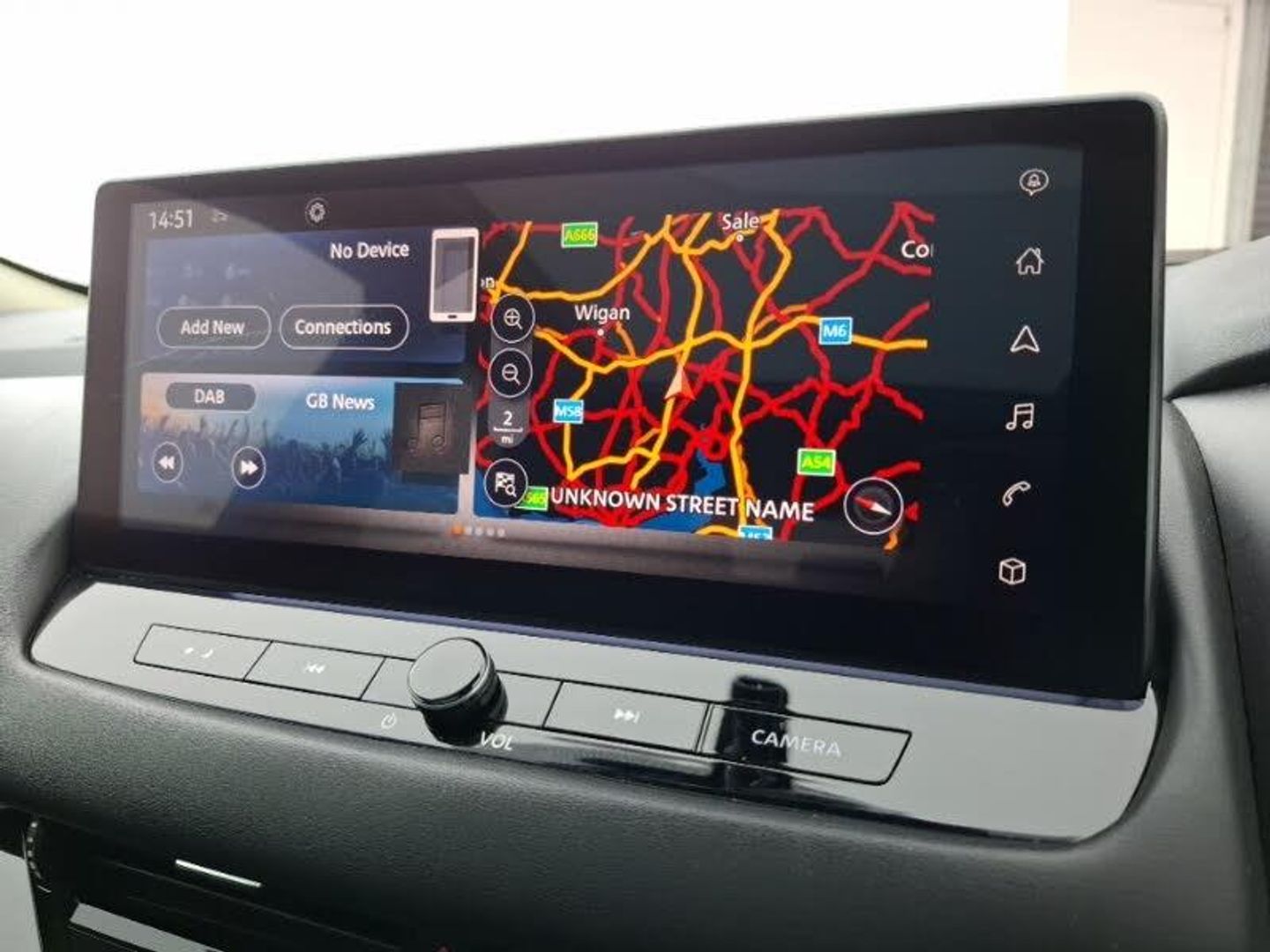 Adaptive cruise control, Apple CarPlay, LED daytime running lights, LED Headlights, Rear parking sensor, Rear view camera, Telematics - notifications and connectivity services, Traffic sign recognition with legal speed adjustment, Nissan connect navigation, Nissan connect 12.3 inch touchscreen infotainment system, 18" Diamond cut alloy wheels