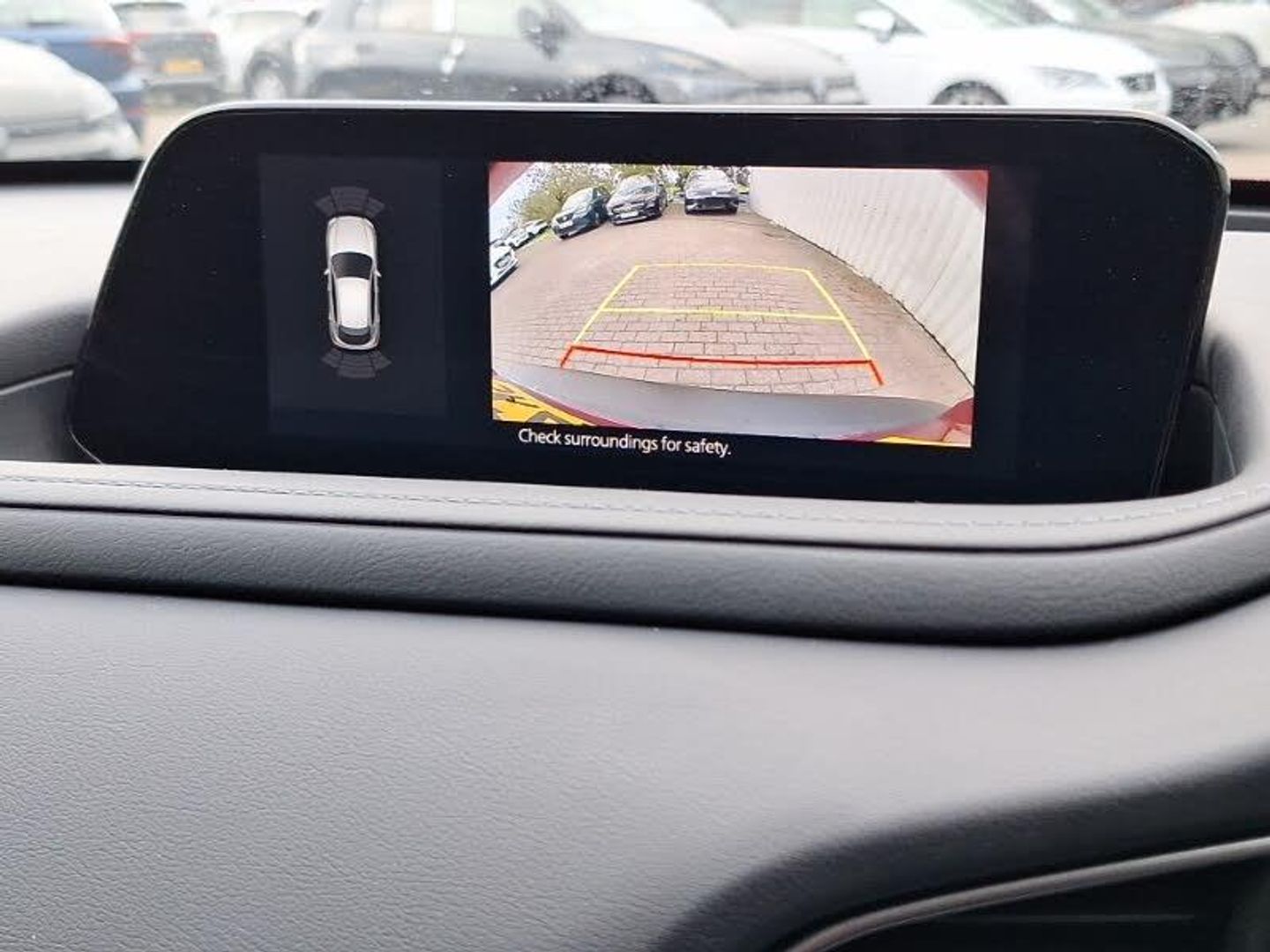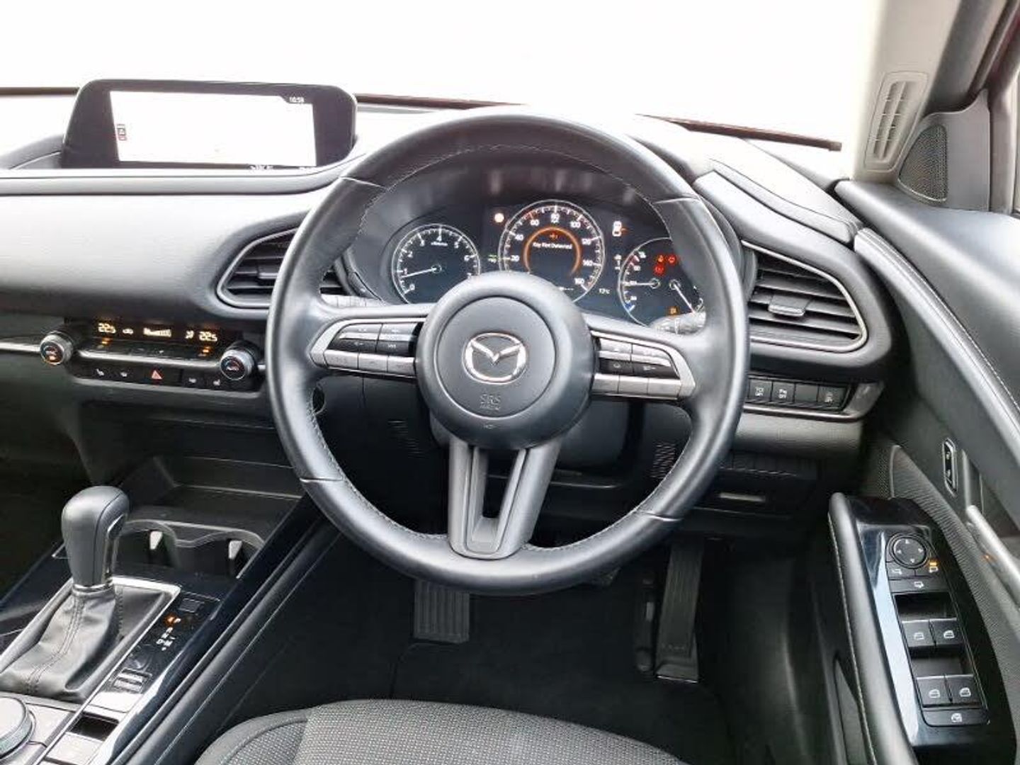Apple car play/Android Auto, Integrated Mazda navigation system, 7" TFT Colour driver instrument panel display, 8.8" Colour centre touch screen display with Mazda Connect infotainment, Adaptive cruise control (Mazda radar cruise control) features stop and go, Blind spot monitoring with rear cross traffic alert, Emergency stop signalling system, Engine start/stop button, Front and rear parking sensors, Intelligent speed assist, Lane keep assist system (LAS) with Lane departure warning system (LDWS), Reversing camera, Traffic sign recognition, Multimedia Commander including separate volume dial, Steering wheel mounted audio/bluetooth controls, 2 USB charging ports in front inner central armrest, Auto dimming rear view mirror, Auto headlight levelling, Dusk sensing headlights, LED headlights with halogen daytime running lights and high beam control, Rain sensing front wipers with adjustable speed and intermittent wipe, Dual zone climate control air conditioning with rear air vents, Hill launch assist, Mild Hybrid system with regenerative braking, Tyre pressure monitoring system (TPMS), Smart keyless entry, Remote central locking with deadlocking and automatic door lock when driving, 16" Grey alloy wheels