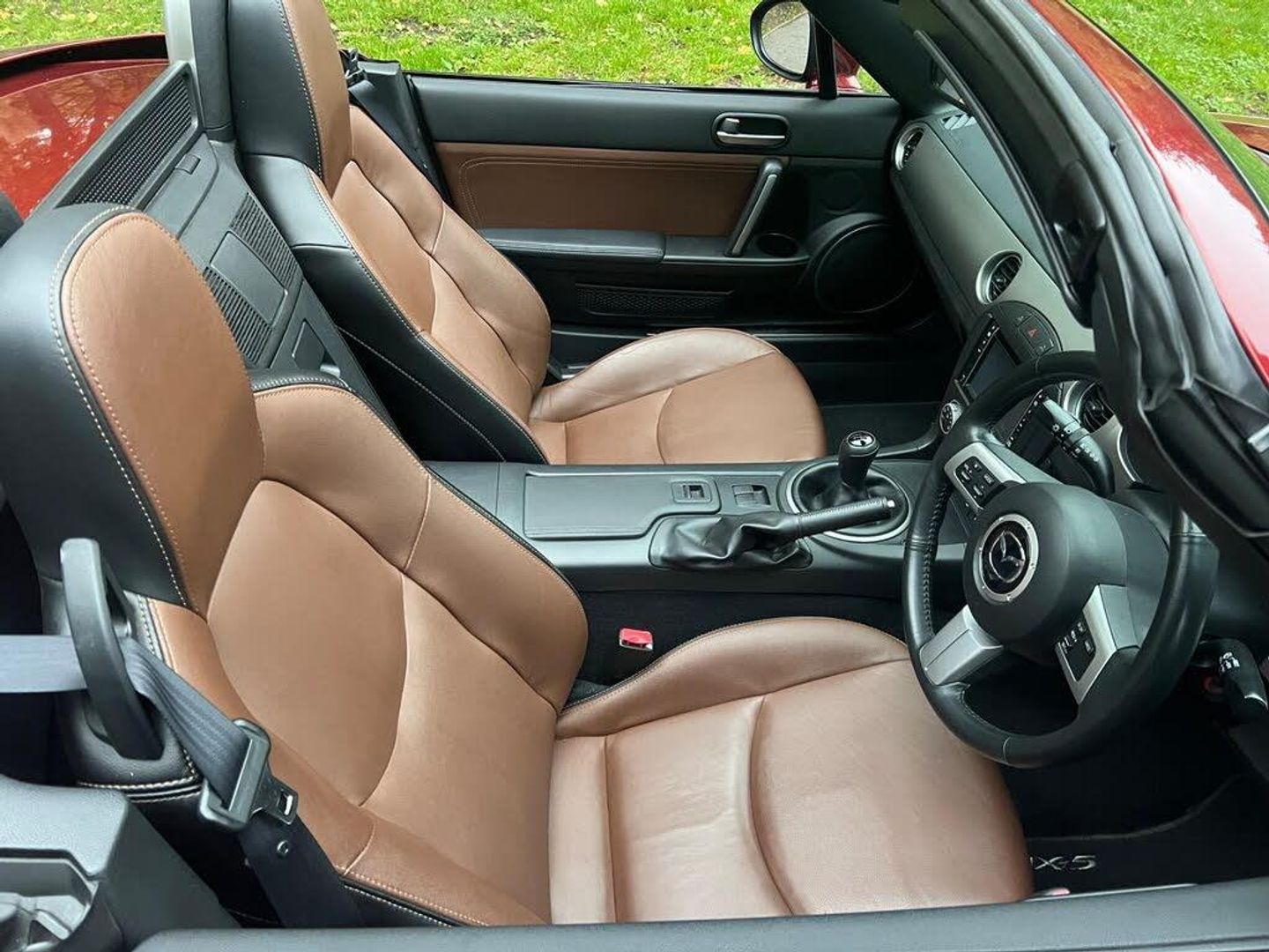 17in Alloy Wheels, ABS - Anti Lock Braking System, AUX Socket, Air Conditioning - Climate Control, Airbags - Driver, Airbags - Front Passenger, Airbags - Front Passenger Deactivation System, Audio Systems - AM-FM Radio-CD Player, Bumpers - Body Coloured, Central Locking - Remote with Deadlocking, Contrasting Stitching, DSC - Dynamic Stability Control, Door Handles - Body Coloured, Door Handles - Chrome Finish, Door Mirrors - Electrically Adjustable - Heated - Body Coloured, EBA - Emergency Brake Assist, EBD - Electronic Brakeforce Distribution, Electric Windows - Front, Exhaust Tailpipes - Twin, Front Fog Lights, Gear Knob - Leather, Handbrake - Leather Wrapped, Headlights - Halogen, Hood - Black Premium Cloth, Immobiliser, Integrated Bluetooth System, Mazda Advanced Impact Distribution and Absorption System - MAIDAS, Pedals - Alloy, Pollen Filter, Power Assisted Steering, Remote Boot Release, SD Card Based Map - 4GB, Scuff Plates - Stainless Steel, Seatback Pocket - Passenger Side, Seats - Drivers Dial Reclining and Height Adjustment, Seats - Front Heated, Side Airbags, Silver Deco Panel with Red Vents, Silver Fashion Bar Covers, Speakers x6, Steering Wheel - Leather, Steering Wheel - Mounted Remote Audio Controls, Strut Brace, TCS - Traction Control System, Thatcham Category 1 Alarm and Immobiliser, TomTom Satellite Navigation, Touch Screen - 5.8in Colour, Trip Computer, USB and AUX Connection, Windblocker - Standard, iPod Connectivity, Leather - Tan