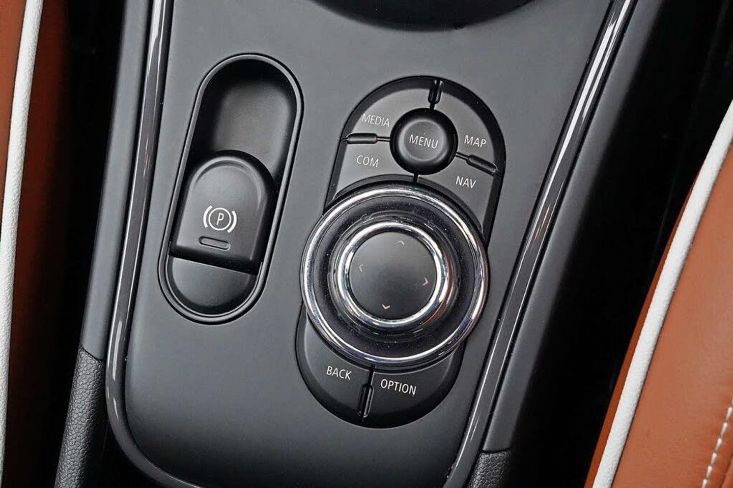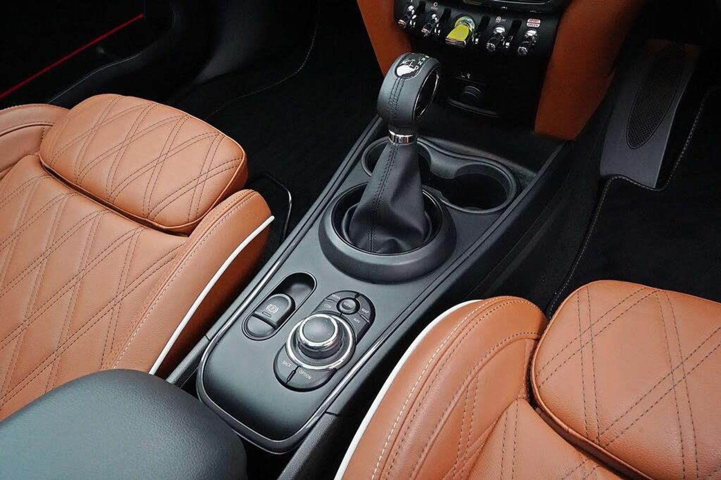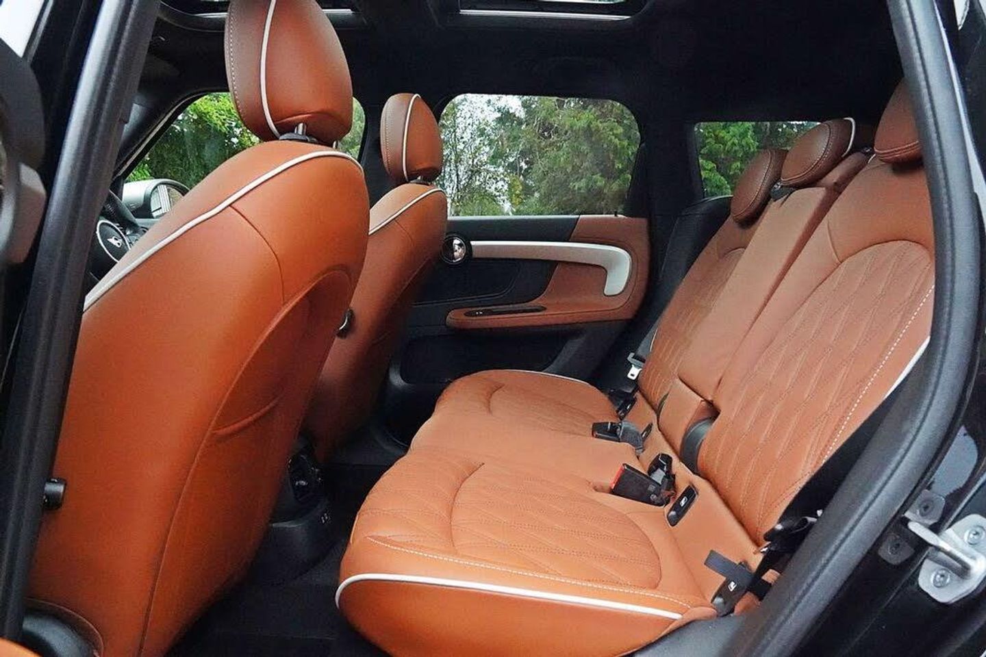 Centre Armrest in Rear, Chester Leather - Malt Brown, Darkened Rear Glass, MINI ALL4 Exterior Styling, Midnight Black II, Premium Plus Pack