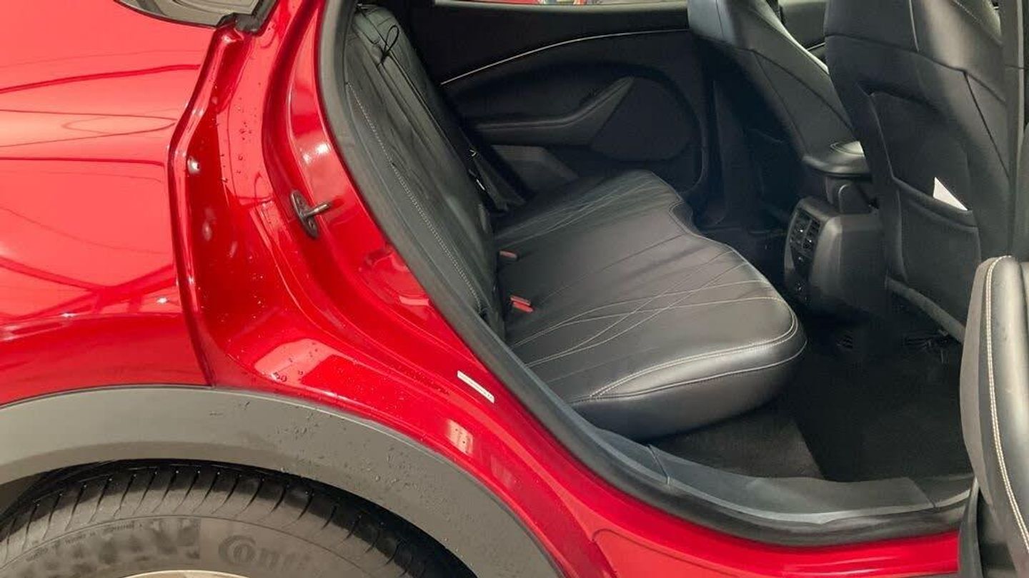 10.2in Full Digital Cluster and 15.5in Central Touch Screen, 18in Alloy Wheels - 5-Spoke - Silver, 6-Way Manual Driver and Passenger Seats, ABS - Anti-lock Braking System, Adaptive Cruise Control with Stop and Go and Lane-Centering, Air Conditioning - Dual Zone Electronic Automatic Temperature Control, Airbags - Driver and Front Passenger, Applink Remote Control System, BLIS - Blind Spot Information System with Cross Traffic Alert, Body Colour Bumpers, Body Colour Heated Mirrors with Puddle Light Mustang Logo Projection, Brace Front Grille Design, E-Latch Keyless Entry System including B-Pillar Keypad Access, Electric Windows - Front, FordPass Connect Embedded Modem, Front Trunk, Front and Rear Parking Sensors, Heated Driver and Passenger Seats, Heated Steering Wheel, High Power Charging Cable, LED Mustang Signature Taillights, LED Reflector Headlamps, Lane Keeping Aid with Lane Departure Warning, Next Generation SYNC with Connected Navigation and Natural Voice Search, One Pedal Drive, Power Steering, Pre-Collision Assist, Privacy Glass, Quickclear Heated Windscreen, Rear View Camera, Selectable Drive Modes - Active-Whisper-Untamed, Side Cladding and Wheel Arches in Black, Standard Home Charging Cable - 3-Pin Domestic Socket 230V, Thatcham Category 1 Alarm, Wireless Device Charging Pad, Rapid Red, Sensico - Black Onyx with Grey Stitching