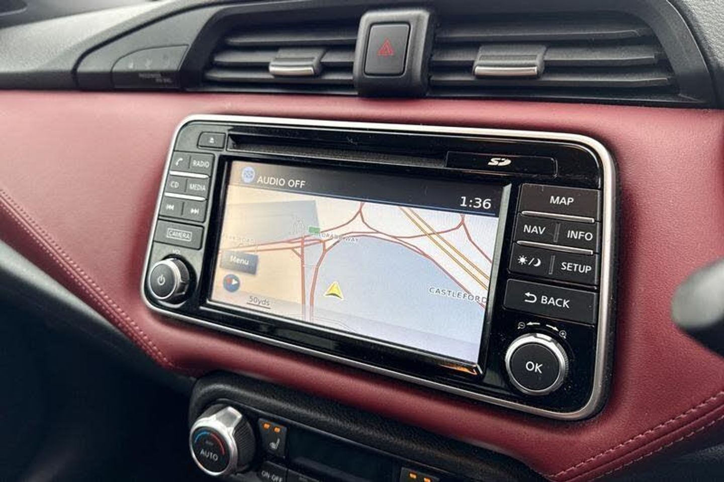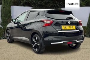 5 TFT driver information centre, Adjustable speed limiter, Bluetooth system, Cruise control, Lane departure warning system, Nissan connect sat nav system, Outside temperature gauge, Rear parking sensors and rear view camera, Smartphone integration with Apple CarPlay and Android auto, Stop/start system, Tomtom connected services, Traffic sign recognition, Trip computer, Auto dimming rear view mirror, Automatic activation of hazard warning lights, Automatic headlights, Body coloured door handle inserts, Electric folding door mirrors, Electrically adjustable door mirrors, Front and rear electric windows, Front fog lights, Heated door mirrors, High beam assist, High mounted stop lamp, LED daytime running lights, LED indicators in door mirrors, Rain sensor windscreen wipers, Rear privacy glass, Rear roof spoiler, Rear wiper, 12V power point front, 3 cupholders, 3 height adjustable rear headrests, 60/40 split folding rear seat, Automatic air conditioning, Boot carpet, Boot compartment cover, Boot light, Chrome interior door handles, Driver's seat manual height adjust, Driver/passenger sunvisors and vanity mirrors, Front and rear door pockets with bottle holders, Front console storage box, Gear shift indicator, Height adjustable front headrests, Height adjustable steering wheel, Isofix front passenger and rear seat preparation, Leather handbrake, Leather wrapped gear shift knob, Leather wrapped steering wheel, LED ambient lighting, Luggage compartment lighting, Map reading lamp, Parcel shelf, Passenger seat back pocket, Reclining front seats, Satin silver accents on steering wheel, Satin silver air vents, Silver gearknob, Synthetic leather instrumental panel inserts, ABS+EBD+Brake assist, Crash sensor, Driver/Front Passenger airbags, ESP + ASR traction control + CSV understeer control, Forward emergency braking, Front and rear curtain airbags, Front side airbags, Height adjustable front seatbelts with pre-tensioners and load limiters, Hill start assist, Intelligent emergency braking with pedestrian recognition, Passenger airbag deactivation system, Rear seatbelts with pre-tensioners and load limiters, Seatbelt warning, Three 3 point rear seatbelts, Tyre pressure monitoring system, Warning triangle and first aid kit