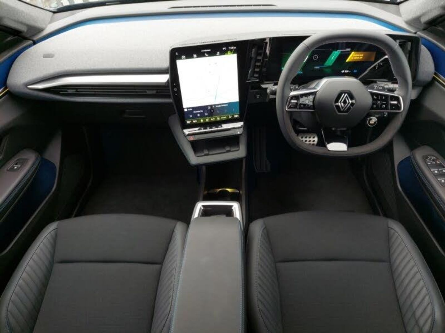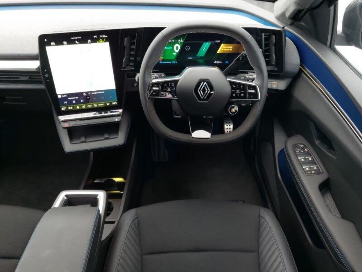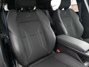 Wireless smartphone replication and integration via iOS carplay and google, wifi and usb, Front and rear park assist, Intelligent adaptive cruise control, Rear parking camera, 20" Speedway diamond cut alloy wheels, Wireless phone charger, 12" openR multimedia screen, Automatic headlights, 12.3" driver information display cluster, Active driver assist, Autonomous driving level 2: adaptive cruise control with speed limiter and lane centering, Blind spot recognition and intervention, Connected services including over the air updates, Driver attention alert system, e-Call (emergency call), Ecomode function, Electric power boot opening, Emergency lane keep assist including solid line, oncoming traffic and road edge detection, Google built-in: maps, assistant and playstore, Lane change warning, Lane departure warning, Multisense: customisable driving modes (personalised, sport, eco, comfort), PAS, Rear cross traffic alert with rear automatic braking system, Traffic sign recognition with over speed warning, Mode 3 home wallbox cable, DC 150 and AC 22, Arkamys audio system with 6 speakers, 2 front and 2 rear USB-C ports, 3rd brake light, Auto-tilting and folding wing mirrors with puddle lamp, Automatic daytime running lights, Automatic high/low beam, Automatic windscreen wipers with rain sensor and sensitivity setting, e Flush door handles, Electric one-touch power front and rear windows, Electrically folding wing mirrors, Esprit Alpine styling (badge), Flush roof bars, Frameless auto dimming rear view mirror with brightness adapt, Full led headlights with adaptive led front and rear fog lights (afs), Rear side wing doors, Rear window defroster, Rear wiper, Satin grey detailing, Shark fin antenna, Tinted rear windows, Twin reversing lights, Two zone automatic climate control with humidity senor and air recycling, Specific heated sports seats with blue stitching, Single front passenger seat, Paddle shift levers for regenerative braking, Manual height and depth adjustable steering wheel, Manual front seats with height adjustment, ISOFIX child seat fixing points on rear outermost seats, Ingenious rear armrest, High centre console with sliding armrest and storage, Heated steering wheel, Heat pump, Front and rear headrests, Fabric/recycled mesh upholstery, Esprit alpine interior (blue carpet, blue door panel inserts, blue detailing in storage compartments), Electrically adjustable lumbar support for driver, Ambient lighting, 3 seat bench in 2nd row, Tyre pressure warning light, Side airbags, Rear window and door child locking function, Rear active emergency braking system, Occupant safe exit, Hill start assist, Front and rear seatbelt reminder, Emergency brake assist, Electronic Stability Control (ESC), Driver and front passenger airbags, Distance warning alert, Approaching vehicle sound for pedestrians, Anti-lock braking system (ABS), Adjustable driver and passenger safety seat belts, Active emergency braking system - Urban, pedestrian/cyclist with junction function, 3x3 point rear seat belts, Super locking system, Hands free key card with keyless entry, Soft fabric dashboard, Tyre inflation kit