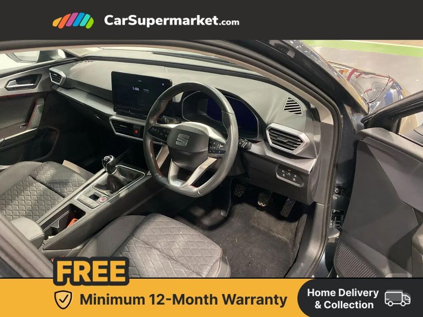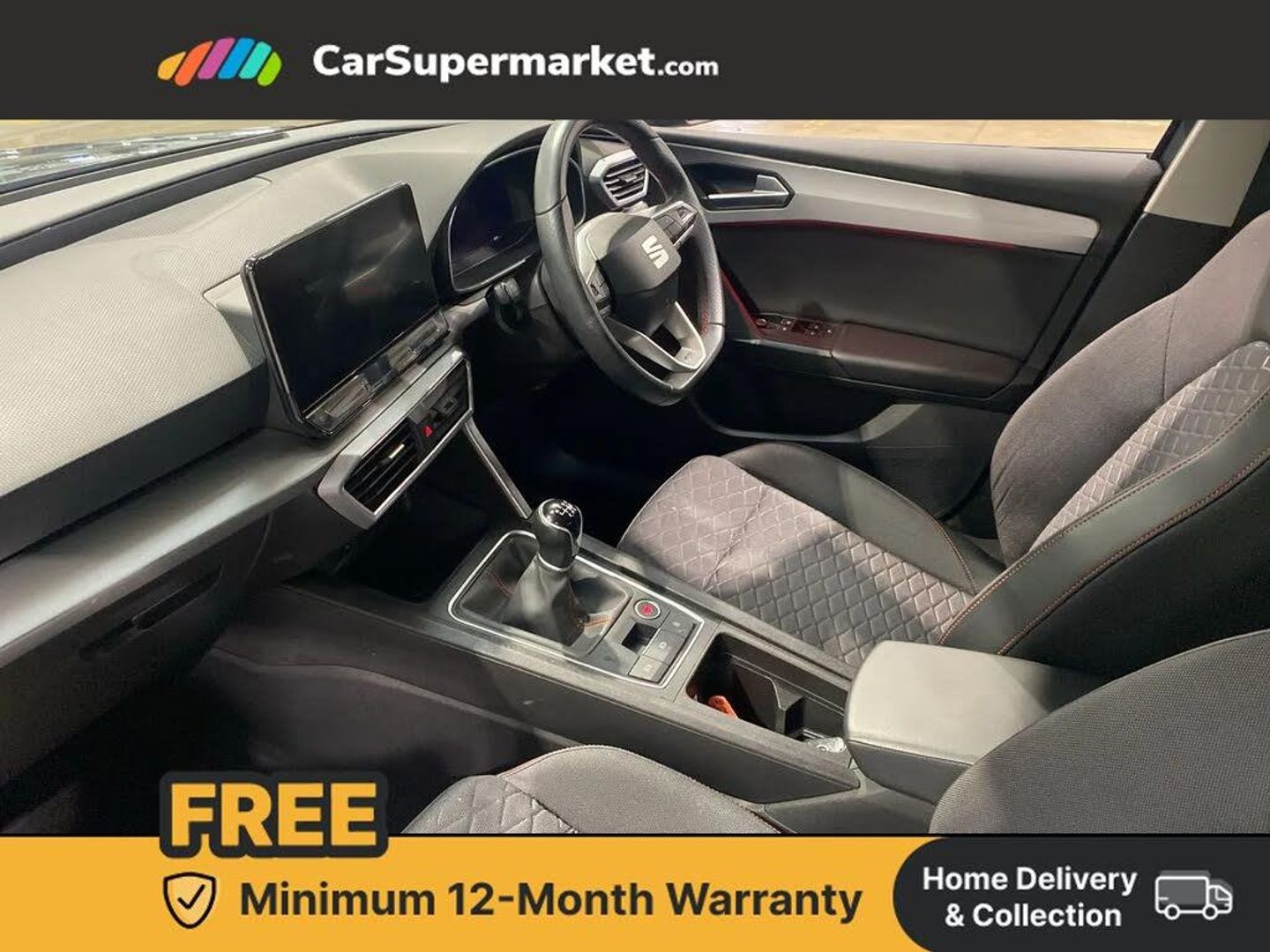 Digital cockpit,Four x USB Type C ports,Front assist with forward collision warning braking reaction to vehicles, pedestrians and cyclists,Full link smartphone integration with Mirror Link, wireless Apple CarPlay and wired Google Android Auto,Lane assist,Lockable tailgate,Park assist (inc front/rear parking sensors),Power assisted speed sensitive electro-mechanical steering,RPM, trip computer, outside temp gauge, instrument light brightness, low fuel warning light, lights on reminder, gearshift indicator,SEAT drive profile with 4 modes (Eco/Normal/Sport/Individual), throttle response,Service interval indicator,Start/stop system with regenerative braking,Sports suspension,XDS electronic differential lock and dynamic traction support,7 speakers,Auxiliary input socket,Auto dimming rear view mirror,Body colour door handles,Body coloured bumpers,Cosmo grey exterior mirrors with integrated LED indicators,Dark tinted rear windows,Electric front/rear windows,Electrically adjustable, heated and folding door mirrors,FR sports bumper,Illuminated front door sill,LED front fog lamps with cornering function,LED headlights and tail lights with dynamic turn signals, welcome light silhouette from exterior mirrors and dynamic headlight range control,LED rear fog lamp,Rain sensing wipers,Rear wash/wipe,Separate daytime running light with automatic headlight control and coming home feature,12v power point in centre console,60/40 split rear bench seat with armrest,Ambient lighting with glovebox, footwell and single monocolour,Cloth upholstery,Driver/passenger manual seat height adjustment,Dust/pollen filter,Flat bottomed perforated leather steering wheel with red stitching and FR logo and leather gear stick,Folding boot cover,Front and rear height adjustable headrests,Front and rear reading lights X 4,Front centre armrest,Front seatback storage pockets,Height/reach adjust steering wheel,ISOFIX points in outer rear seats with top tether anchorage points,Luggage tie-down hooks,Lumbar adjustment for front seats,Sunvisors with covered illuminated mirror,Three zone climate control,Media system plus with navigation - Leon,3 point seatbelts on all rear seats,ABS,Brake control system - ESC and brake booster,Child proof door locks,Driver and front passenger airbags with front passenger airbag de-activation, front side and curtain airbags,Electronic parking brake,Extended safety system - seat belt tensioner, window closure and hazard lights,Hill hold control,Rear disc brakes,Seat belt reminder for front and rear seats,Tiredness recognition system, driver alert system,Tyre pressure monitoring system,Anti theft alarm system with interior monitoring in cab, backup horn and towing protection,KESSY Go (Keyless start),Locking wheel bolts,Wireless phone charging,Chrome interior detailing,17" Dynamic Bi-spoke alloy wheels with 91W tyres,Tool kit