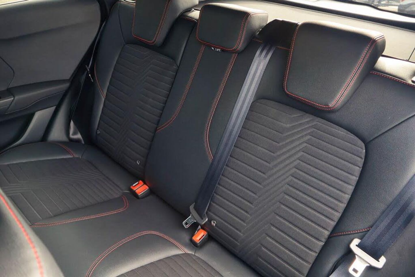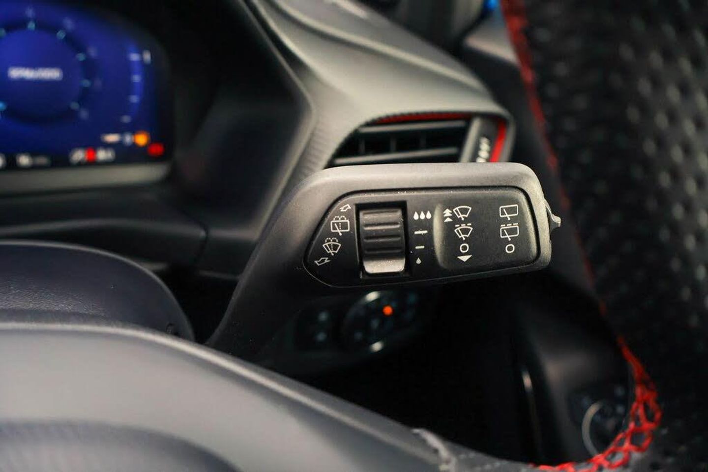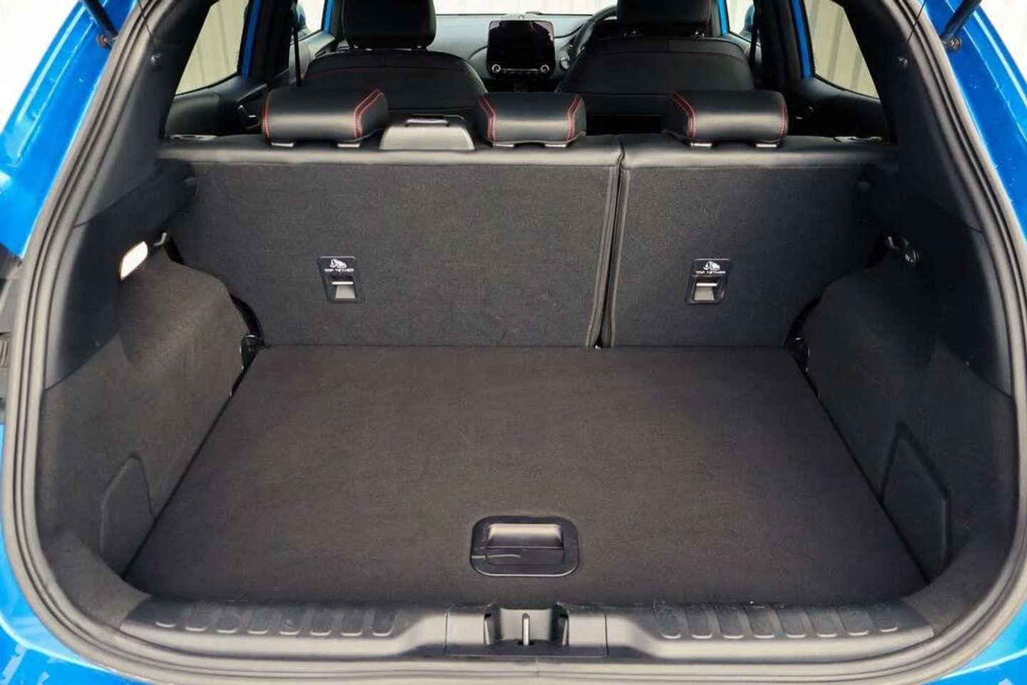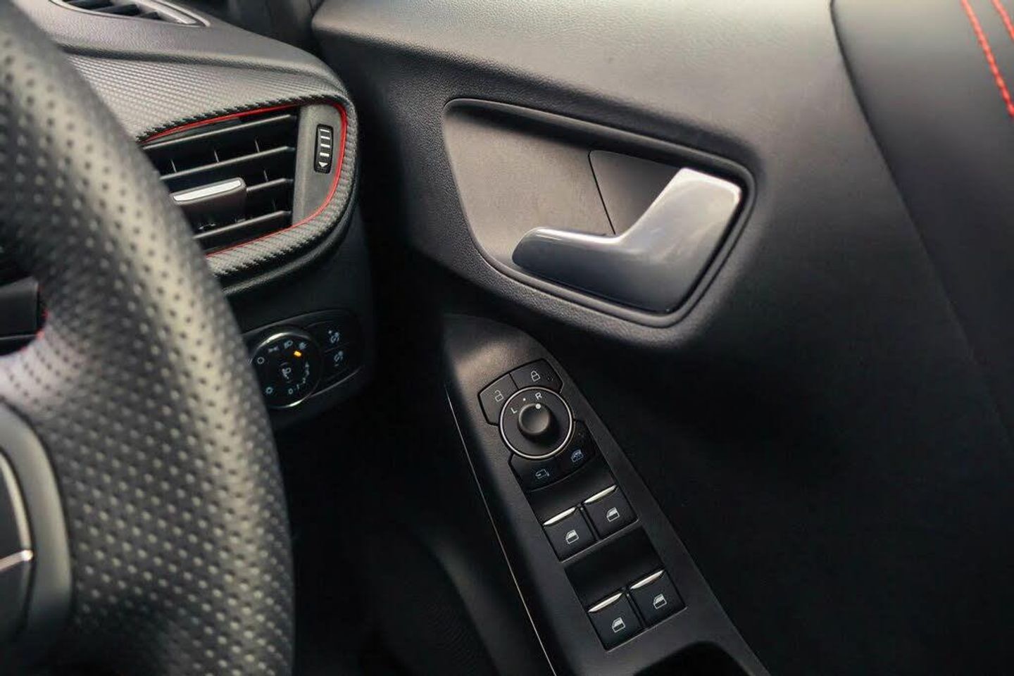 Driver impairment monitor, Emergency call service, Ford easy fuel, Full digital 12.3" instrument cluster, Lane keeping aid with lane departure warning, Power assist steering, Power start button, Rear parking sensor, Selectable drive modes(Normal, sport, Eco, trail, slippery), Speed sign recognition, Automatic headlights with auto high beam, Automatic rain sensing wipers, Front fog lamps, LED daytime running lights, LED rear lamps, Power foldable heated door mirrors with puddle lamps, Privacy glass to side rear windows and tailgate glass, Quickclear heated windscreen, Rear side wing doors, Rear wiper, ST-Line body styling kit with unique grille, Third brake light, 3 seat bench in 2nd row, Centre console with armrest and stowage, Ford megabox extended bootspace, Front and rear head restraints, Front floor mats, Manual 4 way driver seat adjust with lumbar adjustment, Manual 4 way passenger seat with lumbar seat adjustment, Sensico partial premium upholstery, Single front passenger seat, ST-Line flat bottomed sensico leather steering wheel with leather handbrake and aluminium gear knob, Wireless charging pad with electronic air temperature control (EATC), Thatcham alarm, Partial Premium Sensico - Black with Red Stitching