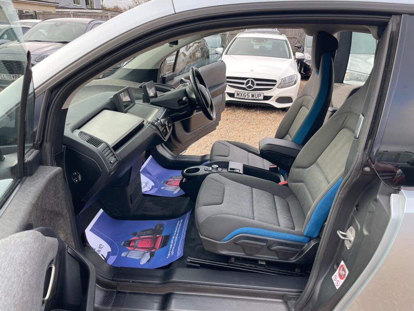 12V Power Socket - Centre Console, 12V Power Socket - Luggage Compartment, 19in Alloy Wheels - i Light Streamline Star-Spoke Style - 427, 5.7in Colour TFT Display - Instrument Cluster, 6.5in Colour Display Screen, ABS - Anti Lock Braking System, AC Fast Charge Preparation, ADB Sport - Active Differential Brake, ASC - Automatic Stability Control, Air Conditioning - Automatic - Single Zone, Airbags - Curtain, Airbags - Driver, Airbags - Front Side, Airbags - Head - Front and Rear, Airbags - Passenger, Airbags - Passenger Deactivation, Alarm System Thatcham 1 with Remote Control, Armrest - Front and Rear Integrated into Door Trim, Armrest - Front with Storage Compartment, Automatically Dimming Rear View Mirror, Auxiliary Input, BMW Apps Interface, BMW ConnectedDrive - Online, BMW ConnectedDrive Online Services, BMW Emergency Call, BMW Navigation System, BMW Professional Radio, BMW TeleServices, Battery Safety Cut Off, Belt Force Limiters - Front, Bluetooth - Audio Streaming - with Compatible Devices, Bluetooth Hands Free Facility, Brake Assist, Brake Drying, Brake Pad Wear Indicator - Front and Rear, Brake Readiness, Bumpers - Body Colour, CBC - Cornering Brake Control, Cabin Temperature Preparation, Central Locking - Remote, Check Control Warning System, Child Seat ISOFIX Attachment - Rear x2, Comfort Package, Contrast High-Gloss Black - Bonnet, Contrast High-Gloss Black - Roof, Contrast High-Gloss Black - Tailgate, Crash Sensor - Activating Central Locking-Hazard Warning Lights-Fuel Cut Off, Cruise Control with Brake Function, Cup Holders - Centre Console, Cup Holders - Detachable x2 - Rear, DAB Digital Radio, DBC - Dynamic Brake Control, DSC - Dynamic Stability Control Plus, DTC - Dynamic Traction Control, Daytime Running Lights - LED with BMW i Design, Door Handles - Body Colour, Door Mirrors - Automatic Dipping Parking Function on Passenger Side, Door Mirrors - Drivers Aspheric, Door Mirrors - Folding - Automatically Dimming, Door Mirrors - High Gloss Black, Door Mirrors - Integrated Indicators - LED, Door Mirrors - Memory via Personal Profile, Door Sill Finishers - BMW Designation - Black, Drive Performance Control with ECO PRO Plus - ECO PRO and Comfort Modes, Dynamic Brake Lights, Electric Windows - Front Open and Close Fingertip Control, Electrically Operated Handbrake - Parking Brake, Electronic Differential Lock, Engine Immobiliser, Exhaust Tailpipe - Hidden, Extended Storage, First Aid Kit, Floor Mats - Velour - Anthracite, Follow Me Home Headlight Function, Gear Selector Switch Located on Steering Column - Chrome Pearl Grey with Leather Inserts, Glove Box with Dividing Level, Grab Handles - Integrated in Roof Lining - Front, Halogen Headlights, Head Restraints - Front, Head Restraints - Rear Seat Folding x2, Headlights - Automatic Activation, Headlights - Beam Throw Control, Heat Protection Glazing with Green Tint, Heated Windscreen Washer Jets, Hill Start Assist, Illuminated Charging Socket with Visual Display of Charge Status, Indicator Lenses - Clear, Indicators - Integrated into Rear Light Cluster Behind Tailgate Mirror Caps - LED, Interior Lighting, Interior Trim - Andesit Silver - Metallic Effect, Kidney Grille - Contrast Surround in BMW i Blue with High-Gloss Black Centre, LED Light Elements, Lights-On Warning, Locking Wheel Bolts, Luggage Compartment - Lashing Eyes Extra x2, Luggage Compartment - Lashing Eyes x4, Luggage Compartment - Light, Luggage Compartment Access via BMW Roundel, Media Package - BMW Business, Mobility Tyre Sealing System, Model Designation, Model Designation - i3 Rear, Multifunction Controls for Steering Wheel, Navigation System - BMW Business Advanced, Navigation System - BMW Professional Multimedia, OBC - On-Board Computer, Oil Sensor For Level and Grade - Warning by Check Control System, Outside Temperature Display with Ice Warning, PDC - Park Distance Control - Rear, Park Assist, Parking Lights - LED, Personal Profile, Pollen Filter, Power Steering - Electric with Servotronic, Pre-He