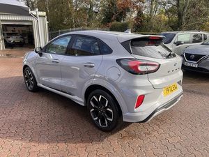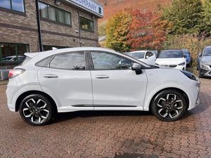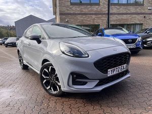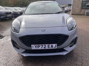 RESERVE ON LINE..ONE OWNER ONLY FROM NEW WITH ONLY 9500 MILES AND FULL FORD HISTORY WITH 18" ALLOYS, NAVIGATION, APPLE ANDROID PLAY, WIRELESS CHARGING, B&O SOUND, PRIVACY GLASS AND REAR PARK ASSISTThis 2022 Ford Puma ST-Line X offers exceptional value with its remarkably low mileage of just 9500 miles, a testament to its single owner. This stylish compact SUV is powered by an efficient 1.0L Petrol Hybrid engine, meeting Euro 6 emission standards. It comes equipped with a premium B&O Sound System integrated with Ford SYNC 3 Navigation, offering seamless connectivity through Android Auto, Apple CarPlay, and Bluetooth. Enjoy personalised comfort with Electronic Air Temperature Control and convenient Wireless Charging for your phone. For added peace of mind, the MOT is valid until August 2026, and rear parking sensors assist with manoeuvring.Experience the dynamic performance of this Puma, achieving 0-62mph in a swift 8.9 seconds, a figure that demonstrates its responsiveness compared to other vehicles in its class. Its low CO2 emissions and impressive fuel economy of 51 mpg further highlight its efficiency, making it a sensible choice for both your wallet and the environment. This well maintained example provides a compelling blend of modern technology, engaging driving dynamics, and economical running costs.