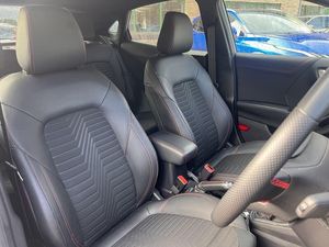 Grey Matter,Partial Premium Sensico - Black with Red Stitching,Full Main Dealer Service History,One Owner From New, B&O Premium Audio System and Ford SYNC 3 Navigation, Wireless Charging Pad with Electronic Air Temperature Control EATC, Cruise Control with Intelligent Speed Assist, Pre-Collision Assist with Autonomous Emergency Braking and Pedestrian-Cyclist Detection, Rear Parking Sensors, 18in Alloy Wheels - 5-Spoke - Matt Black Machined Finish, Active Grille Shutter, Electric Windows - Front and Rear, Front Bumper - Unique ST-Line Sport Design - Body Colour, Large Rear Spoiler - Body Colour with Centre High Mounted Stop Light, Power-Foldable Heated Door Mirrors with Puddle Lamps, Privacy Glass, Puma Badge, Quickclear Heated Windscreen, Rear Bumper Body Colour - Diffuser, ST-Line Badge, ST-Line Body Styling Kit, Automatic Headlights with Rain-Sensing Wipers and Auto High Beam, Front Fog Lights with Cornering lights and LED Rear Lamps, Projector Headlamps with LED Daytime Running Lights, Automatic Dimming Rear View Mirror, Carbon-Look Interior Deco Spears, Centre Console - Premium with Openable Stowage Area with USB Connectivity - 2 Cupholders and 12v Power Point, Courtesy Lights - Ambient LED Courtesy Lighting - Single Colour, Drivers Manual 4-Way Seat Adjustment with Manual Lumbar Adjust, Electronic Air Temperature Control - EATC, Ford MegaBox Extended Bootspace, Ford Power Starter Button, Full Digital 12.3in Instrument Cluster, Gear Knob - Aluminium, Handbrake - Black Sensico Trimmed with Stitching, Headliner - Deluxe, Instrument Panel - High Level, Passenger 4-Way Seat with Lumbar Adjustment, Rear Seats - 2-Way Head Restraint Up-Down, Rear Seats - Second Row 60-40 Folding Seats, Soft-feel Gearshift Boot with Red Stitching, ST-Line Flat-Bottomed Leather Steering Wheel with Unique Red Stitching, Intelligent Speed Assistance, Power Steering, Selectable Driving Modes - Normal - Eco - Sport - Slippery and Trail, Speed Limiter, Sports Suspension, ABS - Anti-lock Braking System, Emergency Brake Warning - Automatic Hazard Warning Lights, ESC - Electronic Stability Control and Hill Start Assist, First Aid Kit Strap, Lane Keeping Aid with Lane Departure Warning, Post Collision Braking, Remote Central-Double Locking, Thatcham Alarm, Traction Control and Emergency Braking Assistance