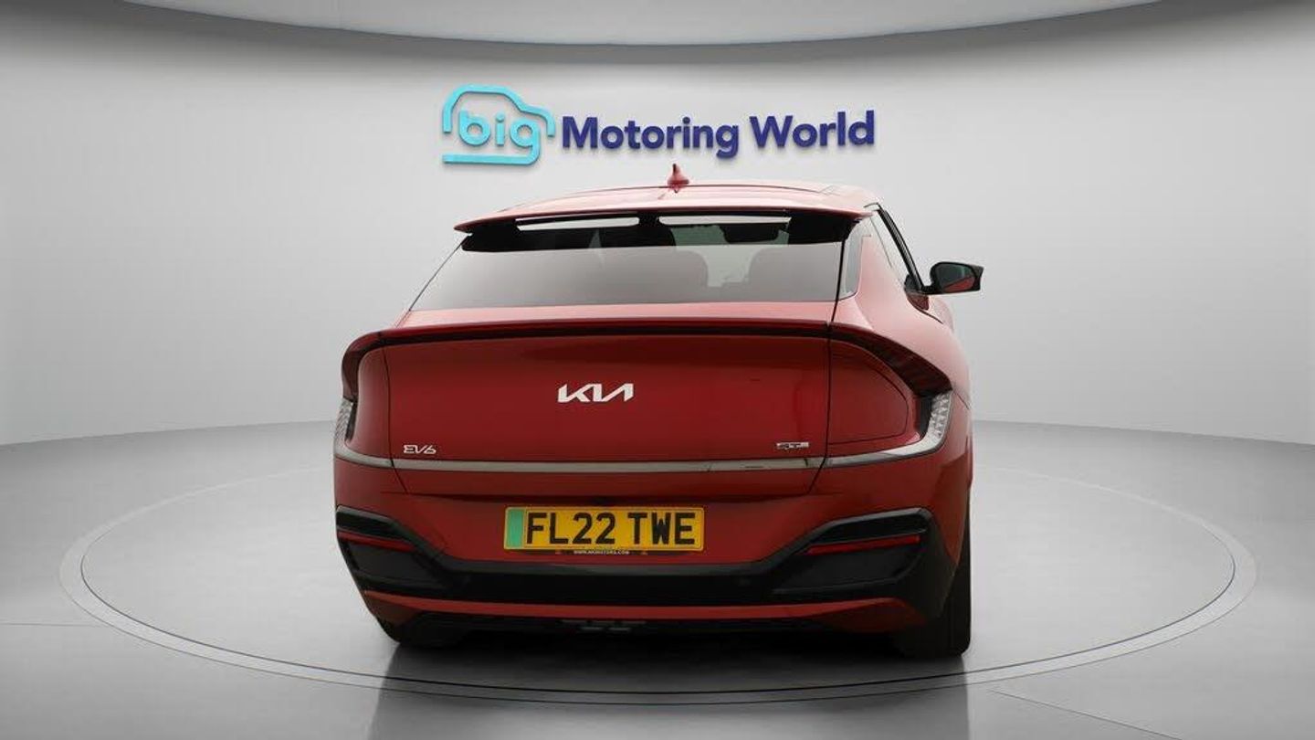 19'' Alloy wheels,Part Leather-Our Kia EV6 is finished in Red. Specification includes a range of fantastic features including 19'' Alloy wheels, Part Leather Seats, Apple CarPlay, Adaptive Cruise Control, Lane Assist, Android Auto, Privacy Glass, Heated Seats, Rear View Camera, Heated Steering Wheel Specification information is supplied by CAPHPI and may vary to the actual car. This data does not form any part of a buying contact. Please check specification prior to purchase in-store. The MOT is valid until October 2026, visit bigmotoringworld.co.uk for more photos, a 360 tour, service history and a free HPI report.Were BIG on peace of mind and this Red Kia EV6 has completed our comprehensive 200 point inspection and passed all checks. Its ready for you to drive away with immediate collection in-store. We include a 90-day warranty as standard plus an option to extend for up to 3 years.Reserve this car exclusively for you, safely and securely at bigmotoringworld.co.uk, with a fully refundable £99 deposit. Test drive before you buy, with no commitment, no hassle and a completely haggle free experience. Still searching and want to see thousands more cars? We are BIG on choice with over 8000 cars to choose from.Visit our award winning web site bigmotoringworld.co.uk.Were Big Motoring World and were BIG on what matters to you.