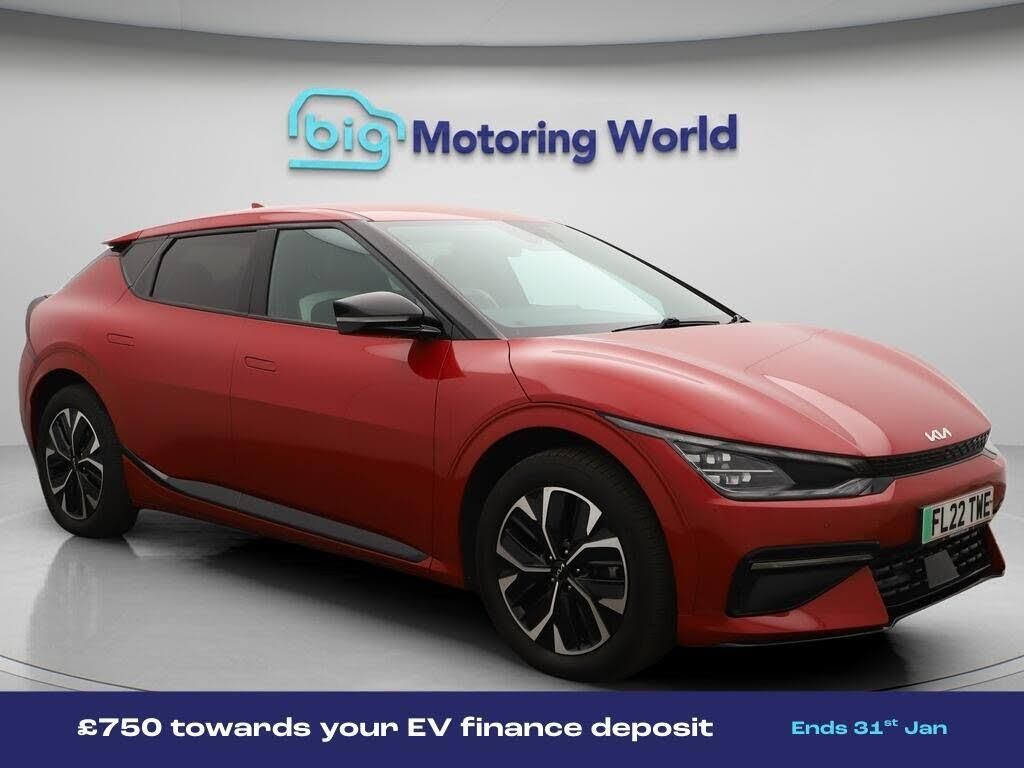 £750 towards your finance depo-Our Kia EV6 is finished in Red. Specification includes a range of fantastic features including £750 towards your finance deposit, 19'' Alloy wheels, Part Leather Seats, Apple CarPlay, Adaptive Cruise Control, Lane Assist, Android Auto, Privacy Glass, Heated Seats, Rear View Camera Specification information is supplied by CAPHPI and may vary to the actual car. This data does not form any part of a buying contact. Please check specification prior to purchase in-store. The MOT is valid until October 2026, visit bigmotoringworld.co.uk for more photos, a 360 tour, service history and a free HPI report.Were BIG on peace of mind and this Red Kia EV6 has completed our comprehensive 200 point inspection and passed all checks. Its ready for you to drive away with immediate collection in-store. We include a 90-day warranty as standard plus an option to extend for up to 3 years.Reserve this car exclusively for you, safely and securely at bigmotoringworld.co.uk, with a fully refundable £99 deposit. Test drive before you buy, with no commitment, no hassle and a completely haggle free experience. Still searching and want to see thousands more cars? We are BIG on choice with over 8000 cars to choose from.Visit our award winning web site bigmotoringworld.co.uk.Were Big Motoring World and were BIG on what matters to you.